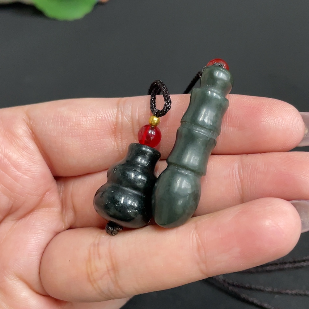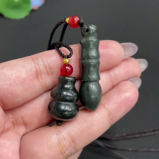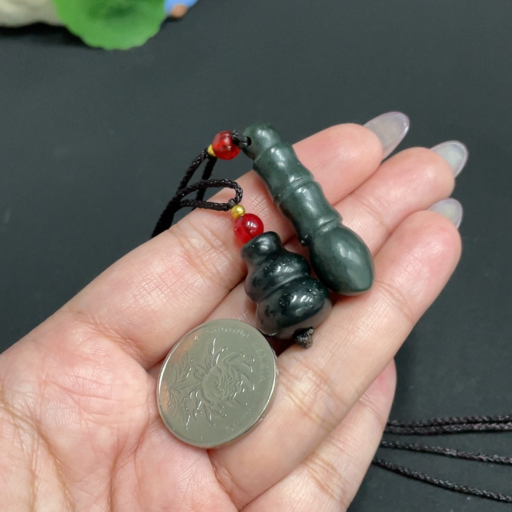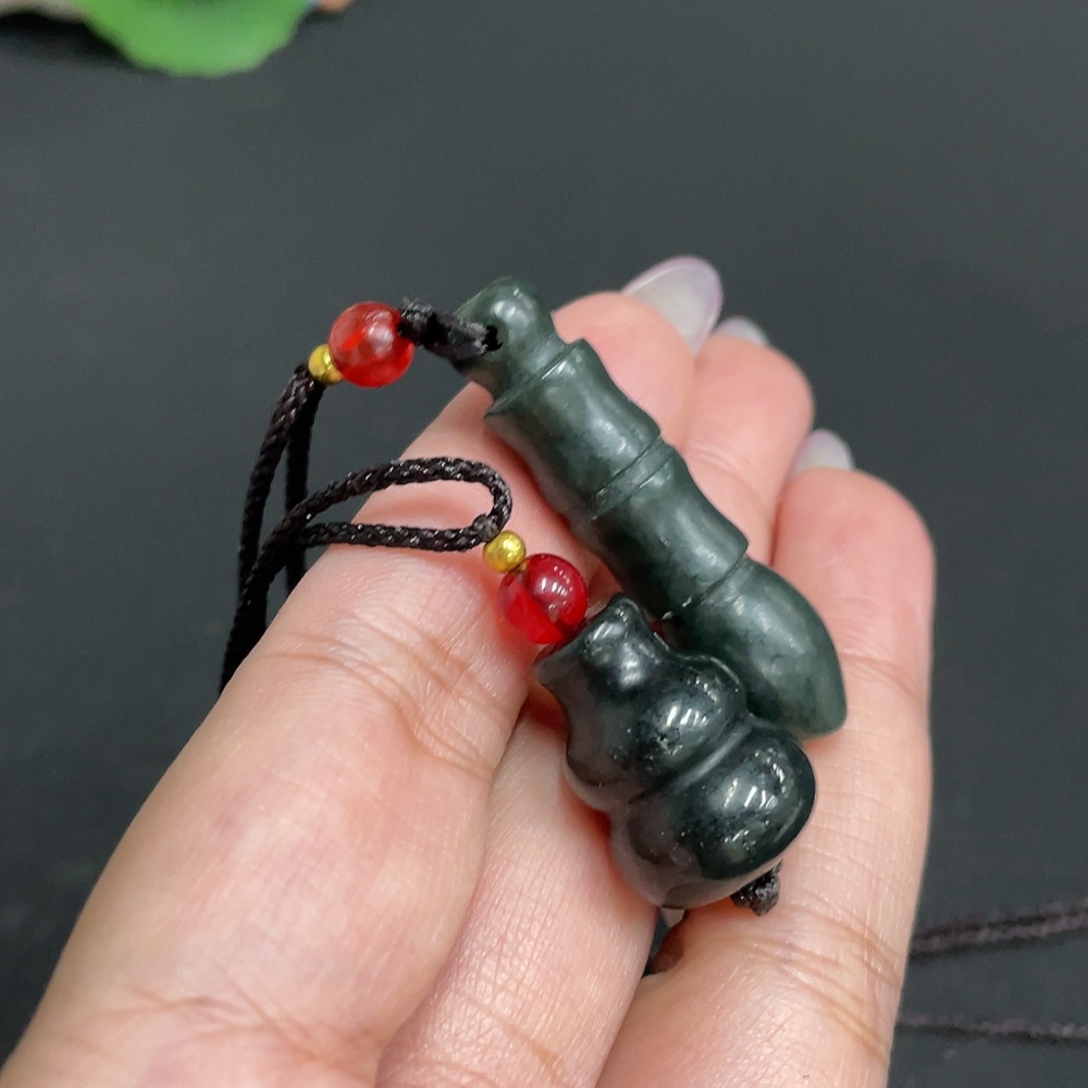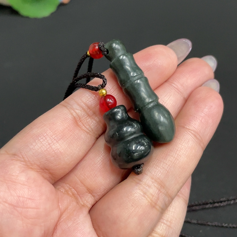 Hetian Jade Pendant - Gourd - Golden List Inscription