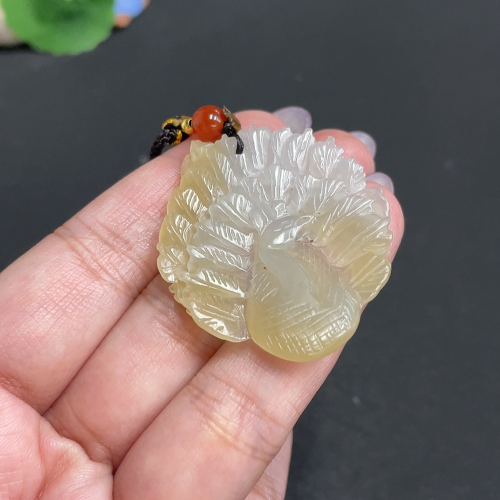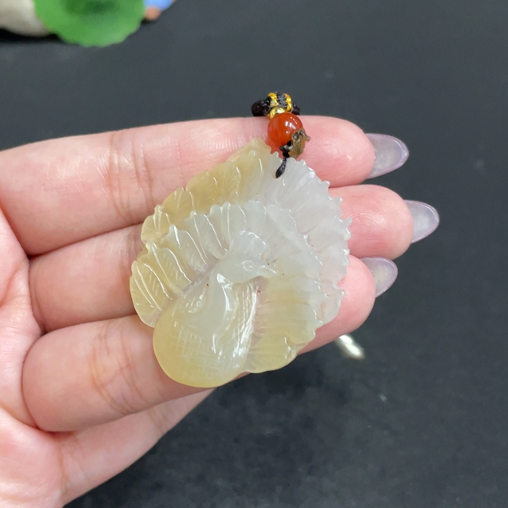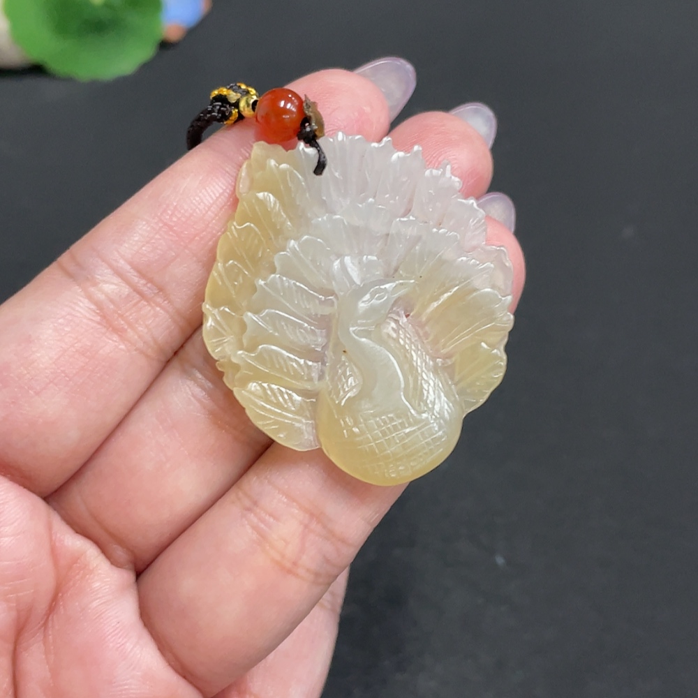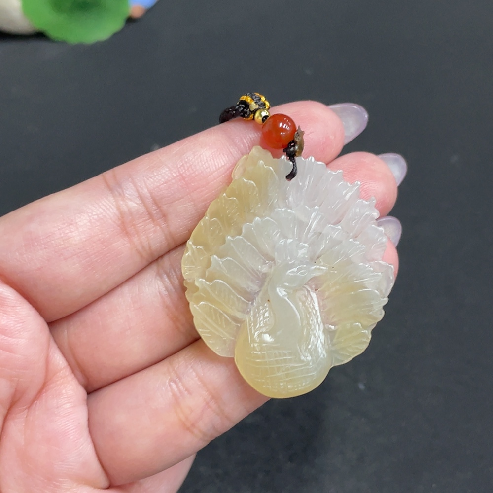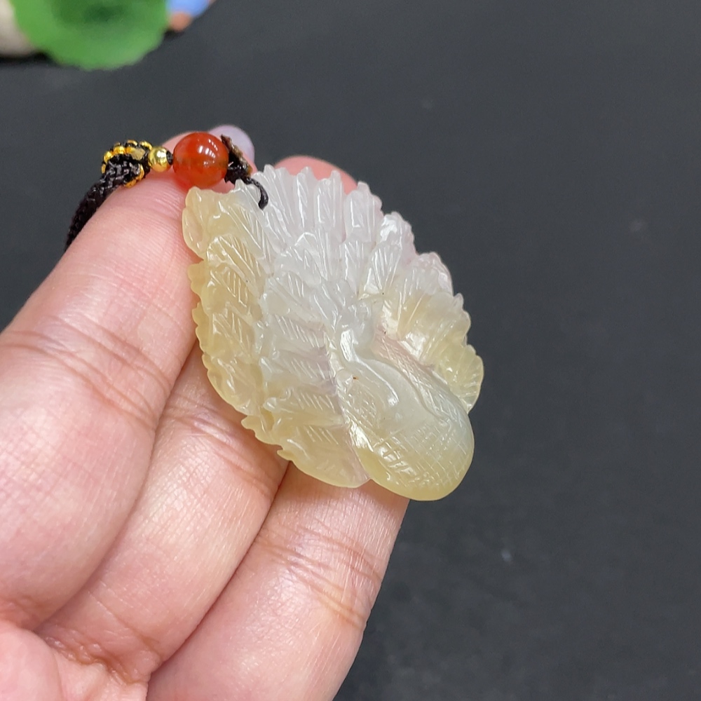 Hetian Jade Pendant Peacock Total Weight: Approx. 9.1g [with rope]