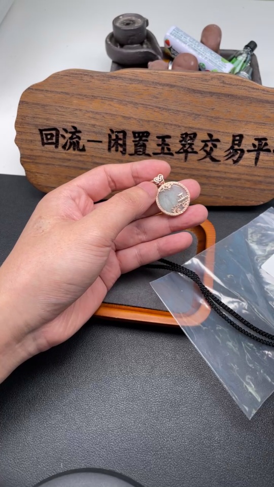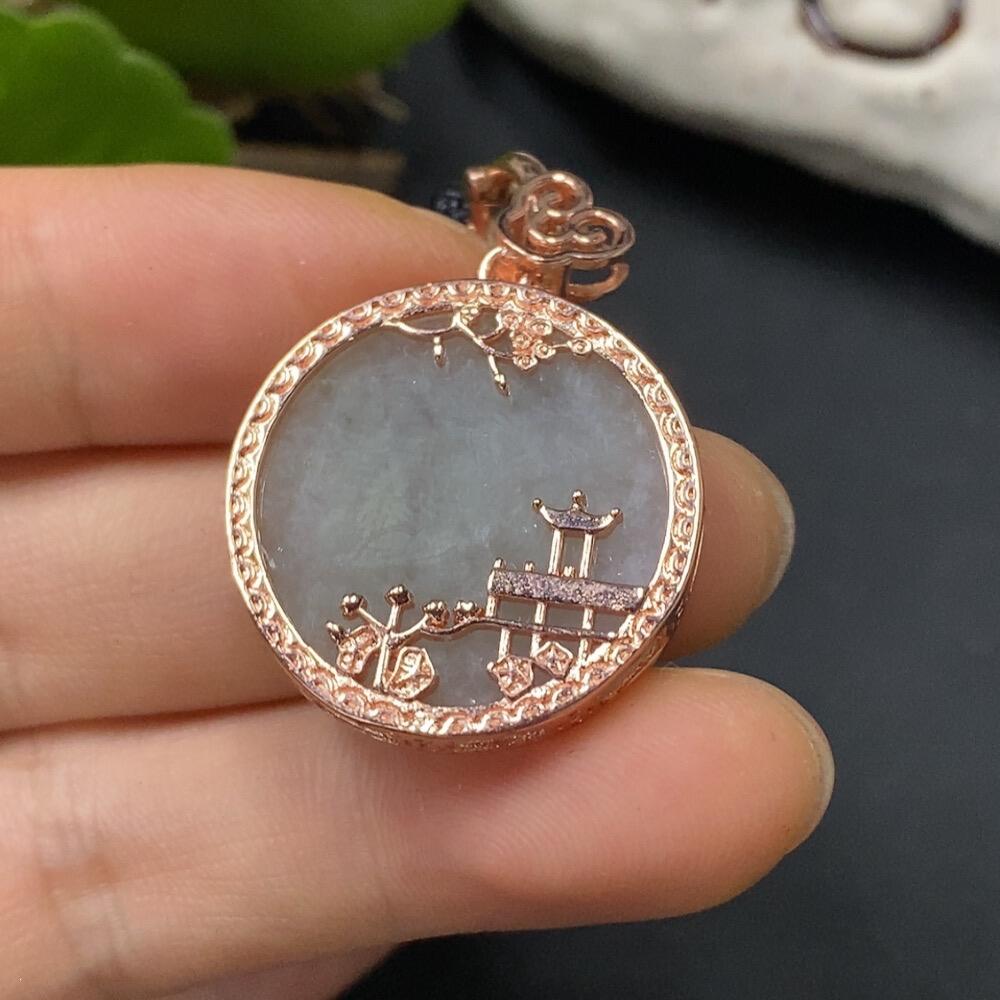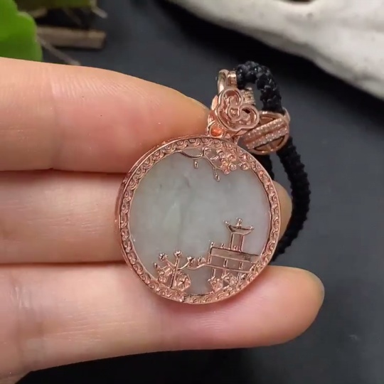 Jadeite Inlaid Pendant, Non-Gold Inlaid