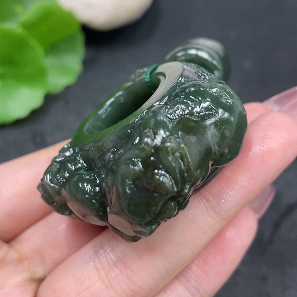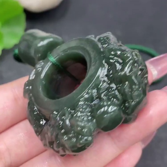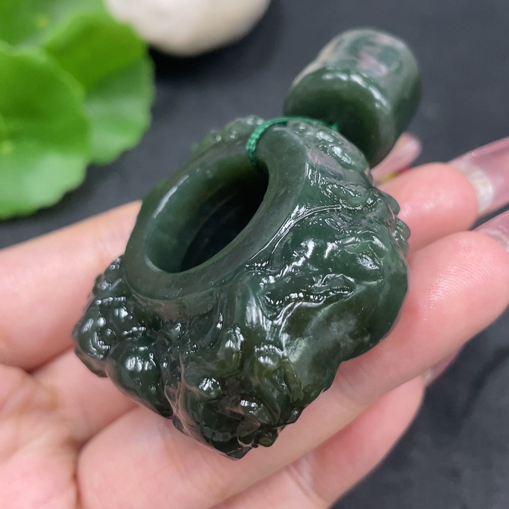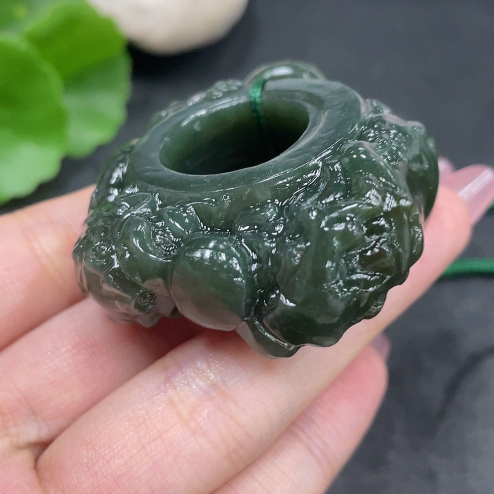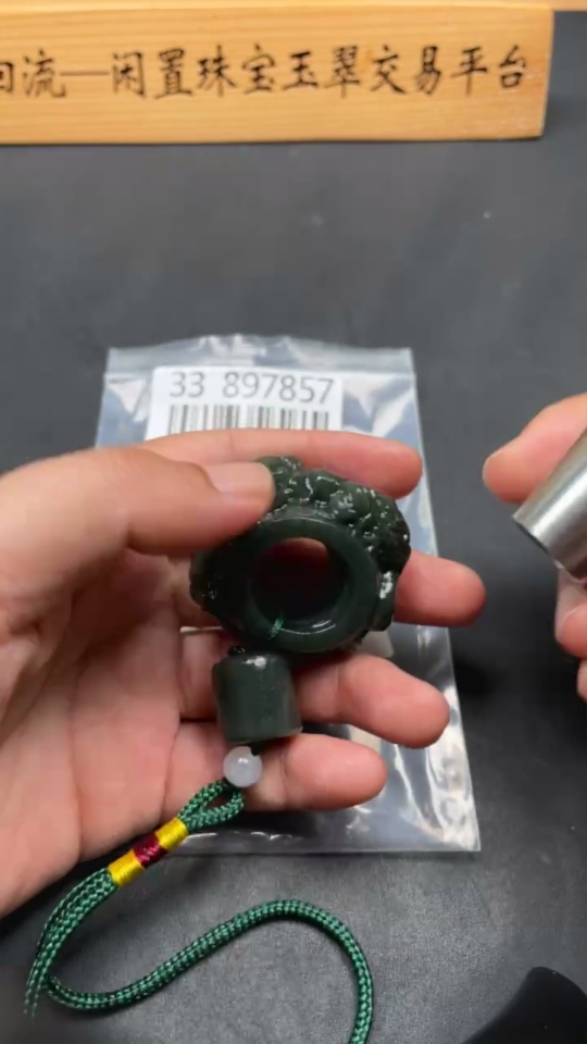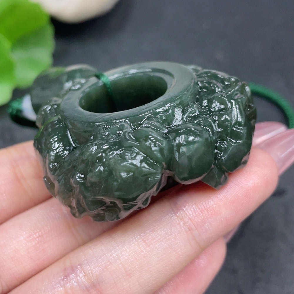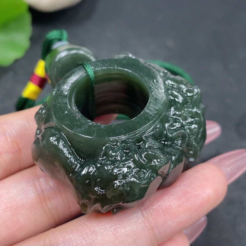 Hetian Jade Handheld Ornament - Dragon Ring with Non-Hetian Jade Beads
