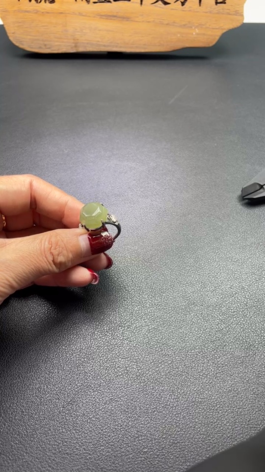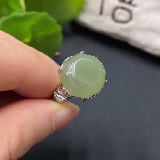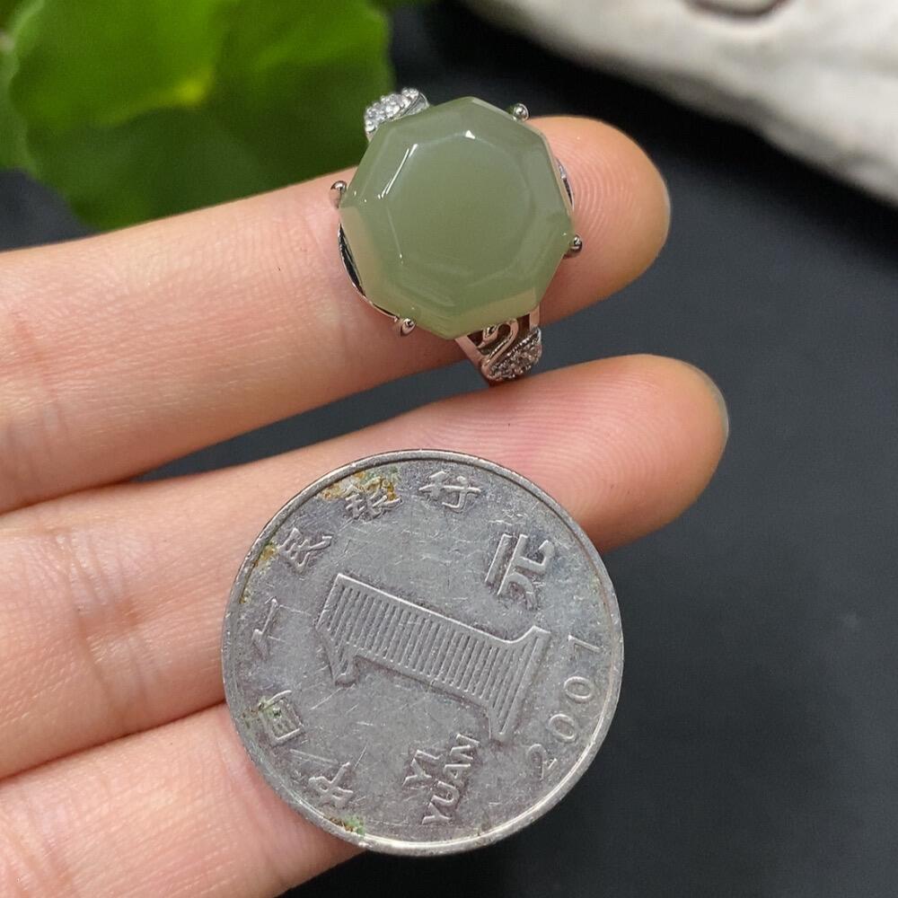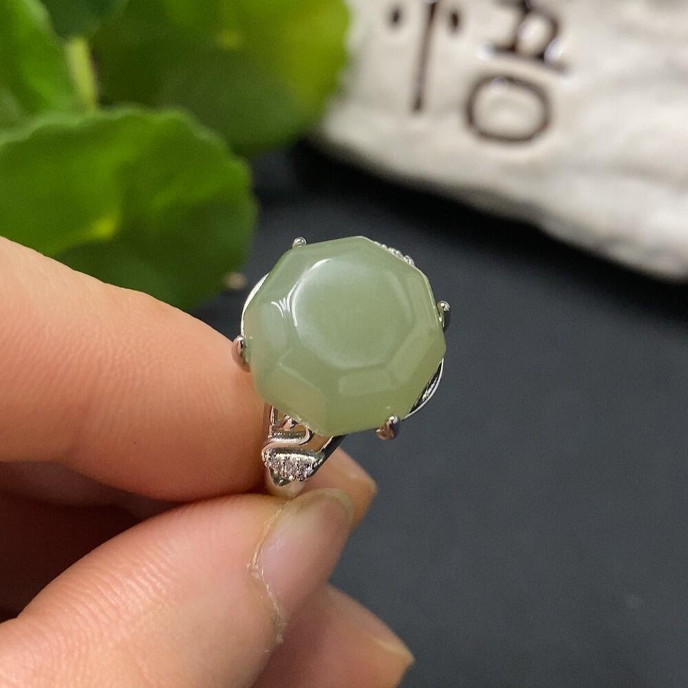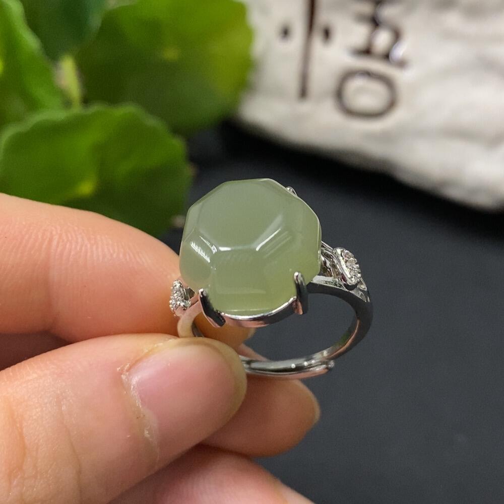 Hetian Jade Inlaid Ring, Adjustable, Non-Gold Inlaid, Total Weight 5.2g