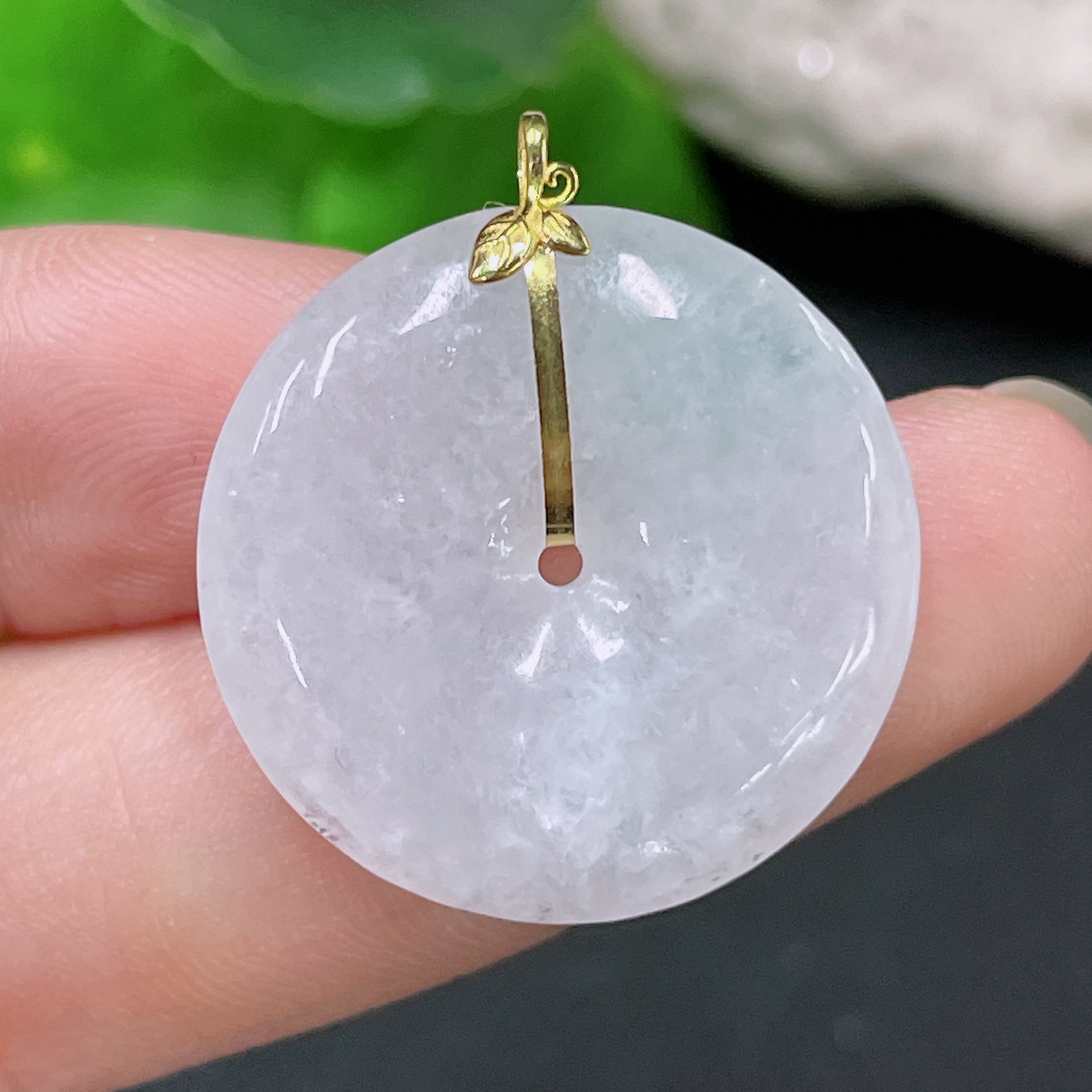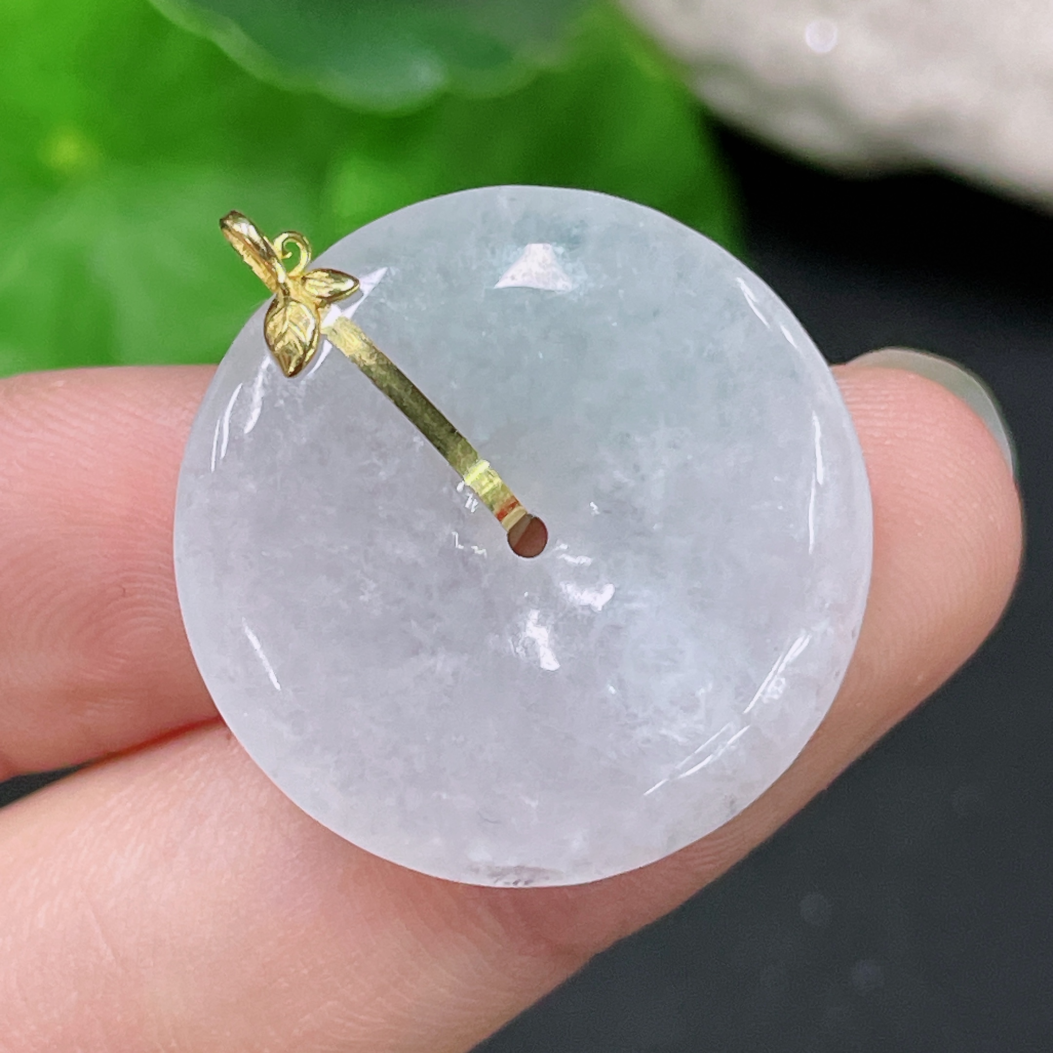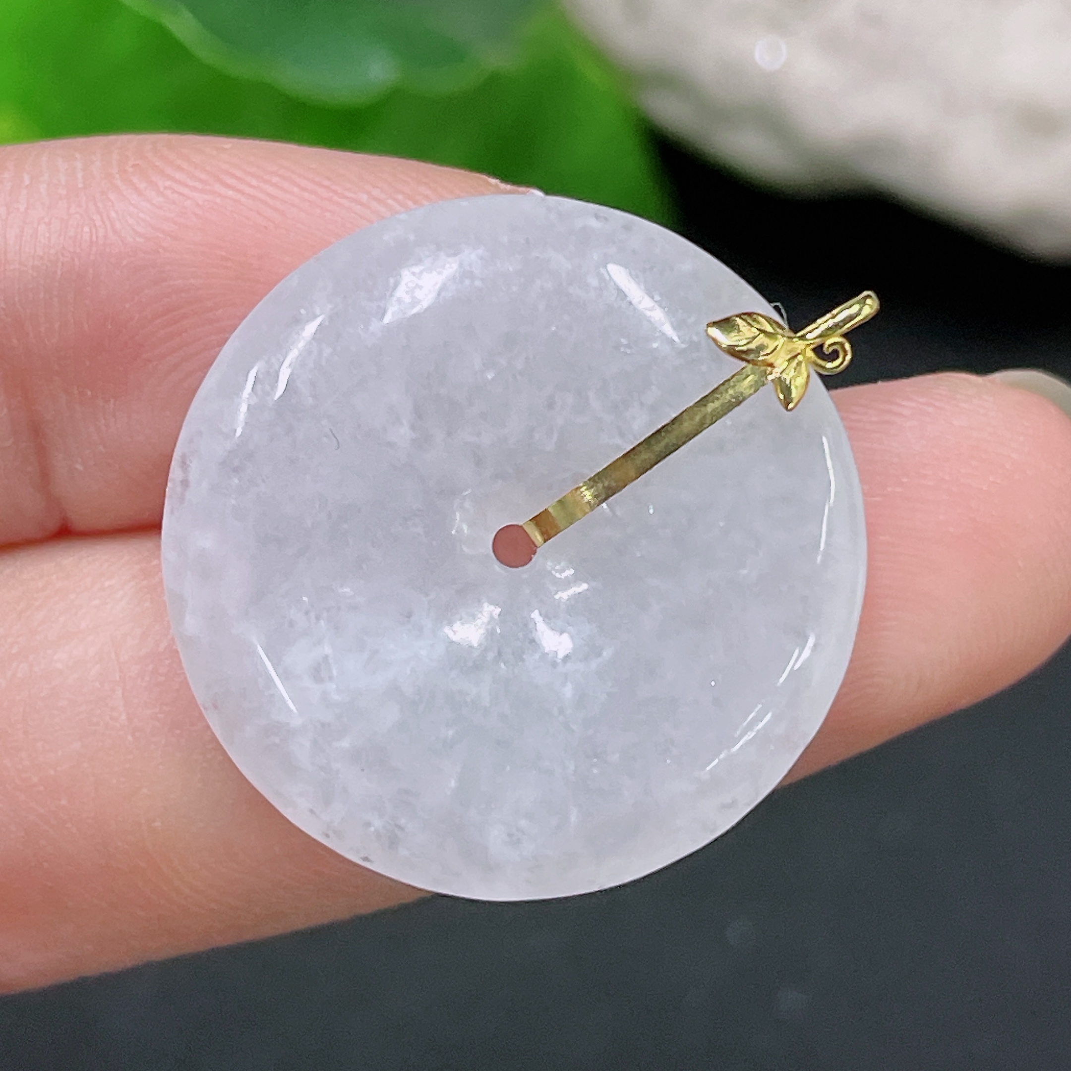 Jadeite Safety Buckle Pendant 18K Gold Total Weight Approx. 5.4g