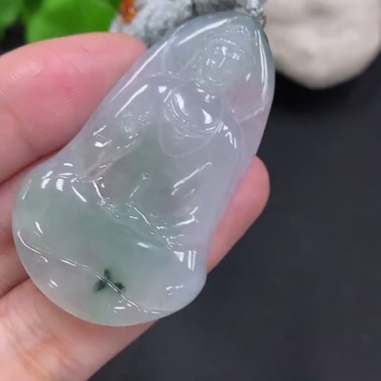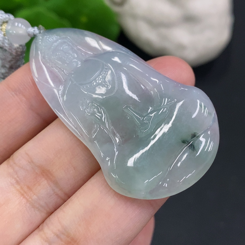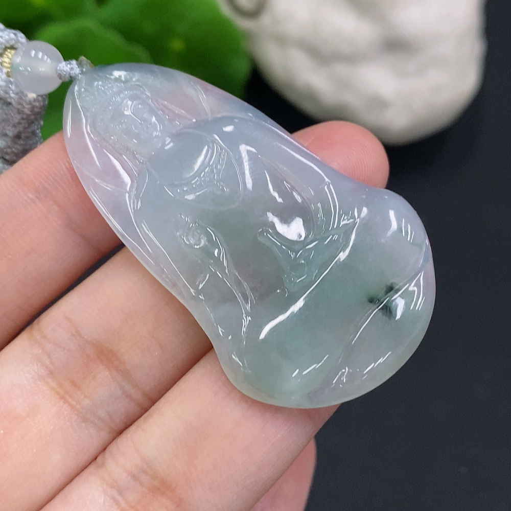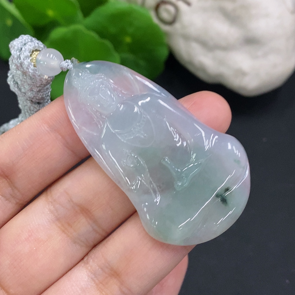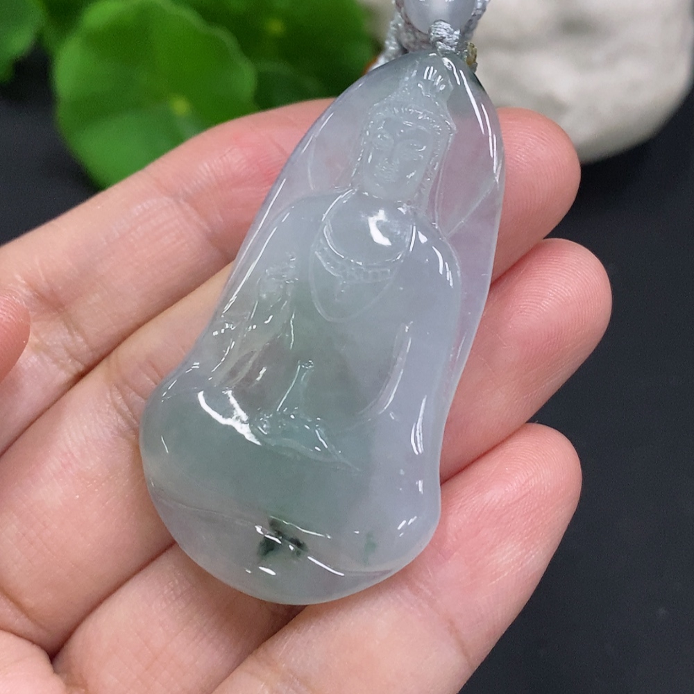 Jadeite Guanyin Pendant, total weight with cord approx. 13.4g (matching beads non-A)