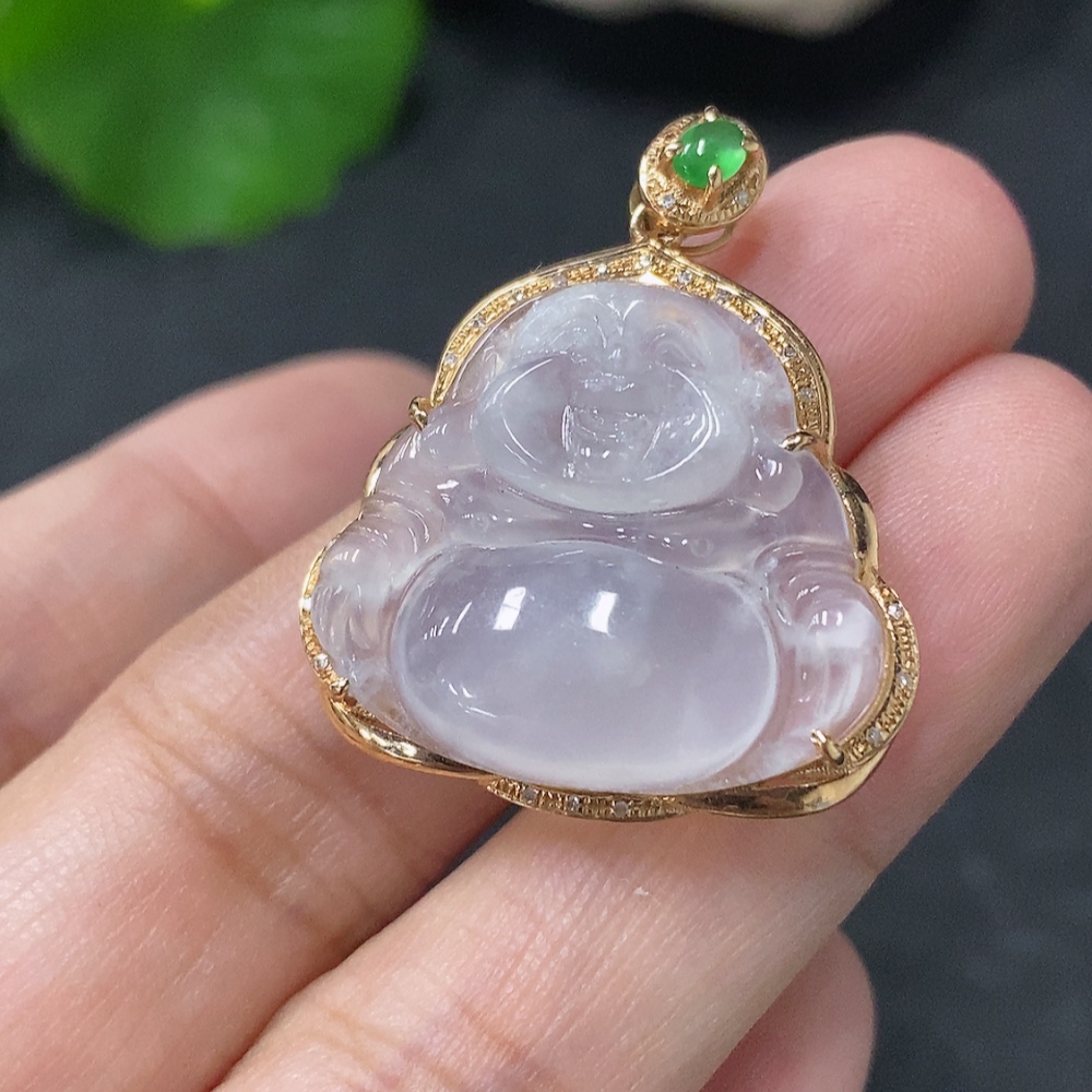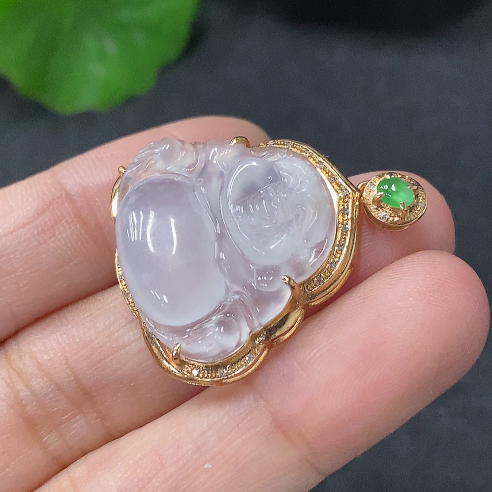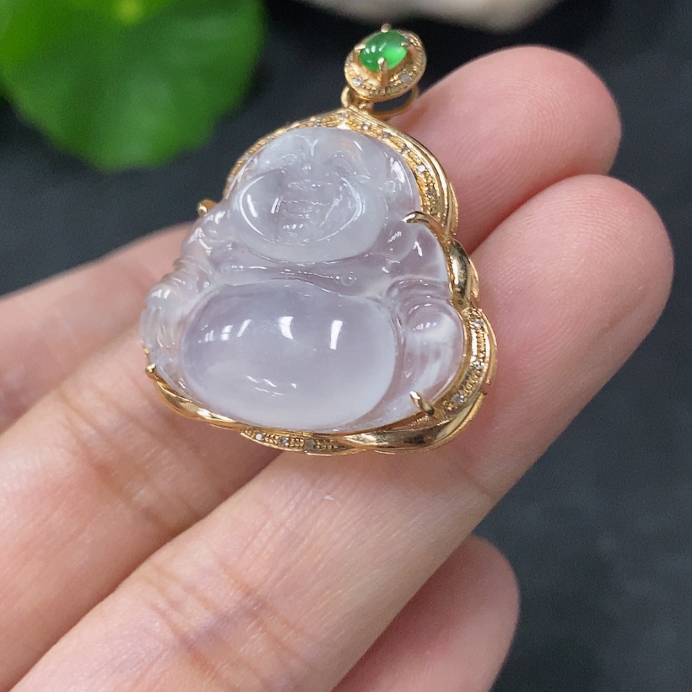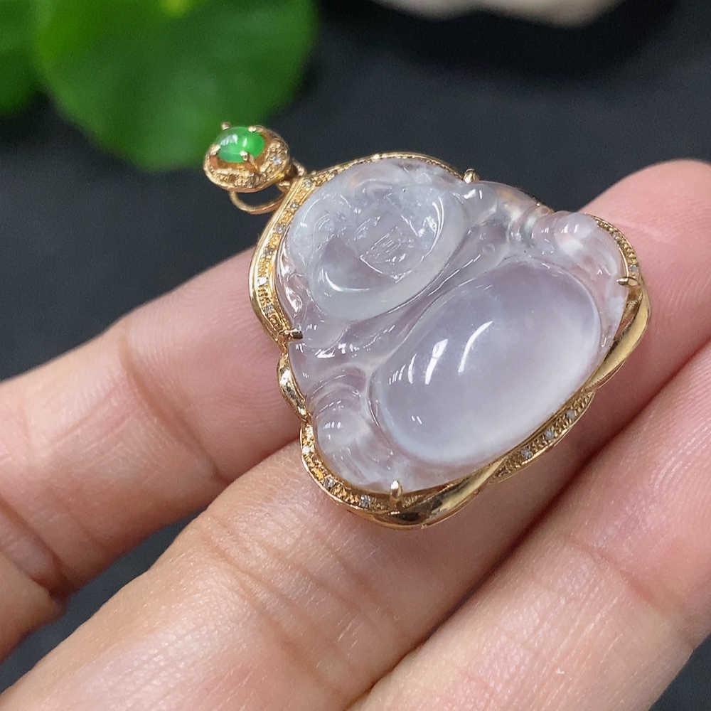 Jadeite Buddha Pendant with 18K Gold Setting, Total Weight Approx. 3.7g, Accented with Diamonds