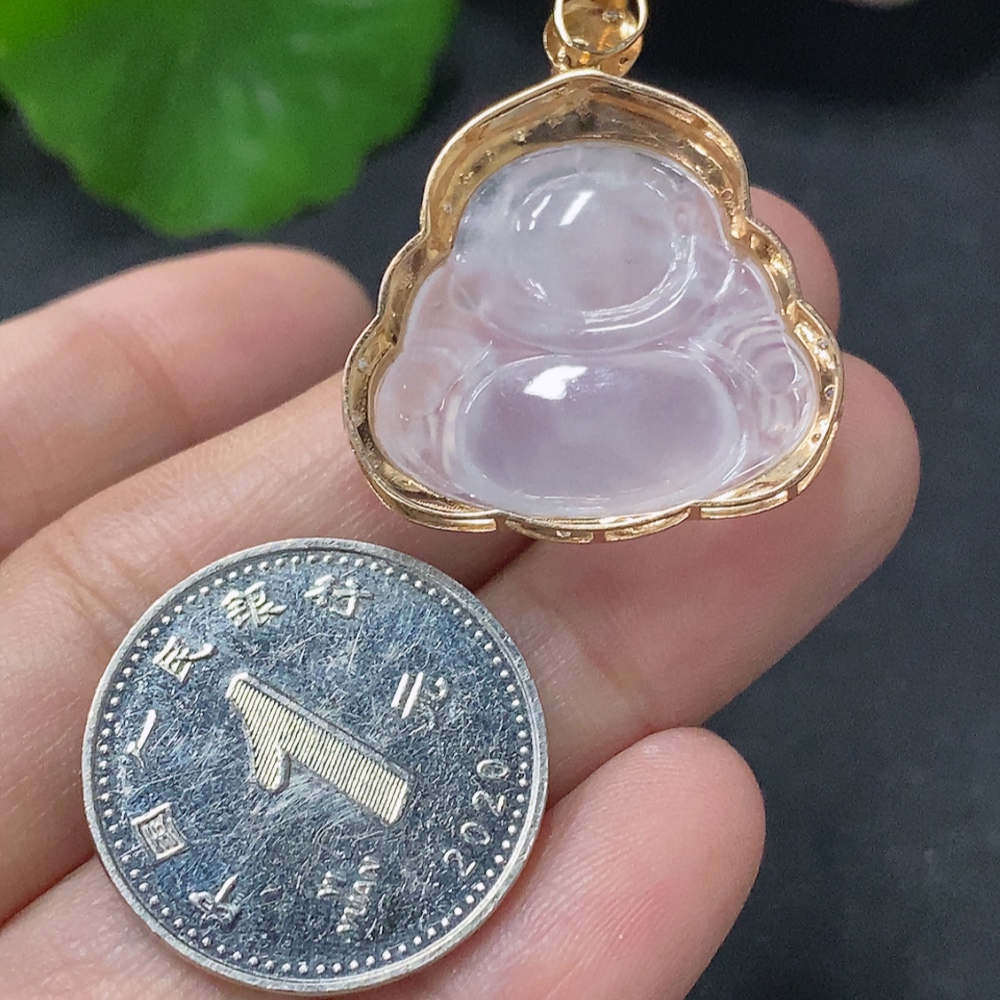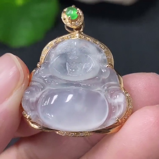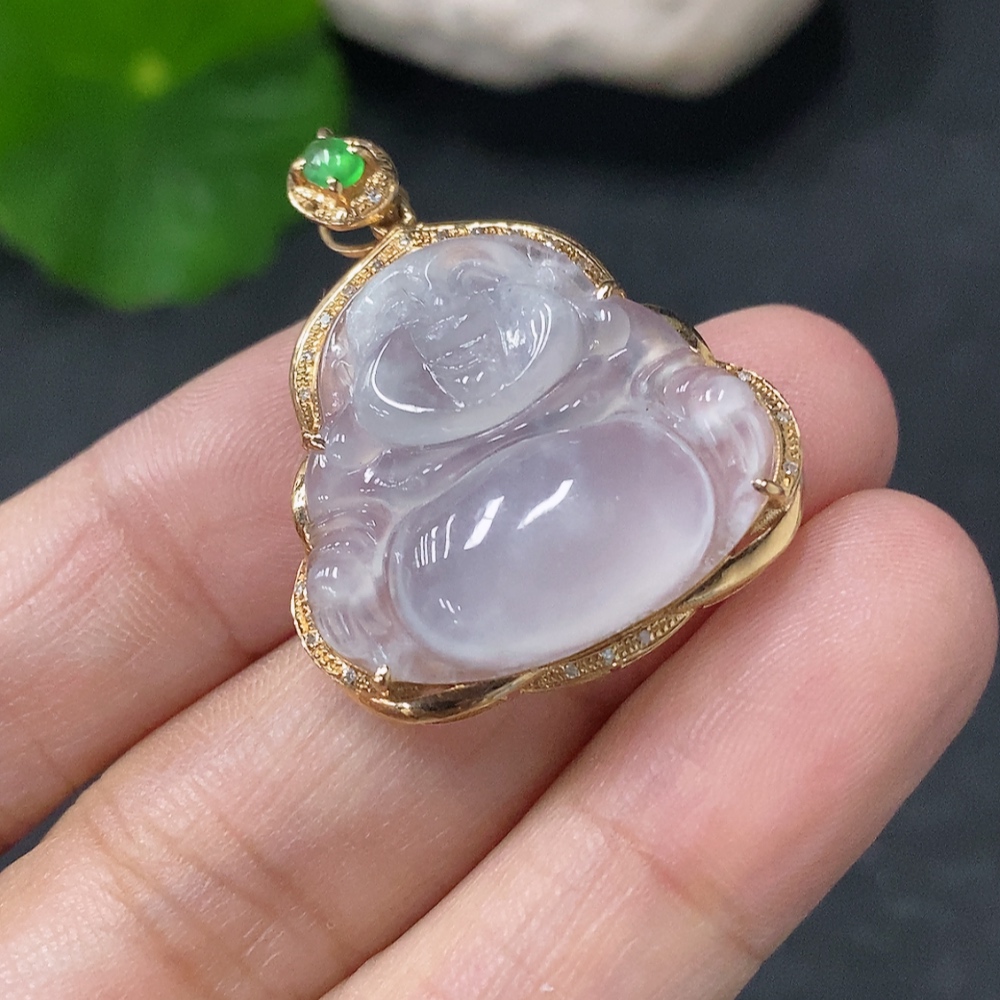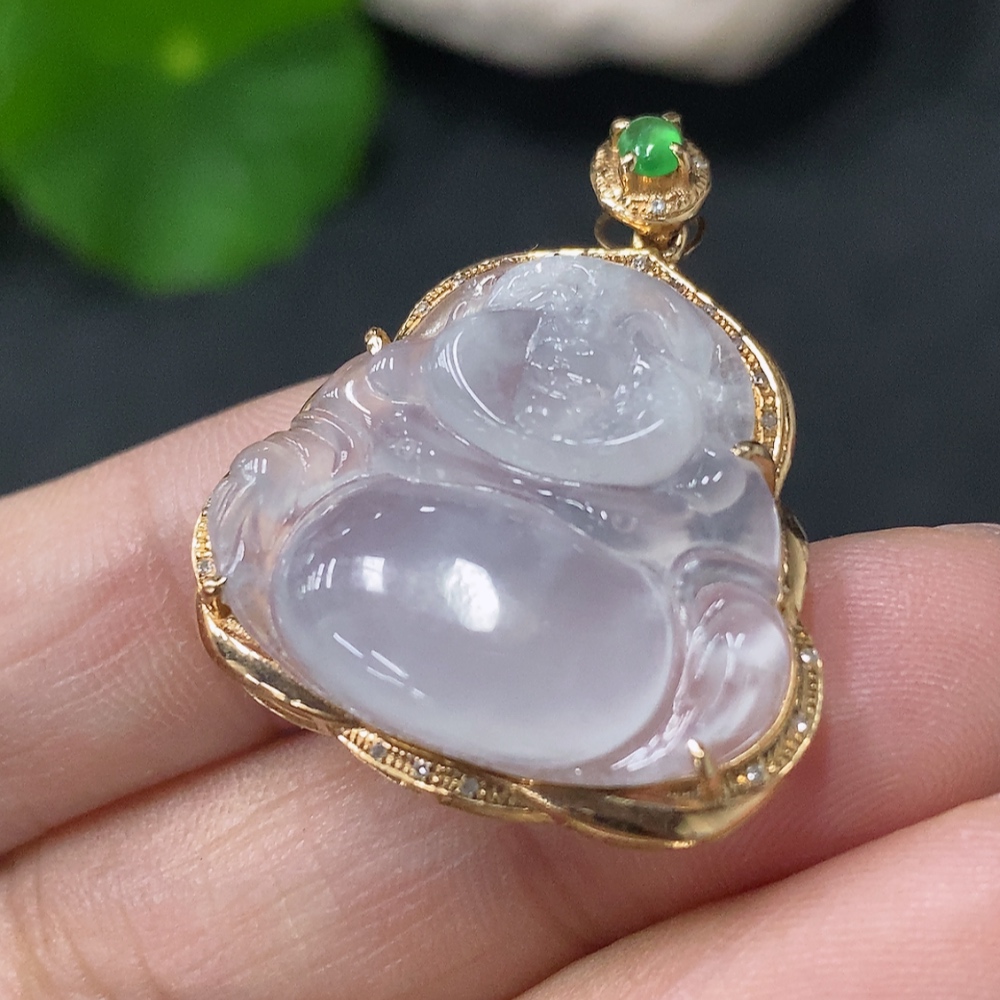 Jadeite Buddha Pendant with 18K Gold Setting, Total Weight Approx. 3.7g, Accented with Diamonds