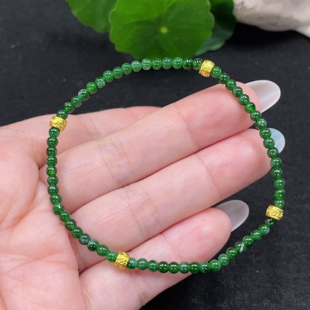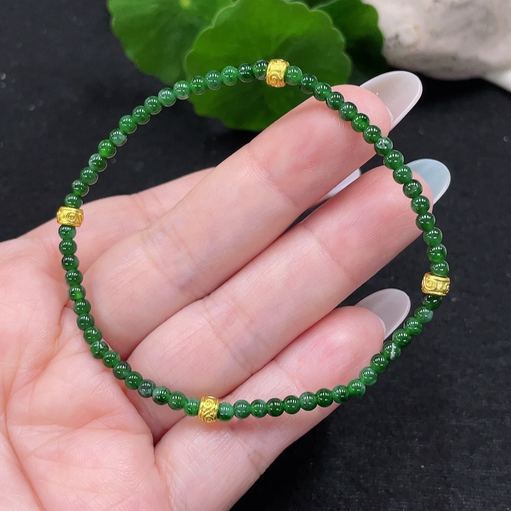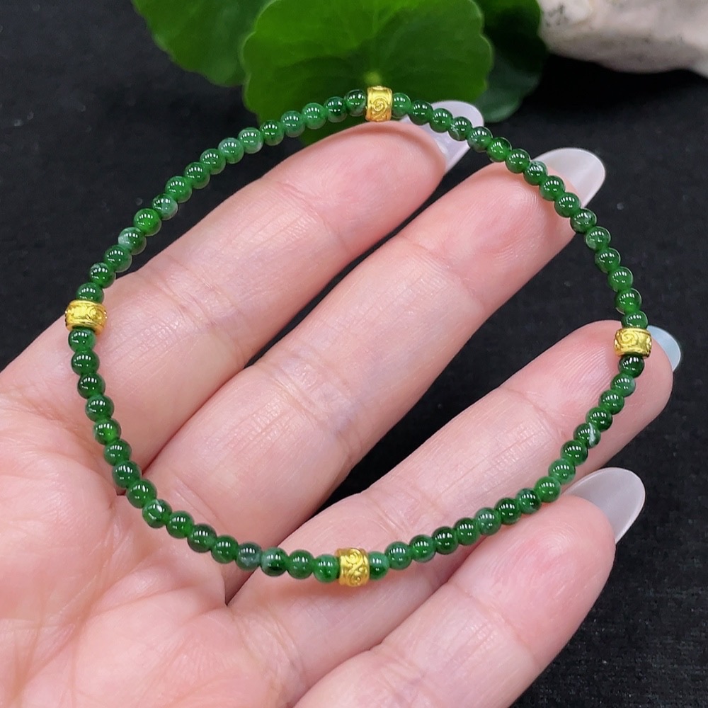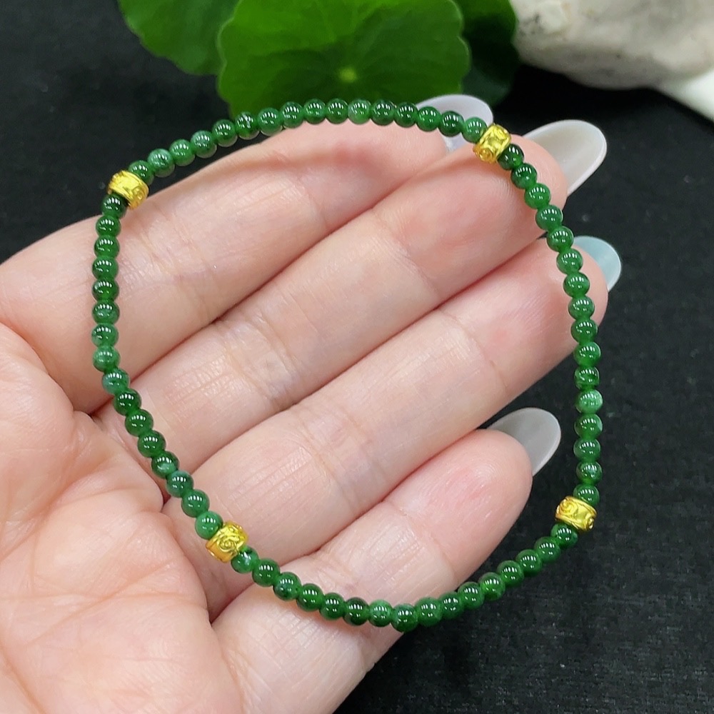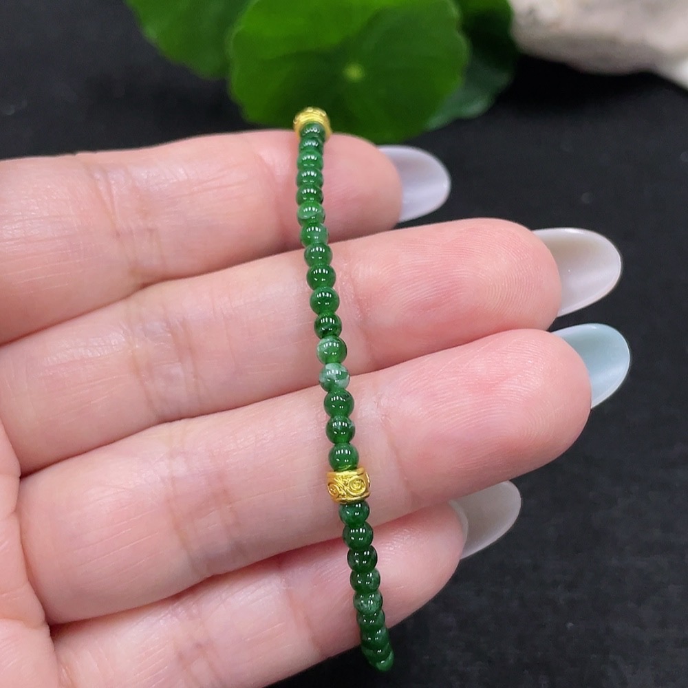 Jadeite Bracelet Approx. 3mm Beads Total Weight Approx. 3.6g (Non-Gold Inlaid)