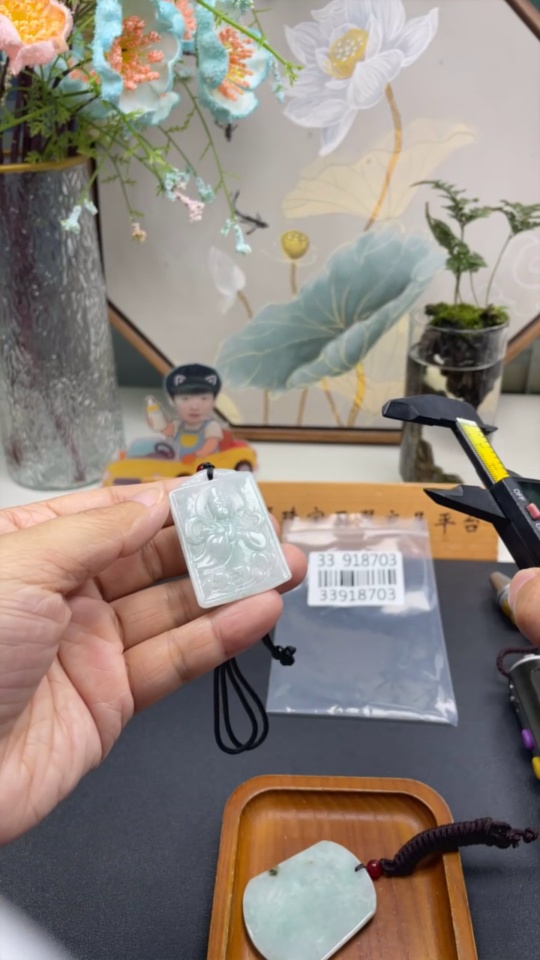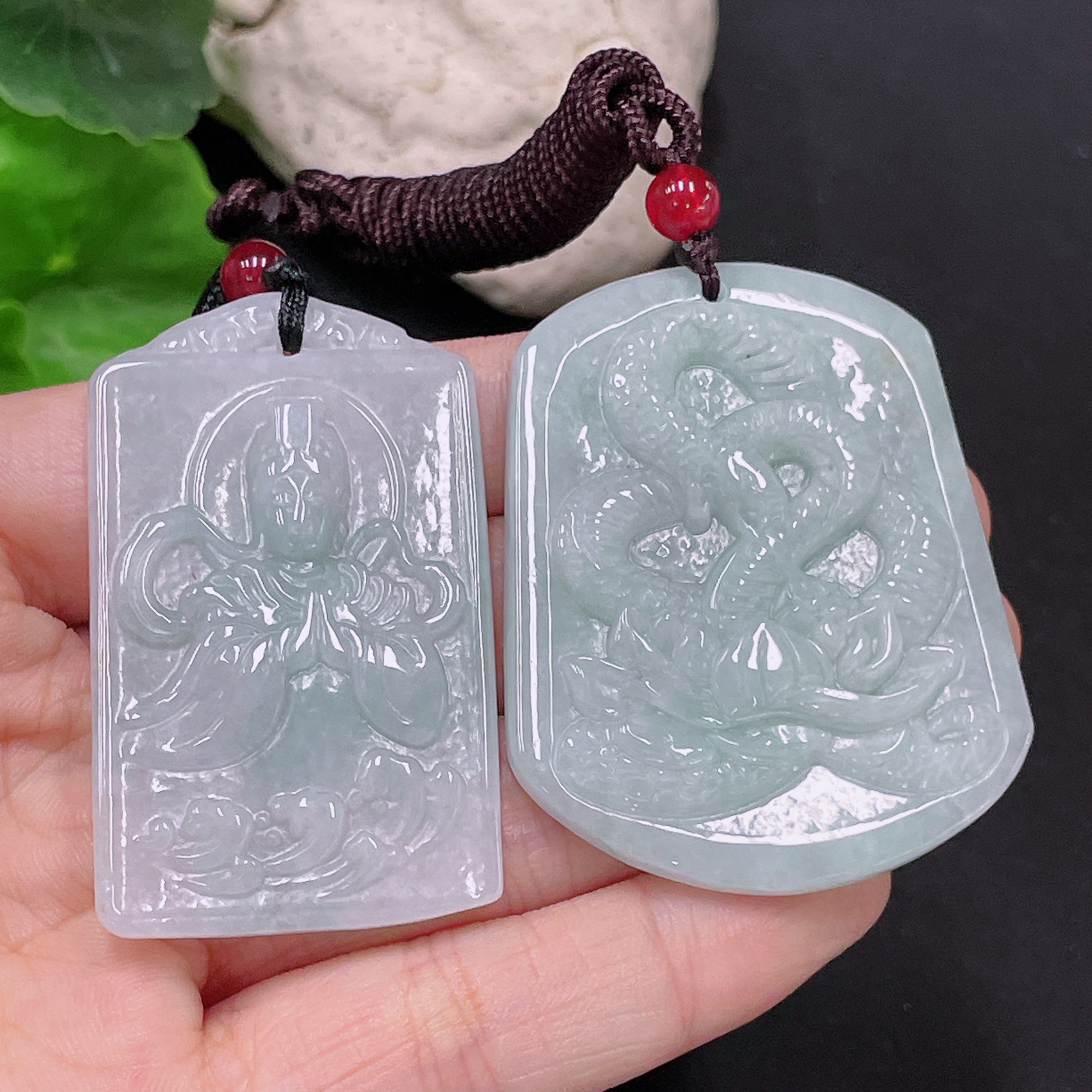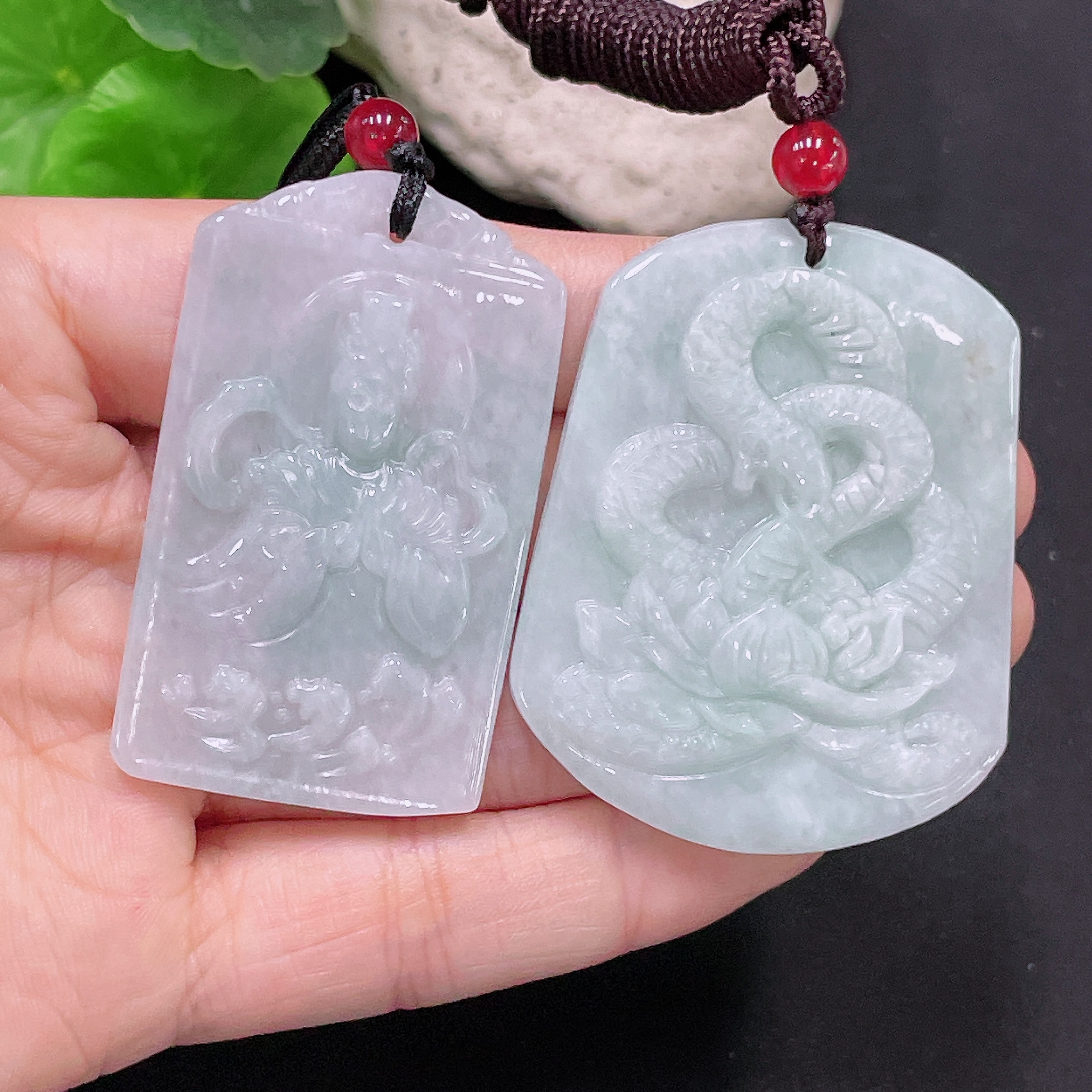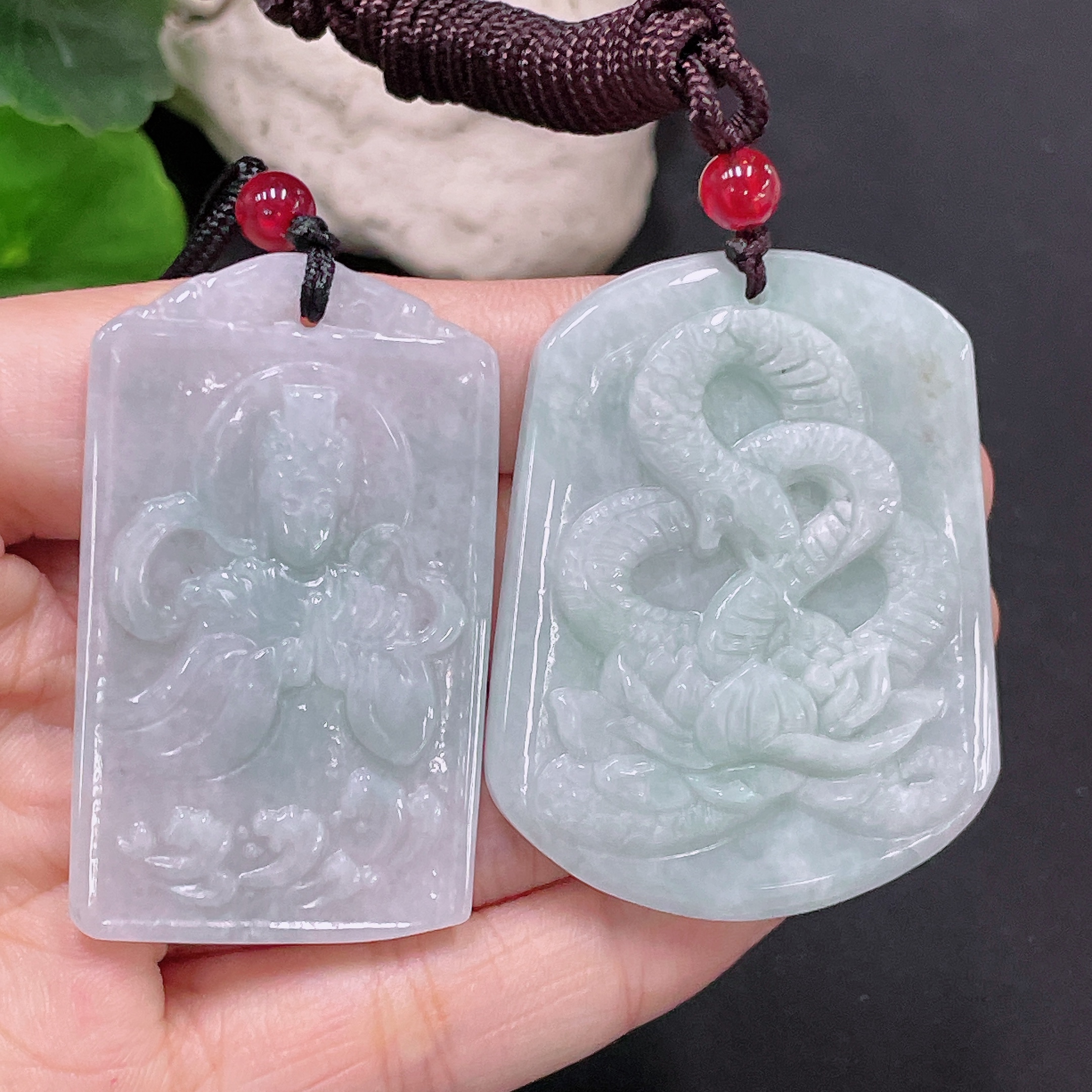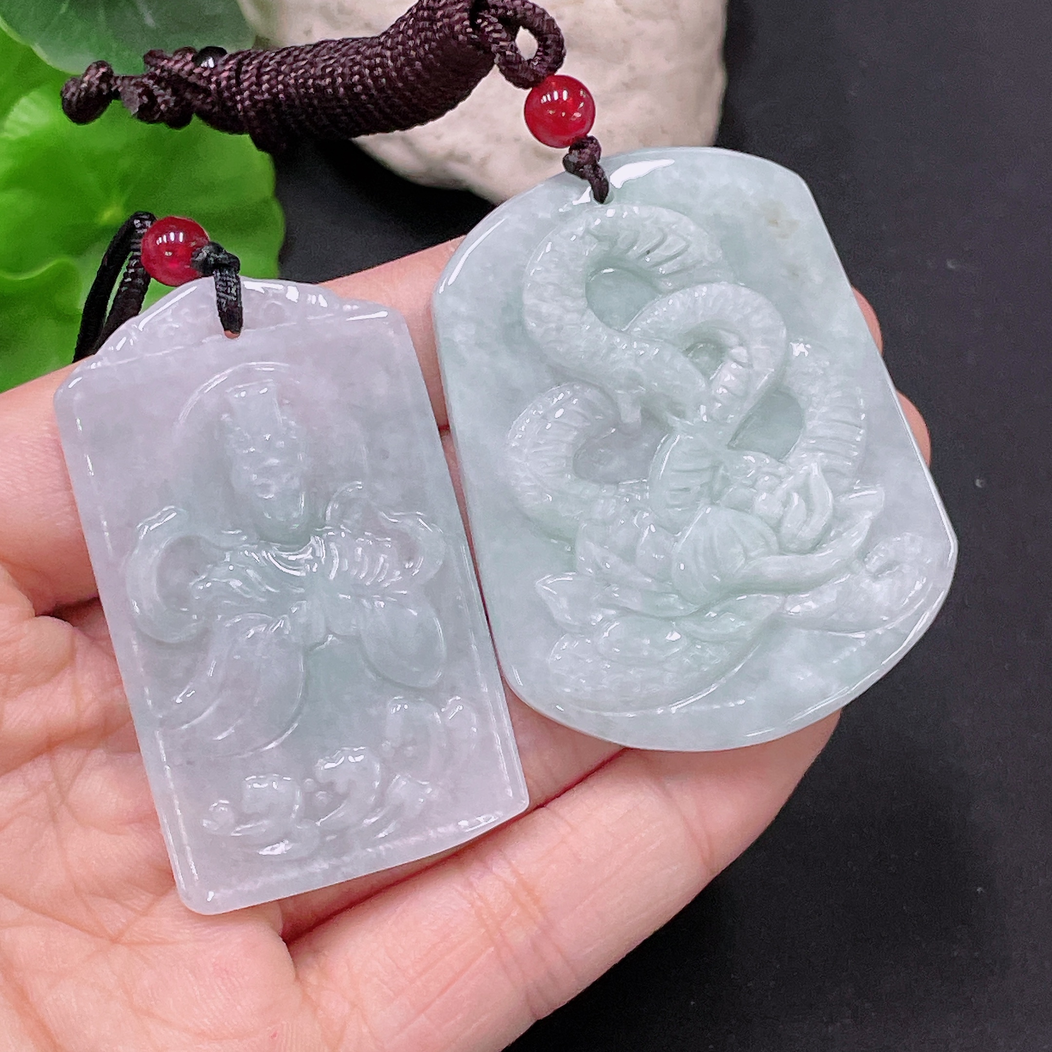 Jadeite Pendant Guanyin Plaque Snake Plaque