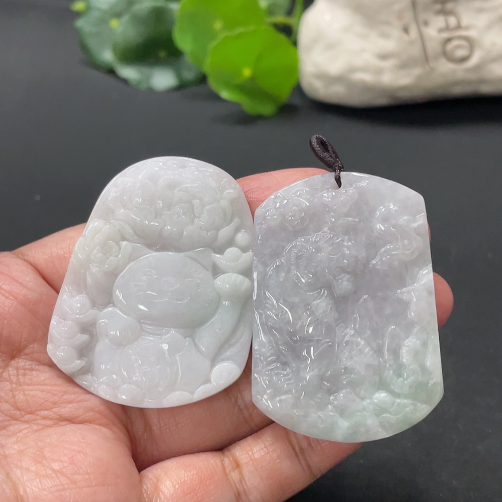 Jadeite Pendant Tiger Plaque Lucky Cat
