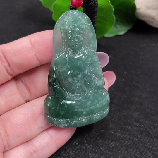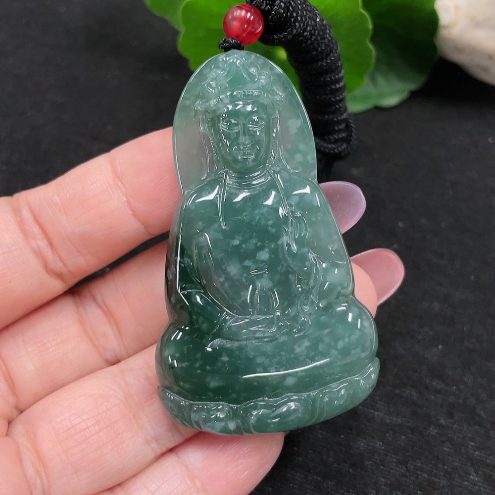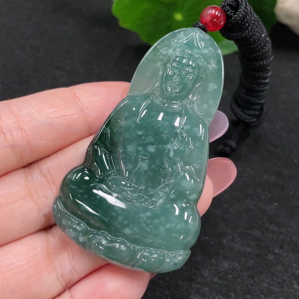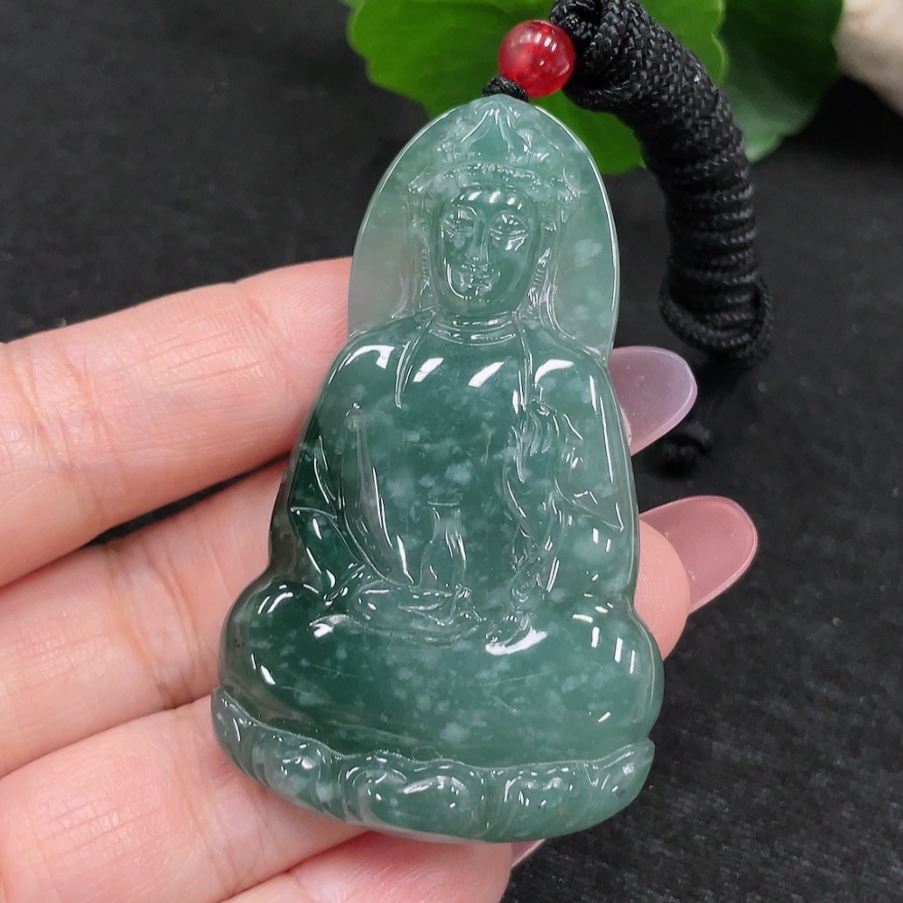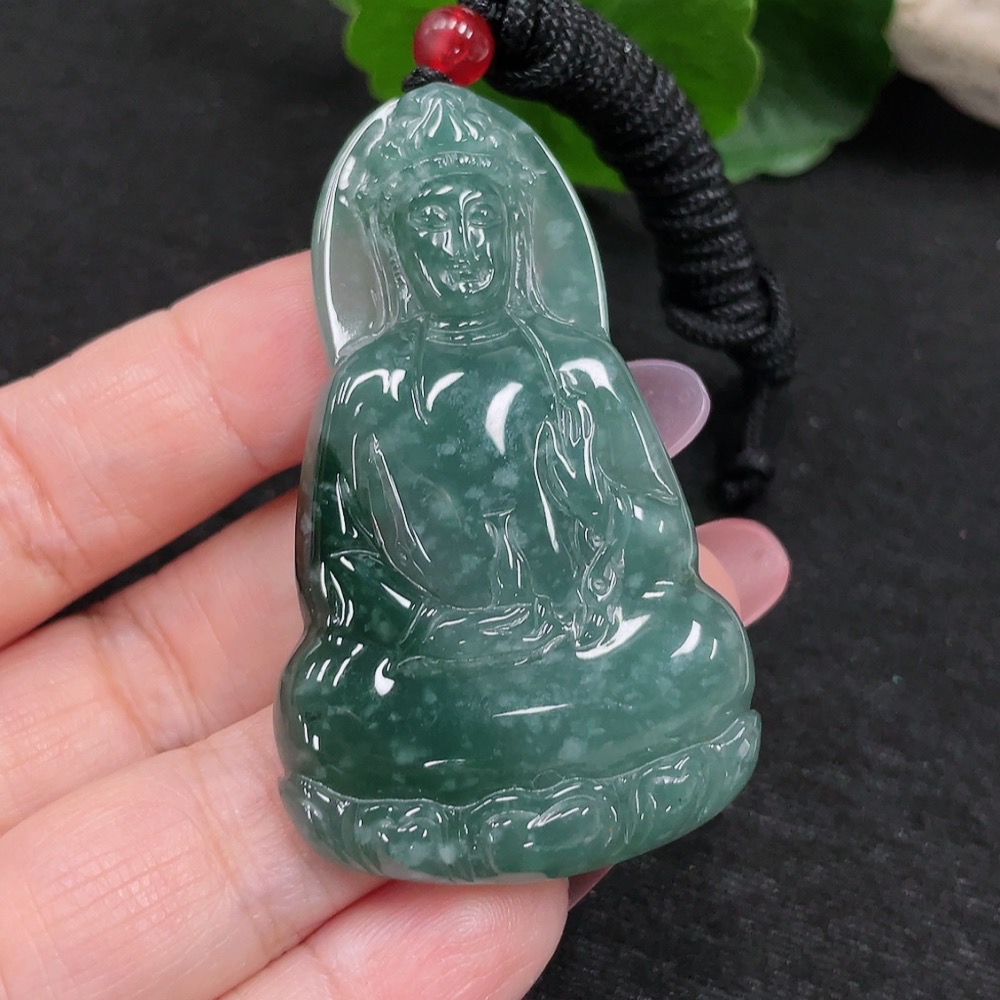 Jadeite Guanyin Pendant Total Weight Approx. 22.5g (Including String Weight) (Matching Beads Non-Grade A)