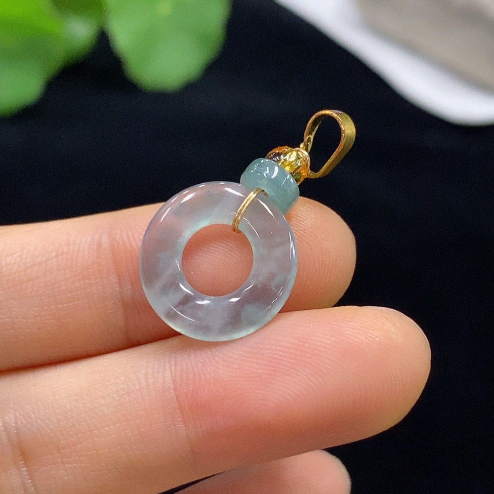 Jadeite Donut Pendant Non-Gold Total Weight Approx. 1.36g (Excluding Rope)