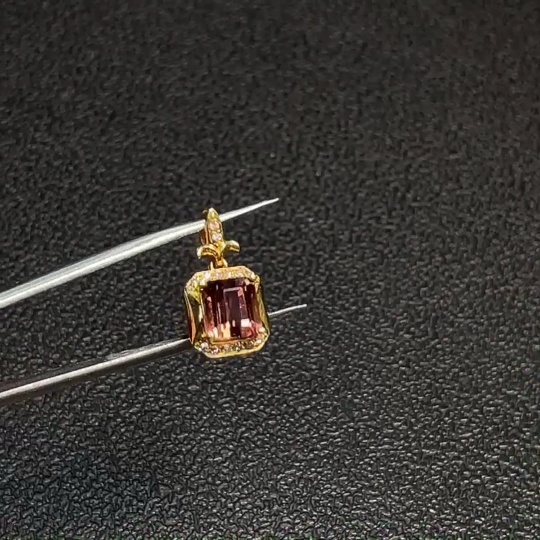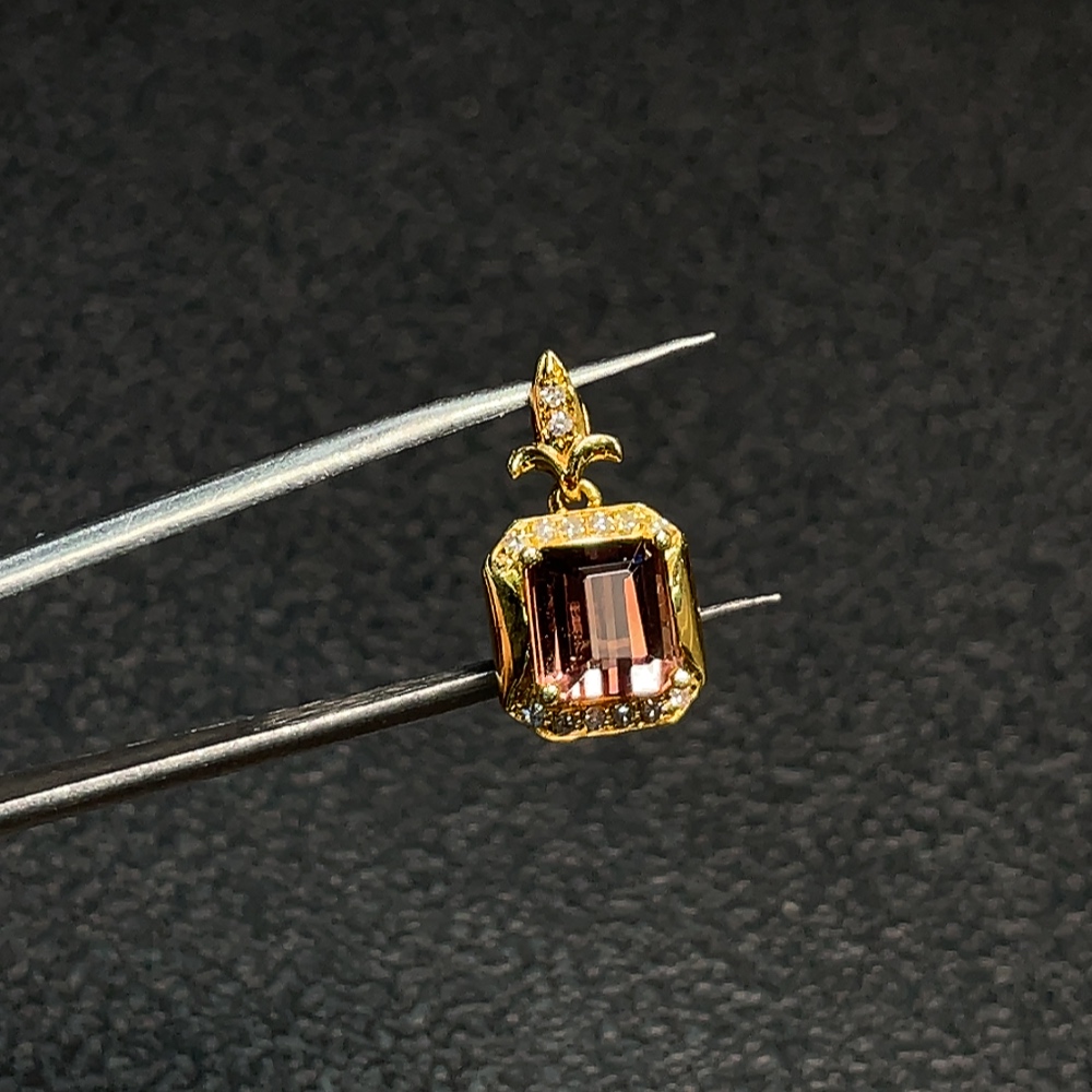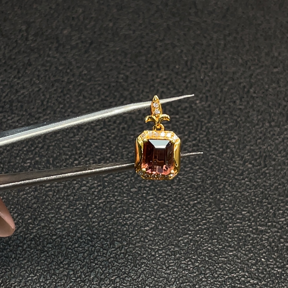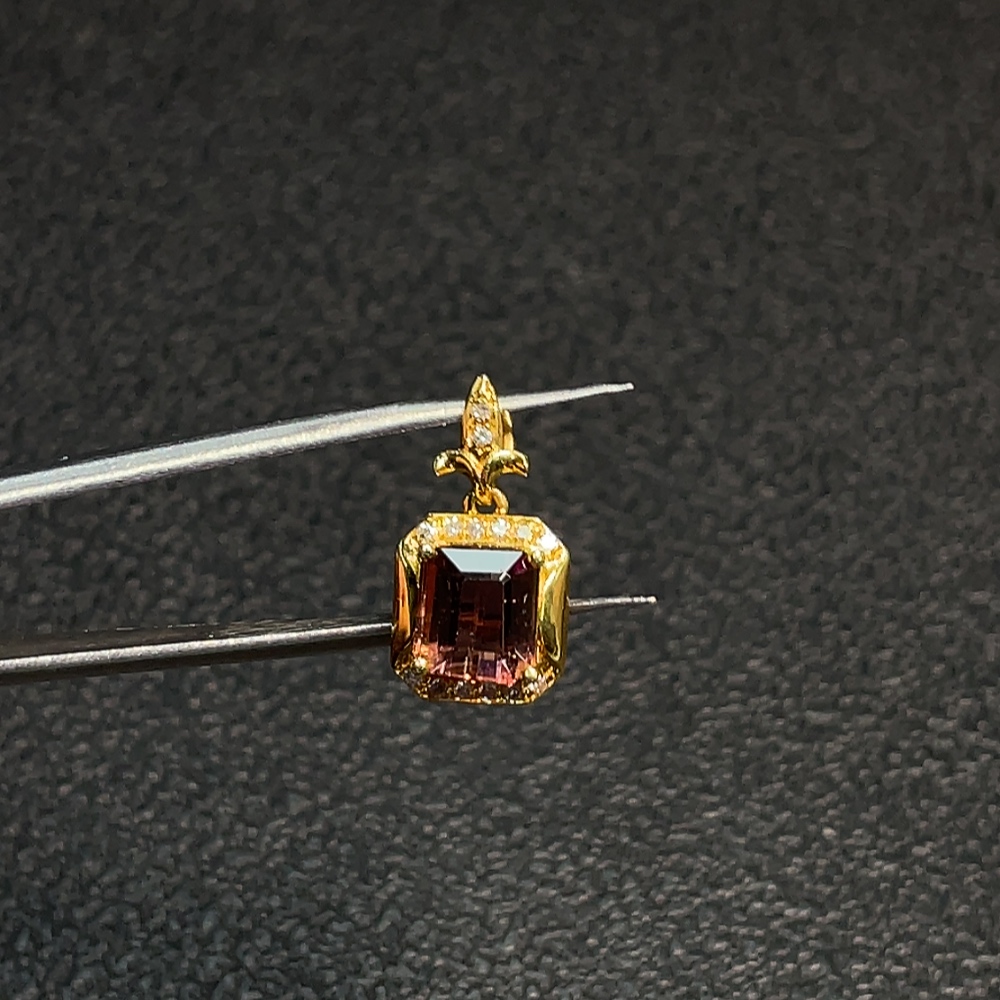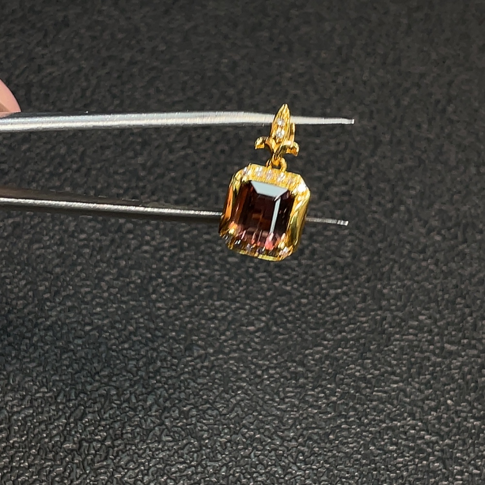 18K Gold Tourmaline Pendant with Diamonds, Total Weight Approx. 1.41g