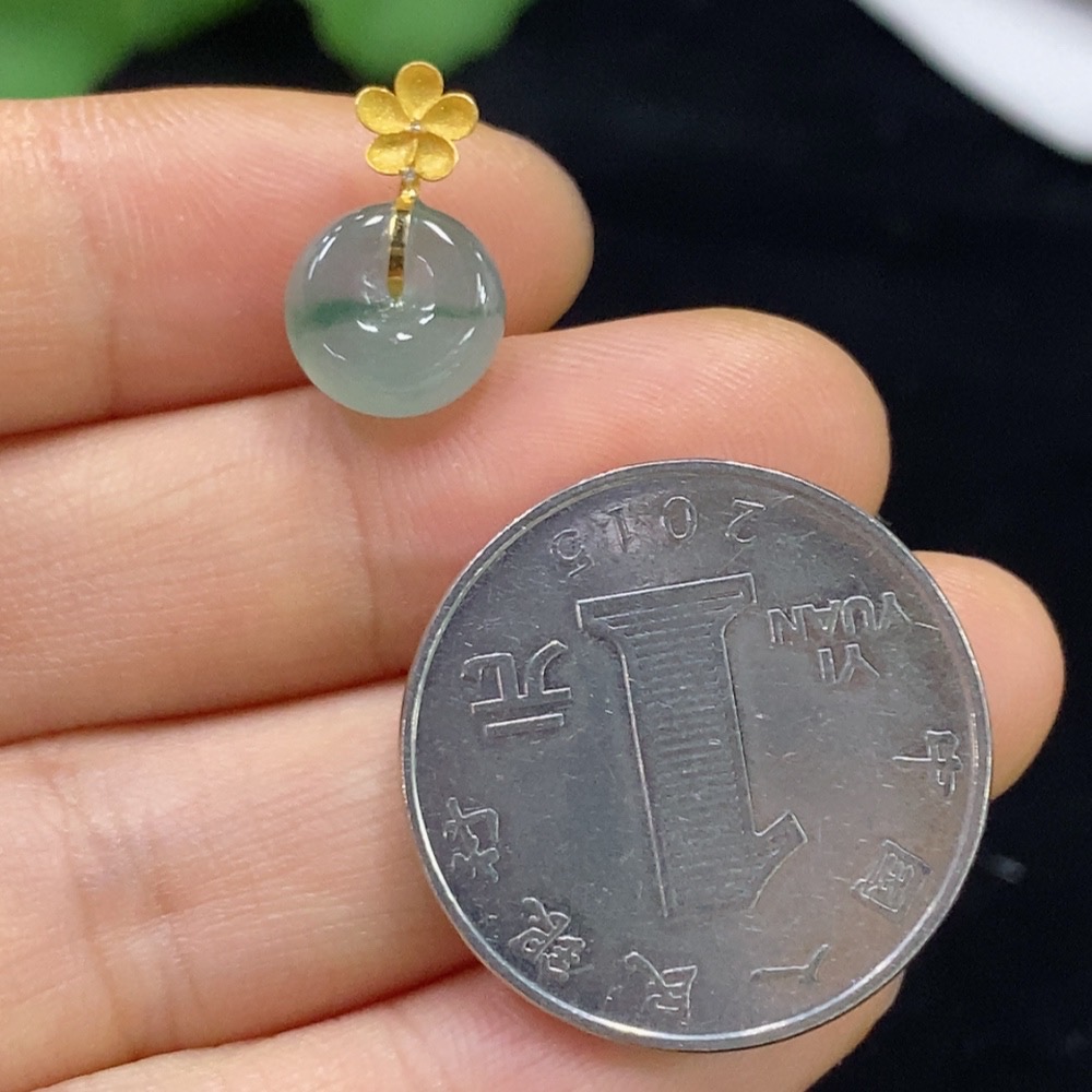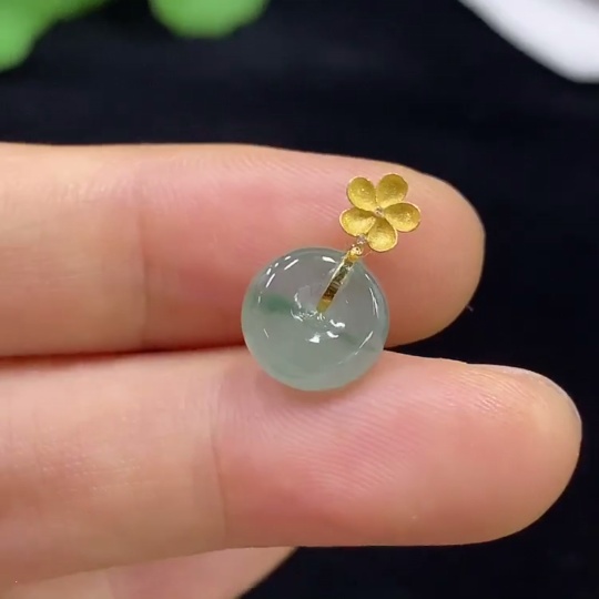 Jadeite Peace Knot Pendant with 18K Gold Bail, Non-Gold Cord Loop, Item Excluding Cord Weighs Approximately 1g