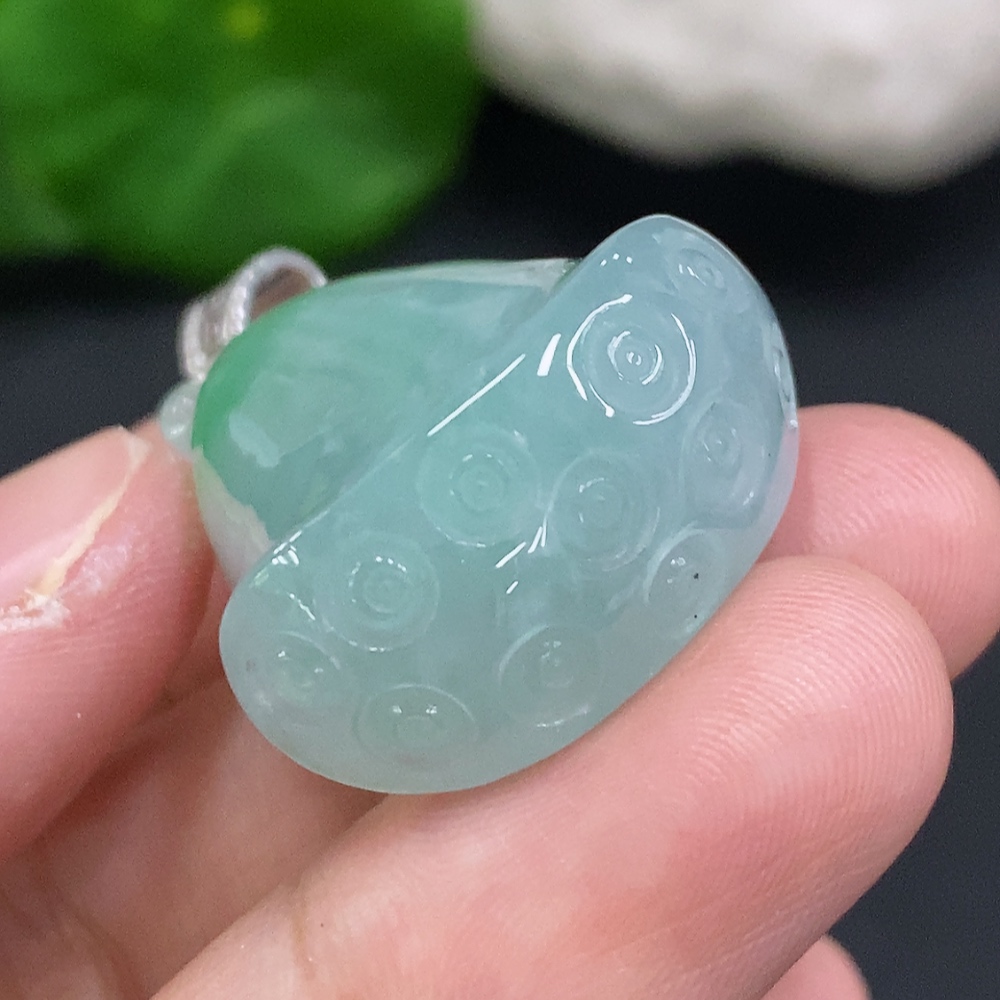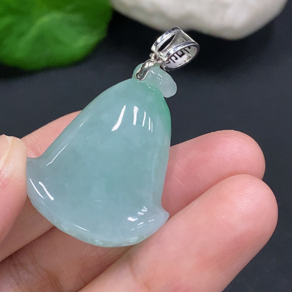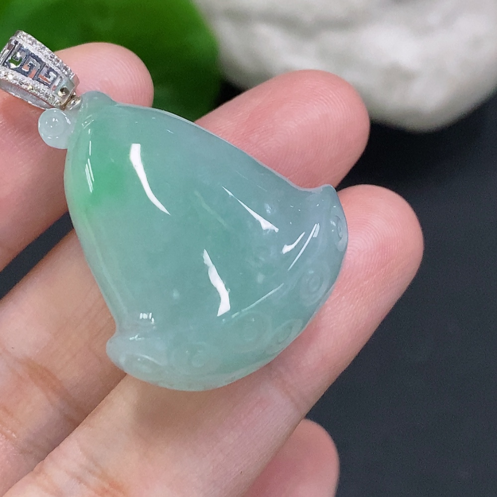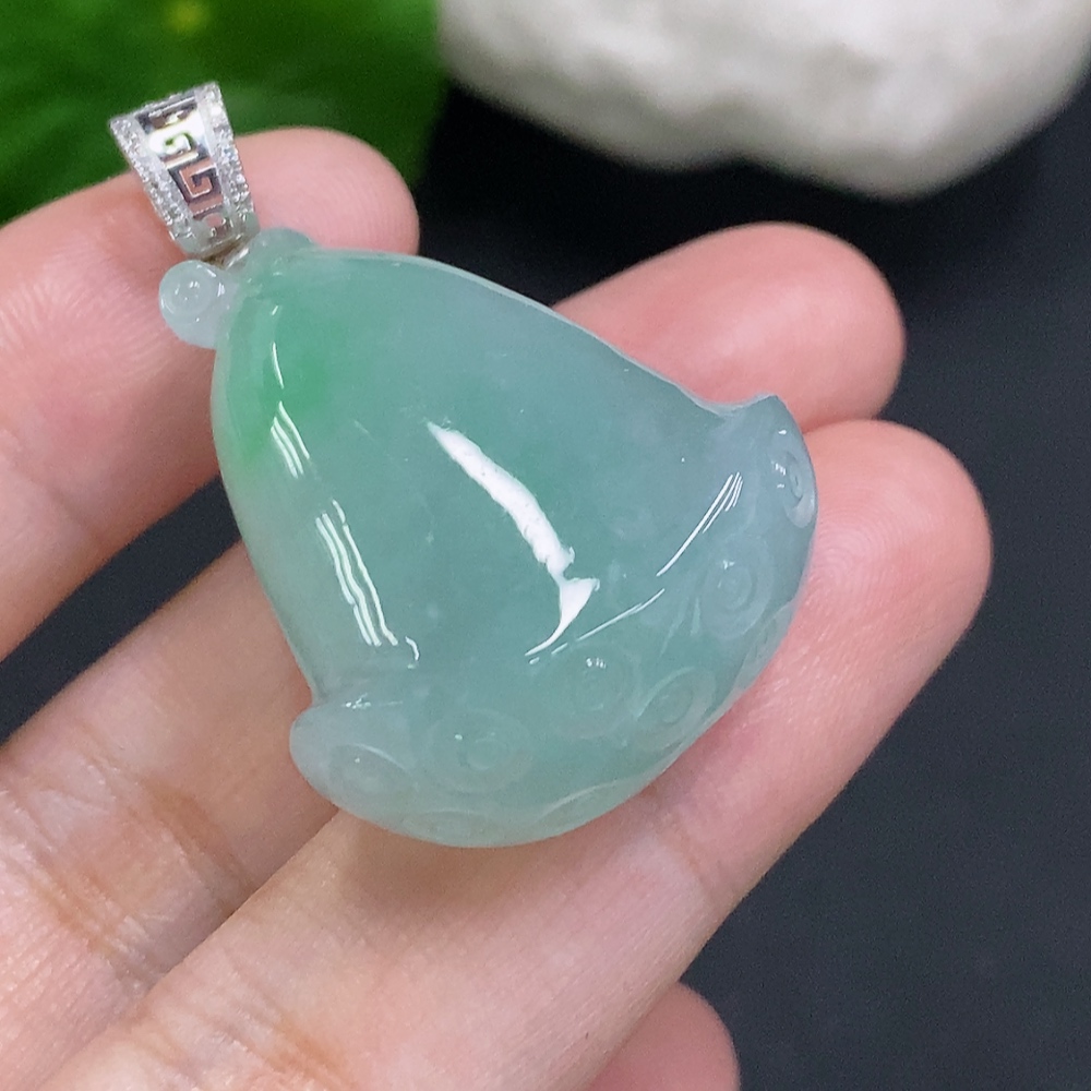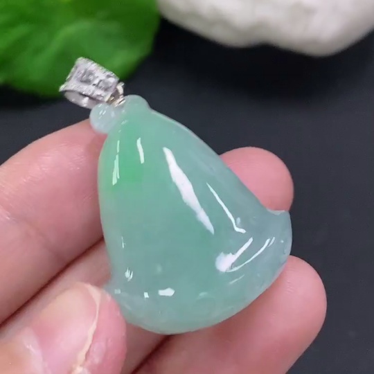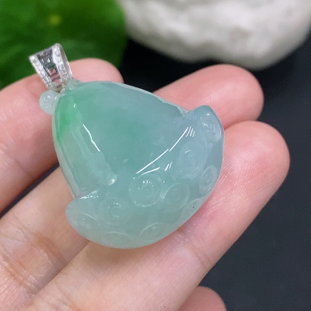 Jadeite Lotus Pod Pendant with 18K Gold Clasp, Total Weight Approx. 16g (Diamond Accents)