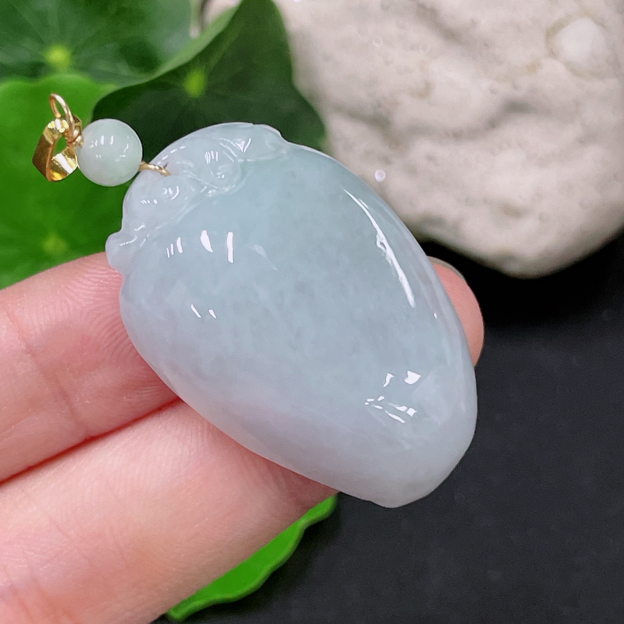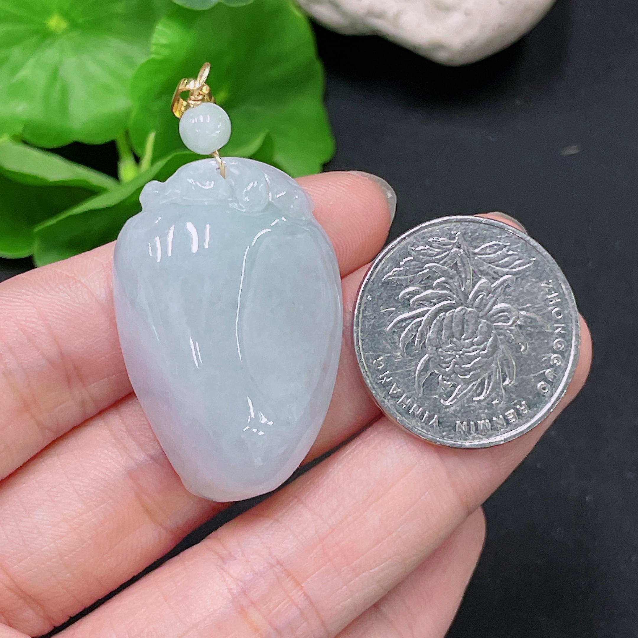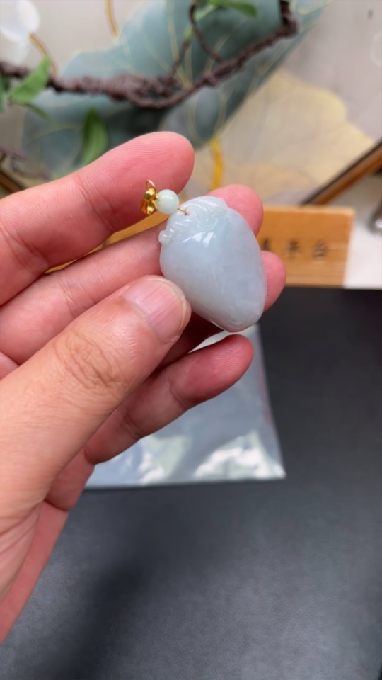 Jadeite Auspicious Melon Pendant Total Weight Approx. 16g (Non-Gold-Inlaid)