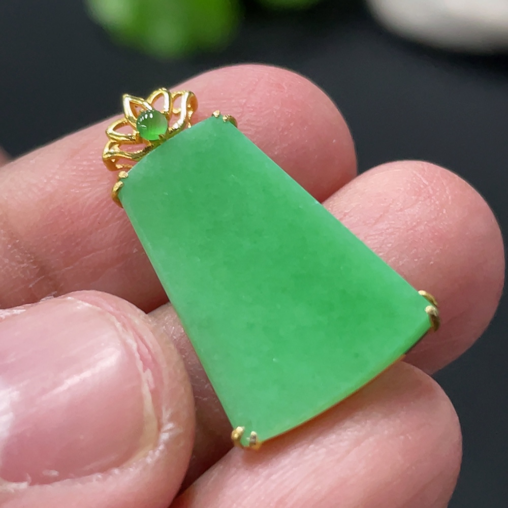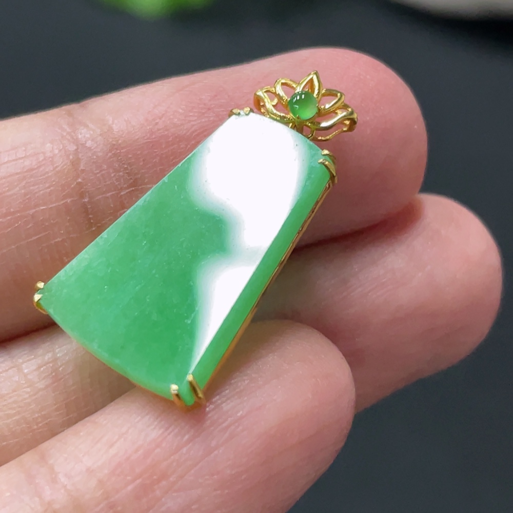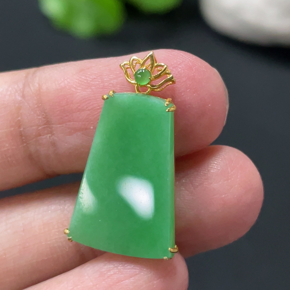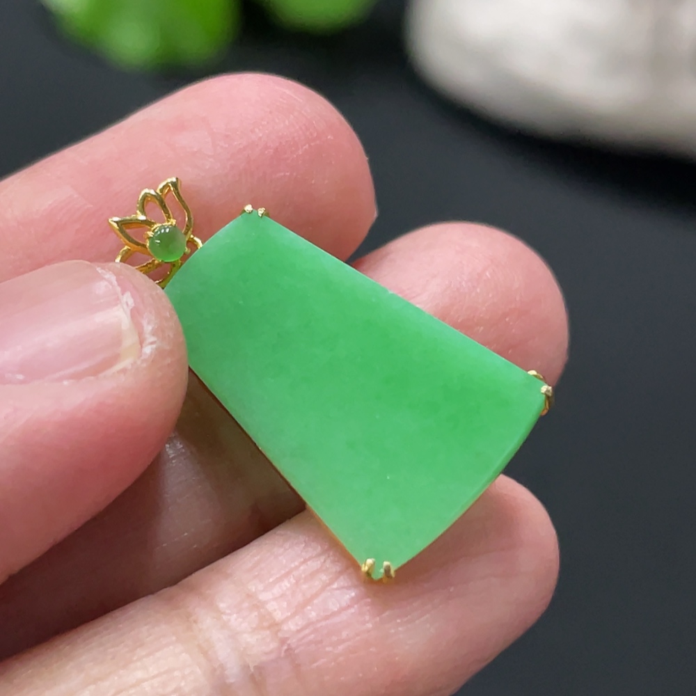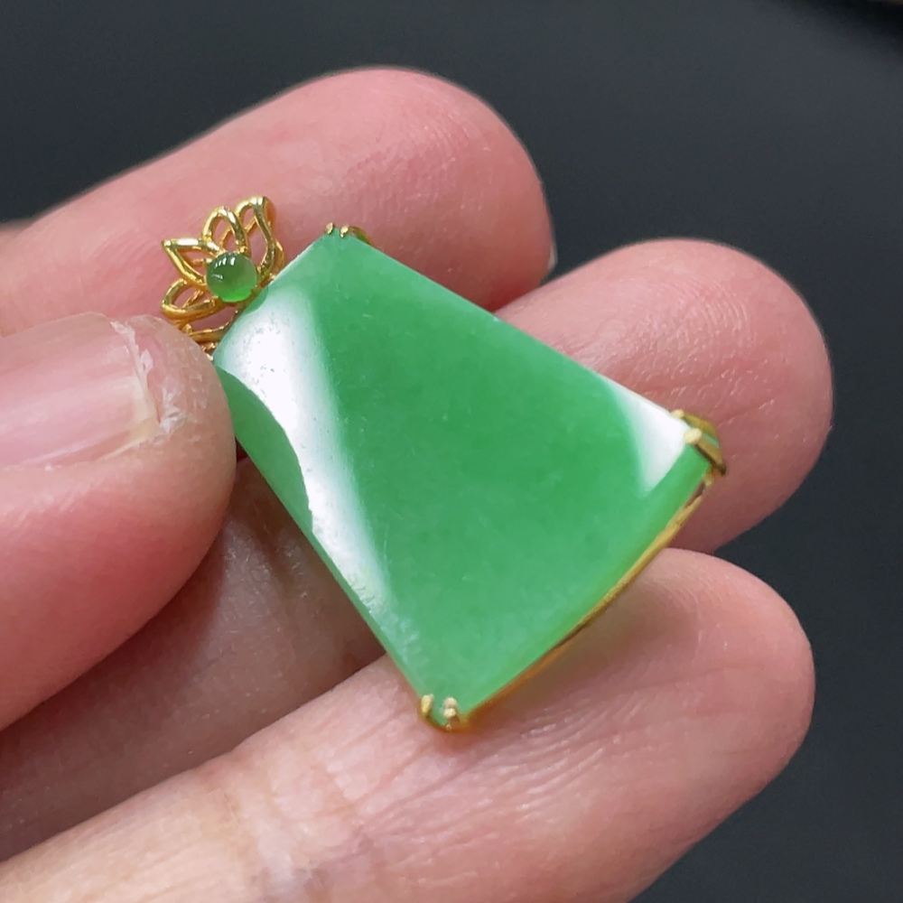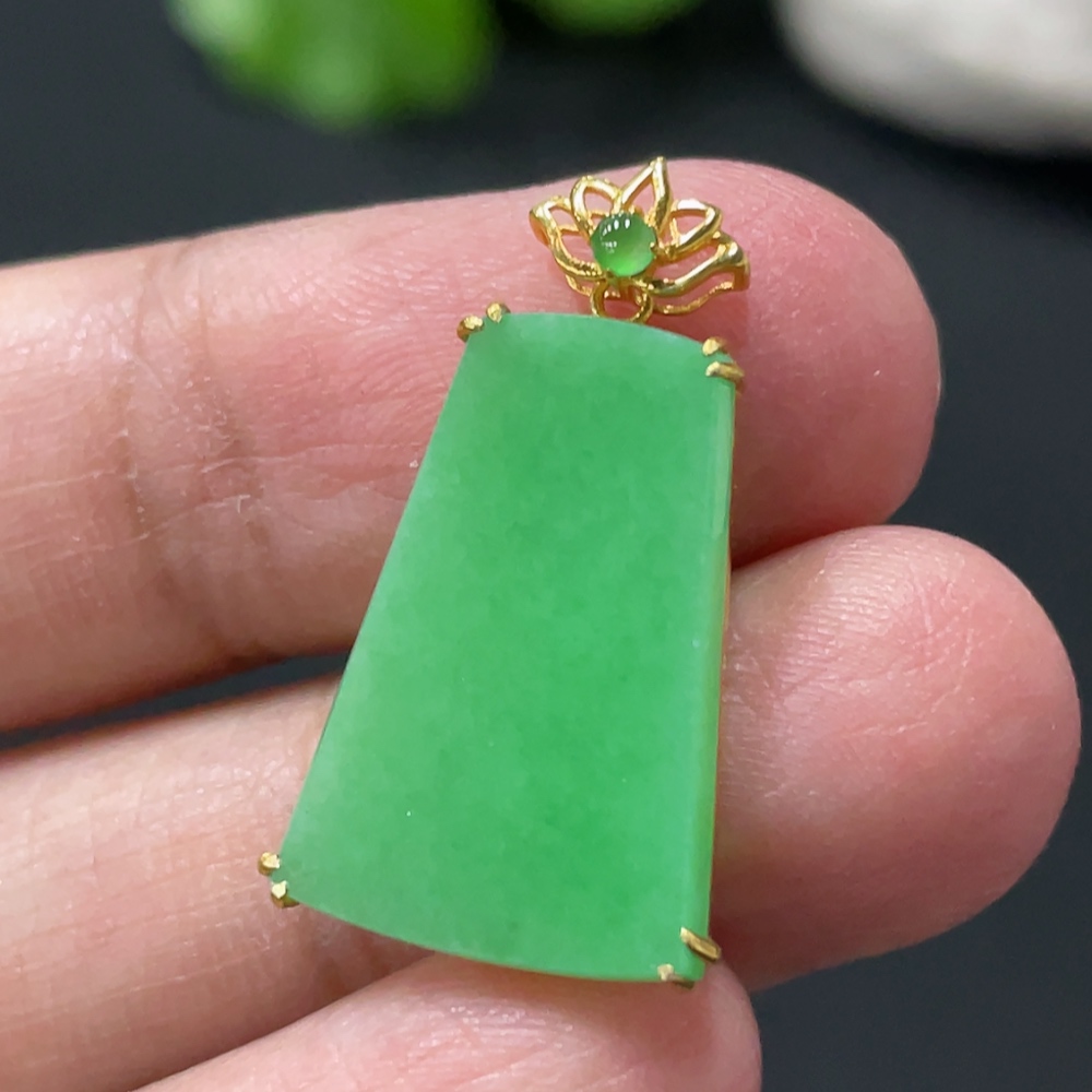 Jadeite Plain Pendant Necklace 18k Gold Inlaid Total Weight Approx.1.4g