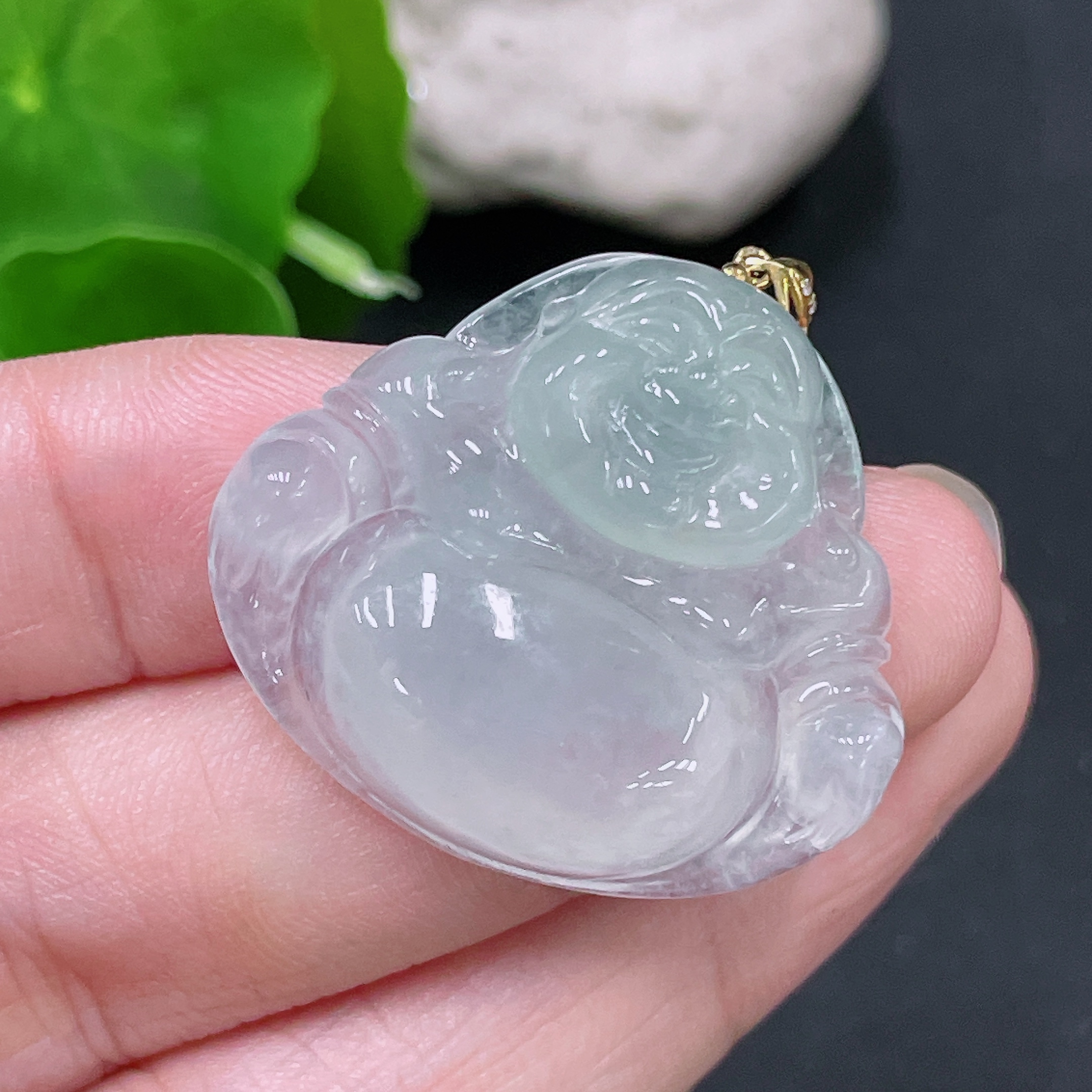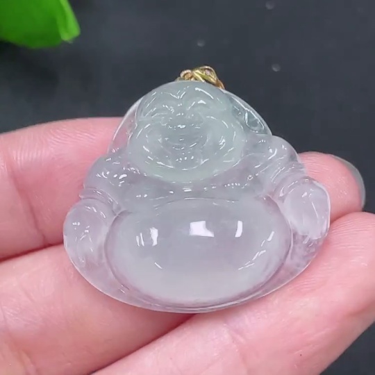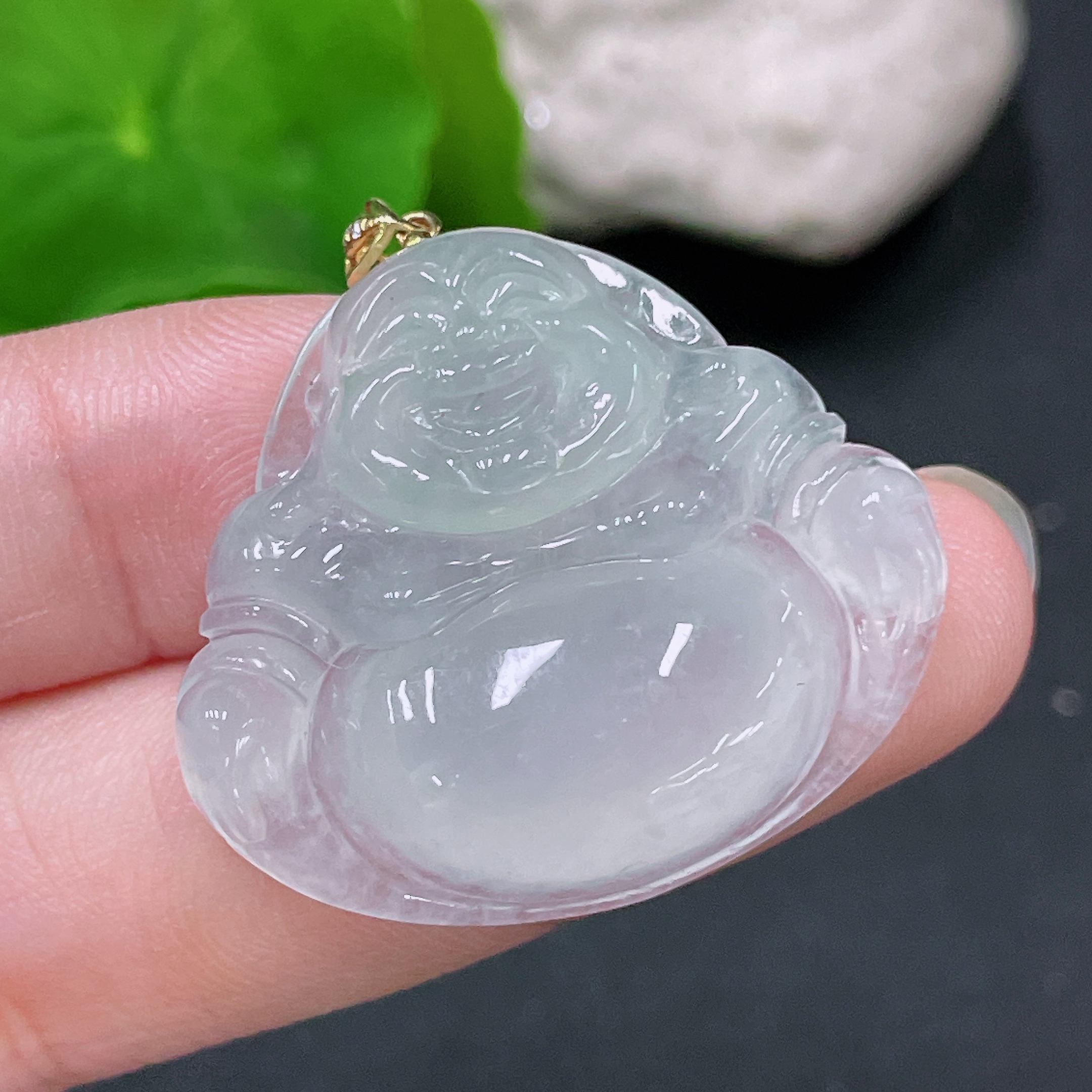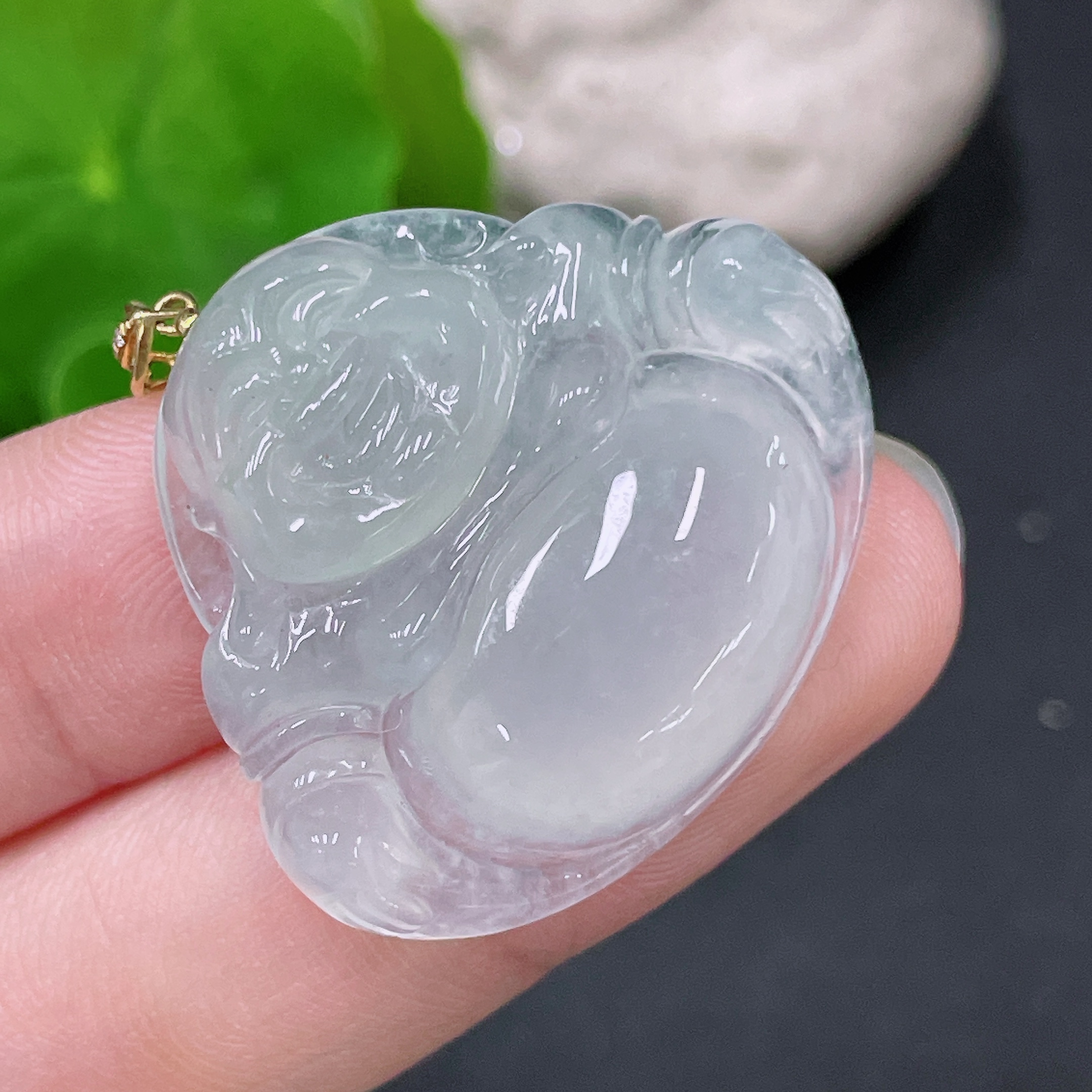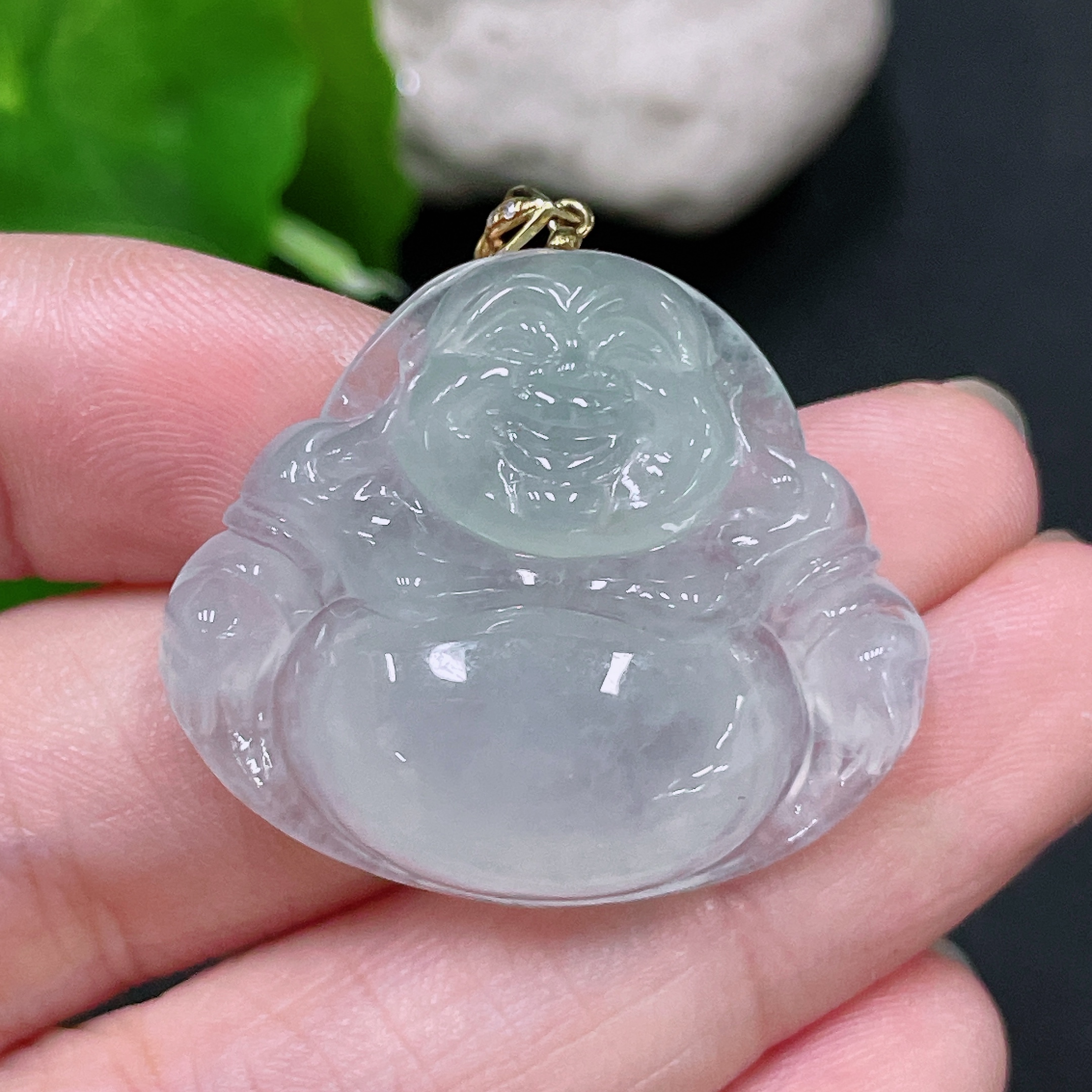 Jadeite Buddha Pendant with 18K Gold Clasp, Total Weight Approx. 8.4g