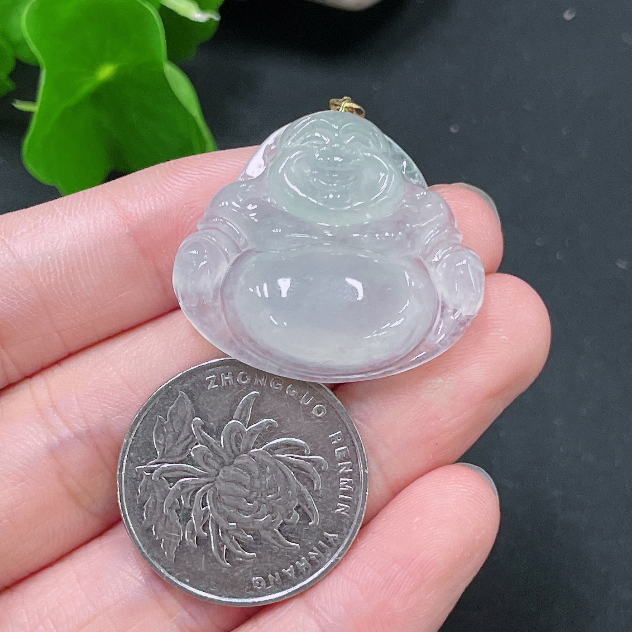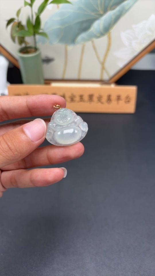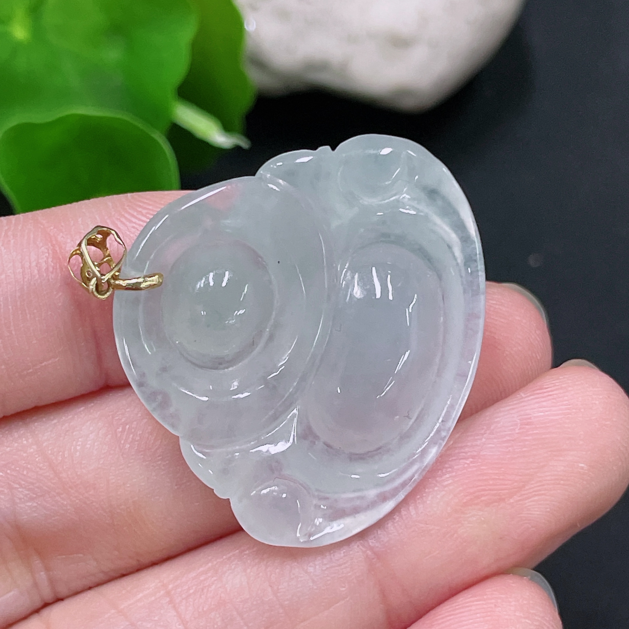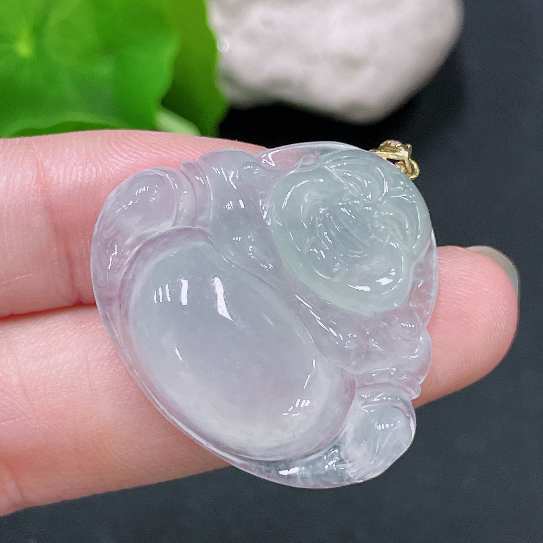 Jadeite Buddha Pendant with 18K Gold Clasp, Total Weight Approx. 8.4g