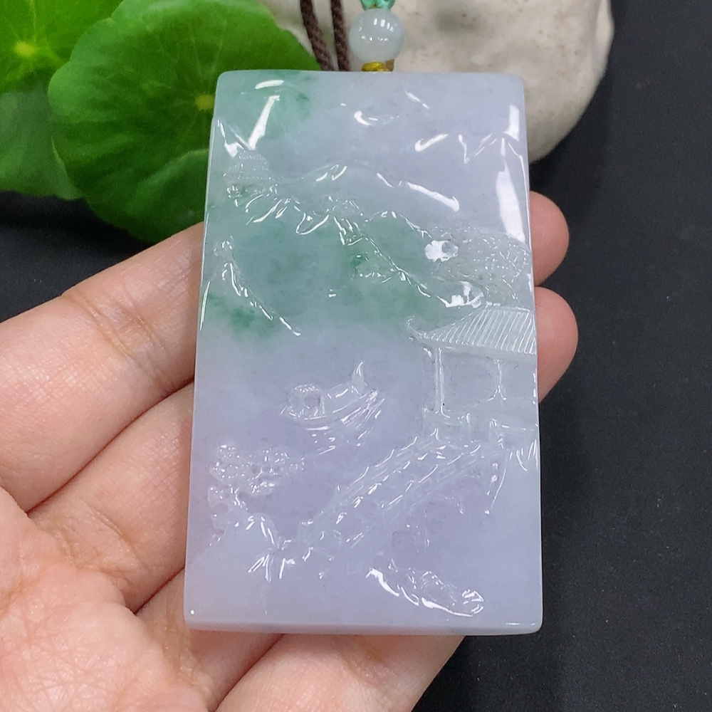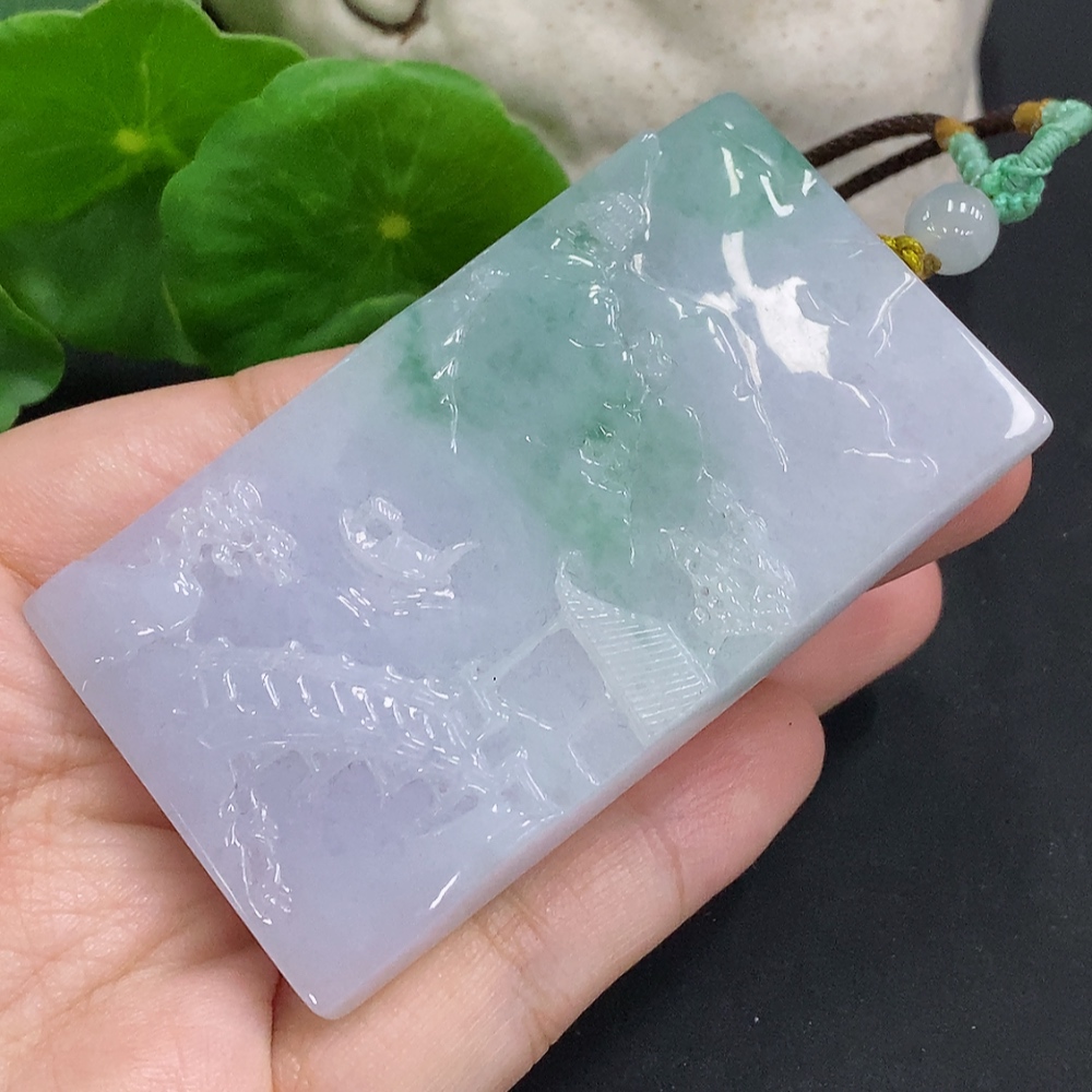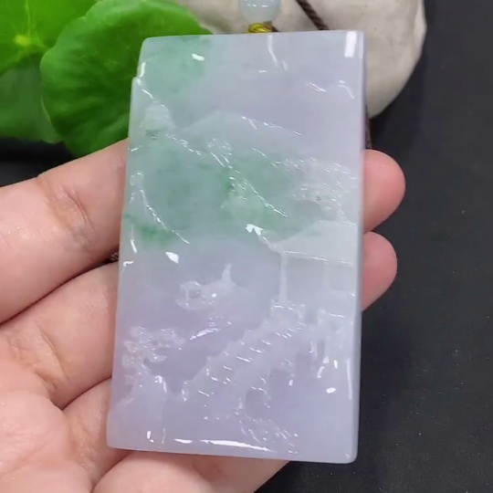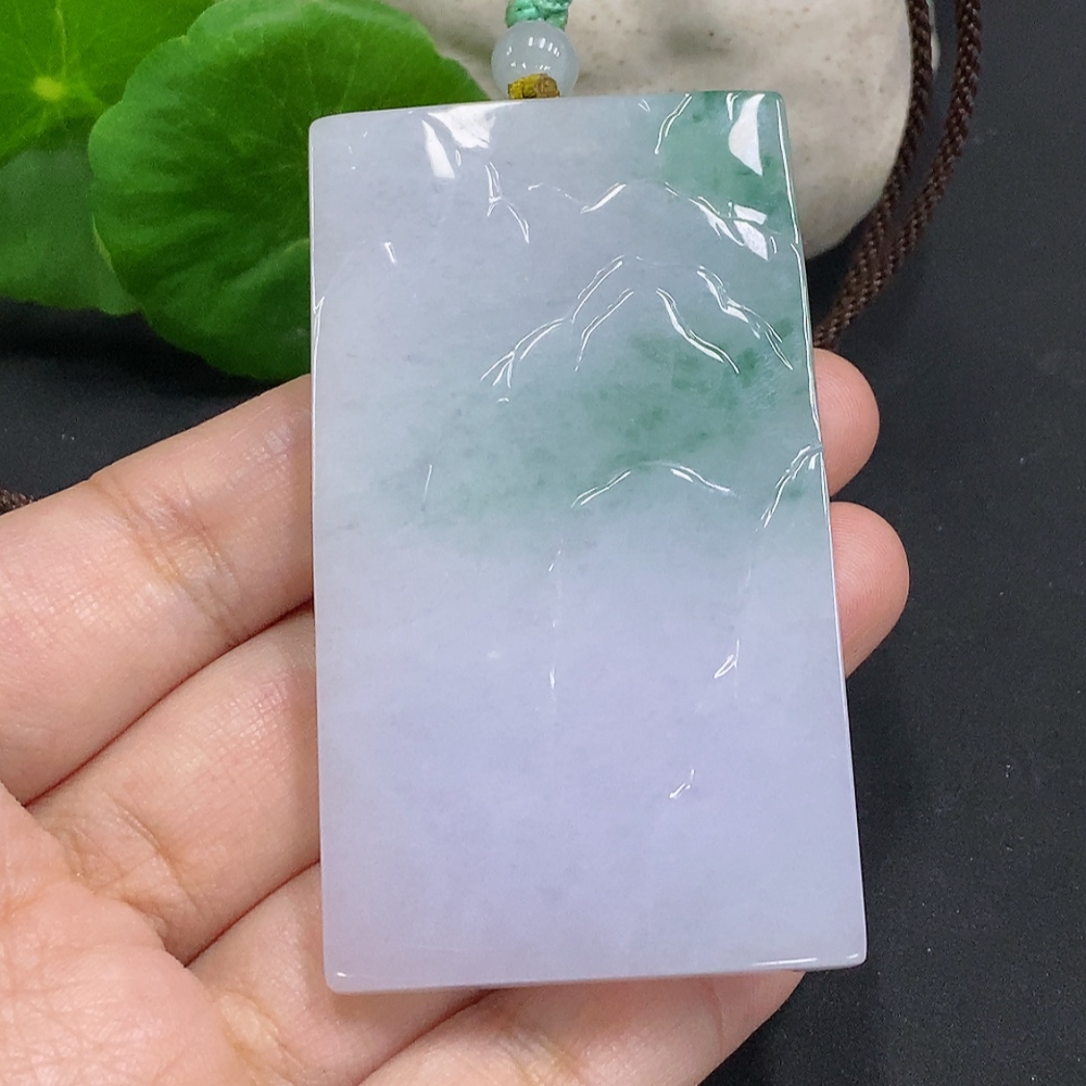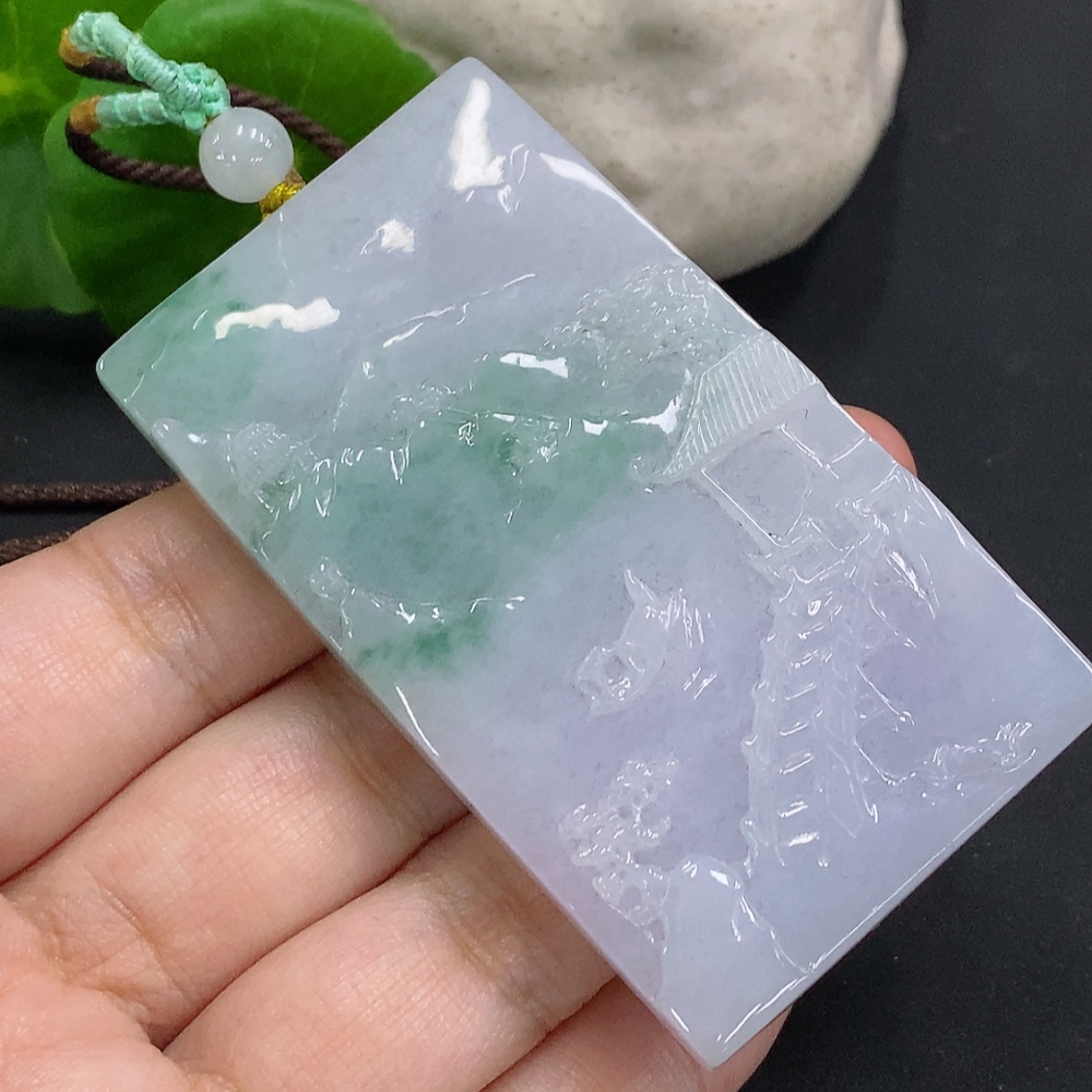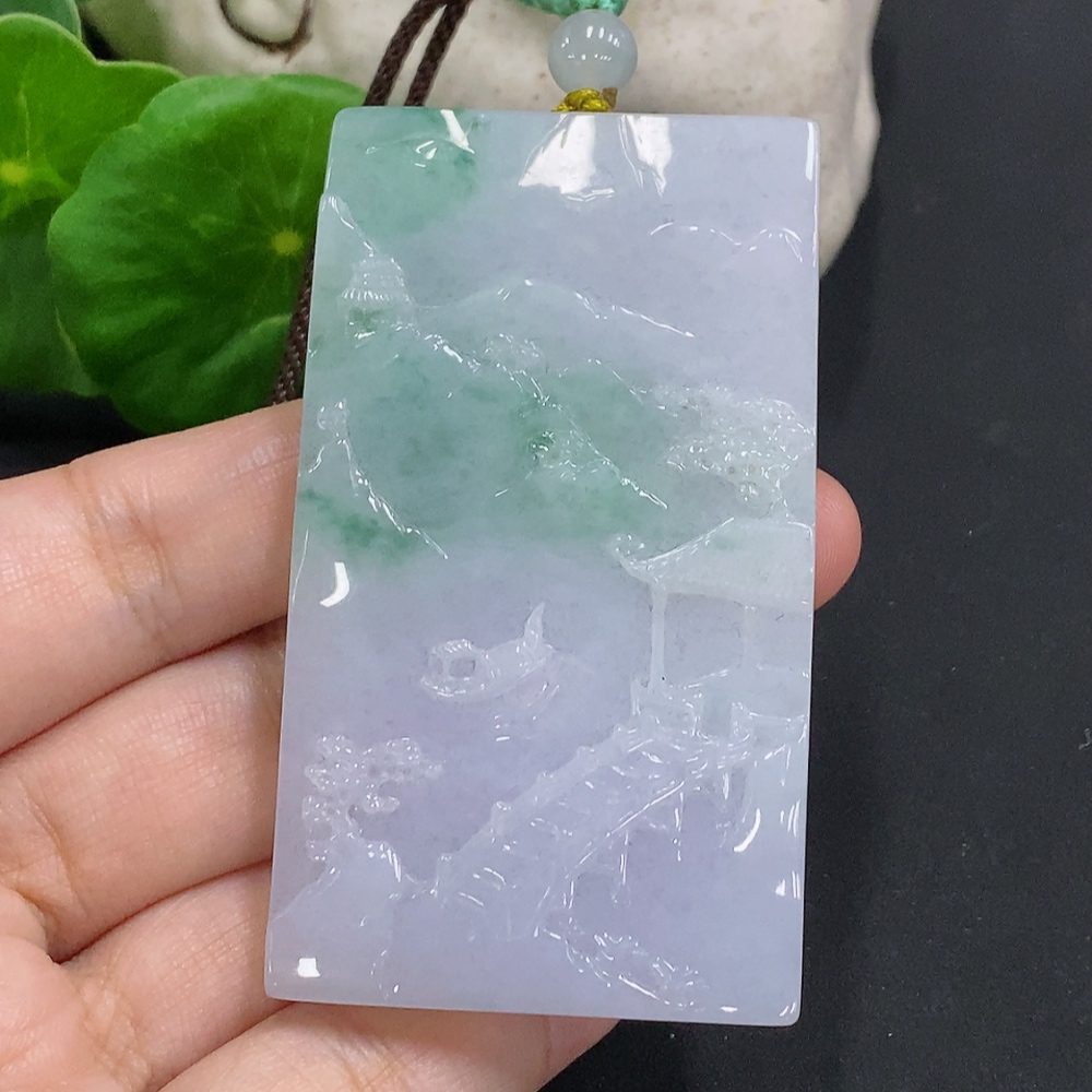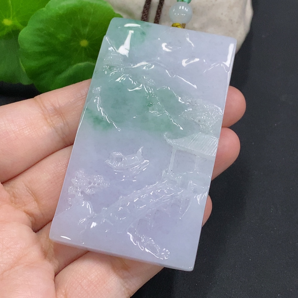 Jadeite Landscape Pendant with Cord, Total Weight Approx. 68.9g