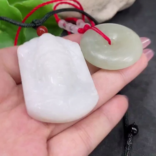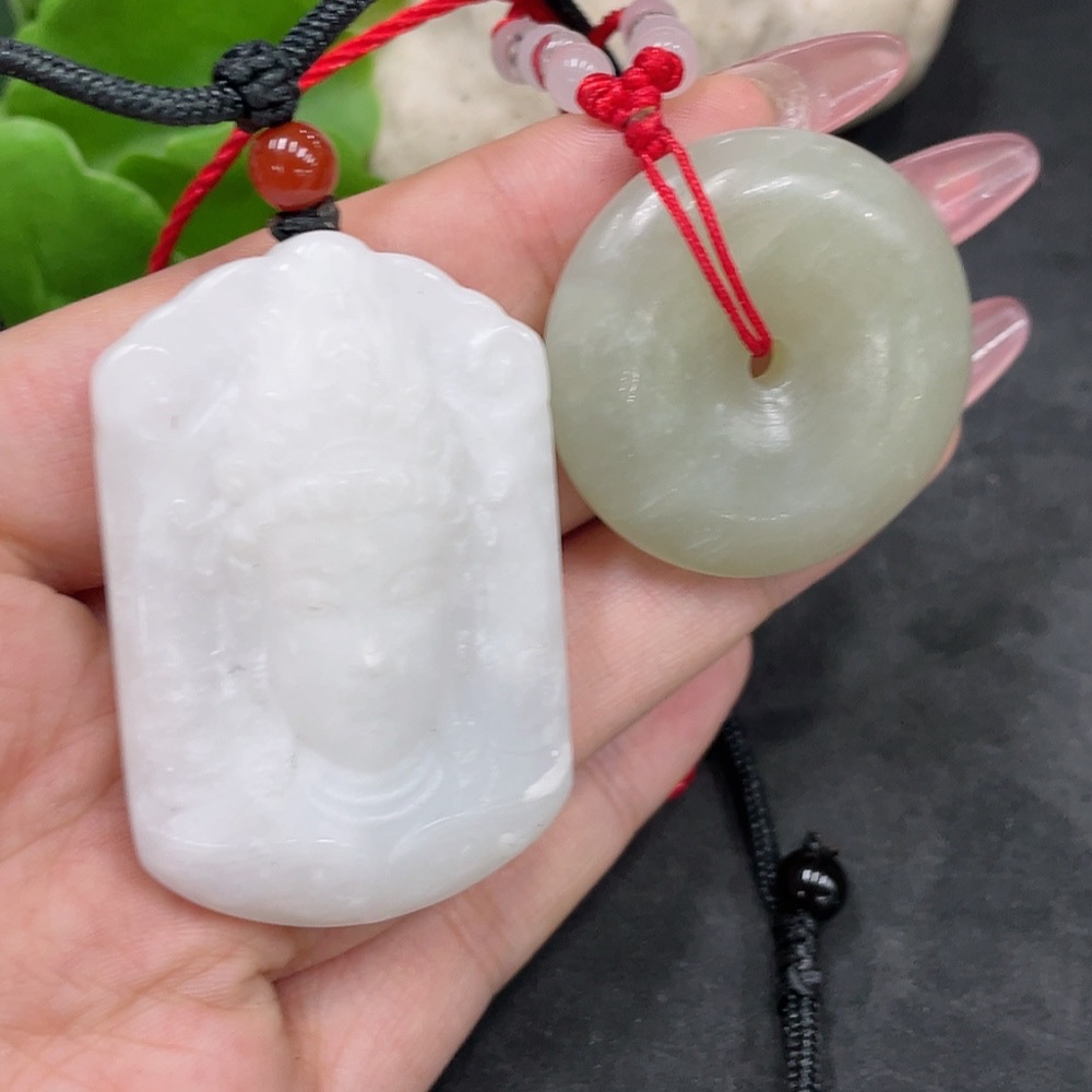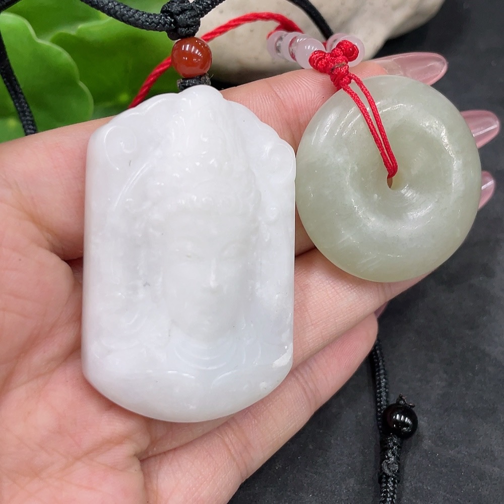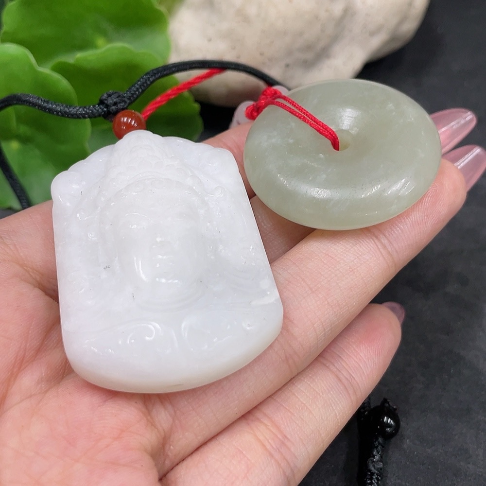 Hetian Jade Pendant - Peace Buckle + Guanyin