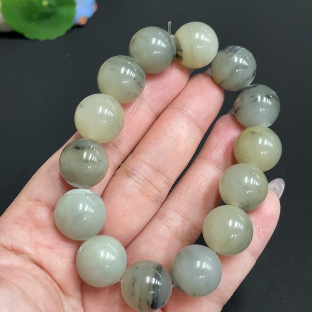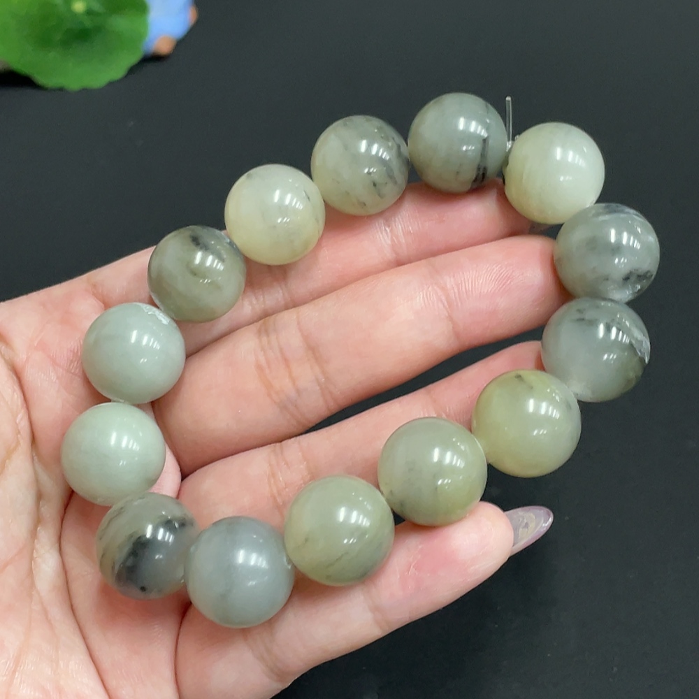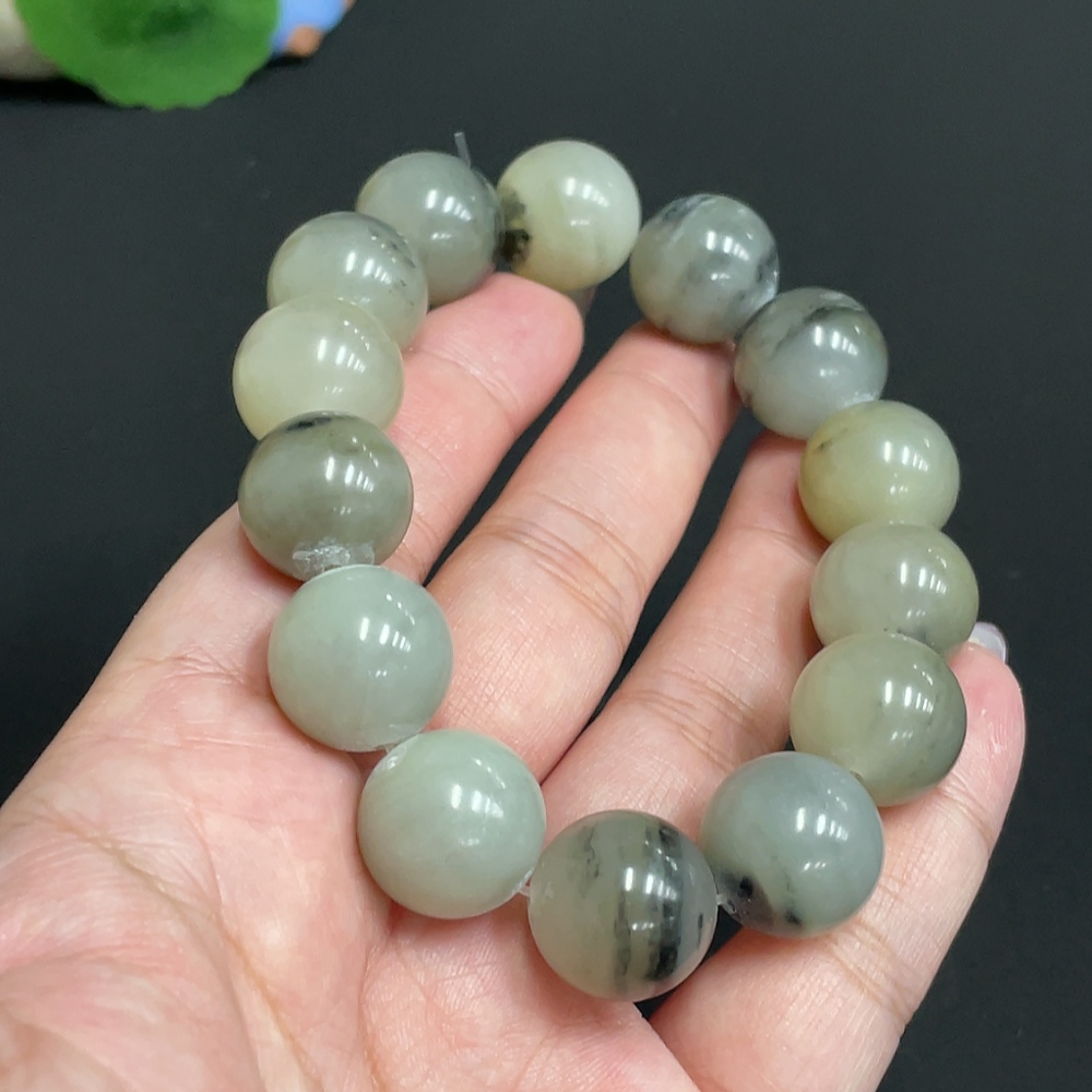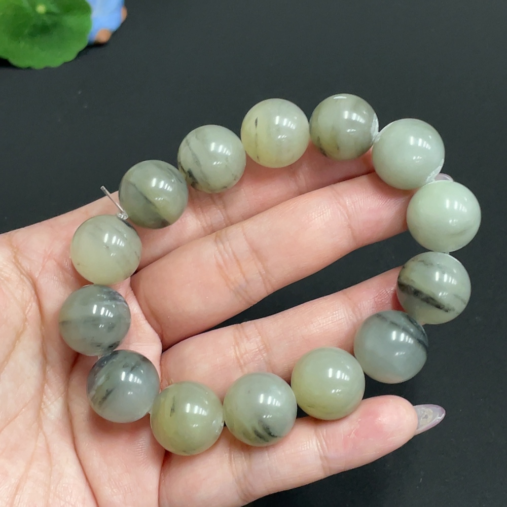 Hetian Jade Bracelet, Approx. 15.4 mm Beads, Total Weight About 82.7g, Containing Other Mineral Components