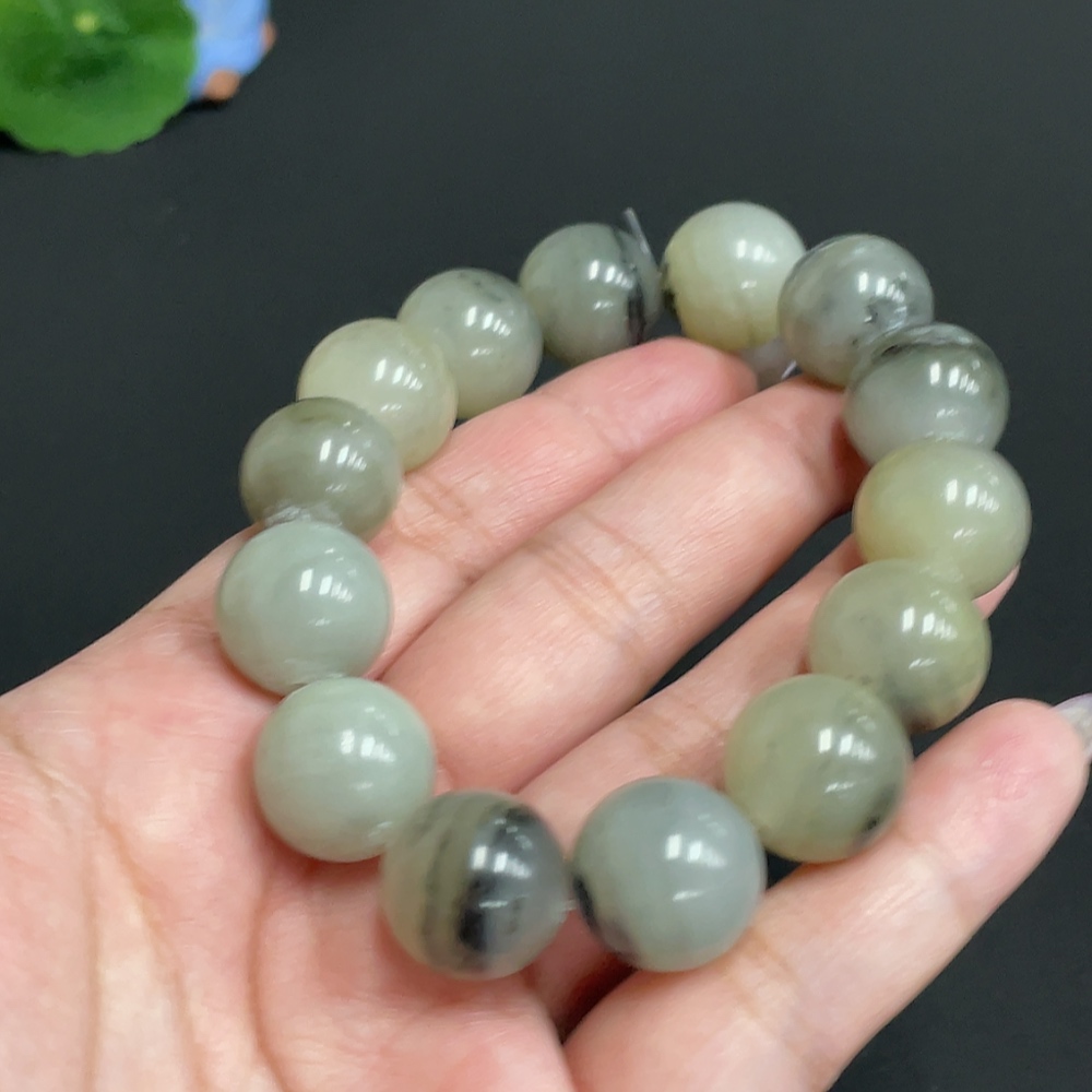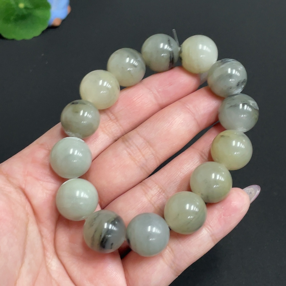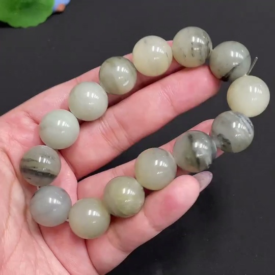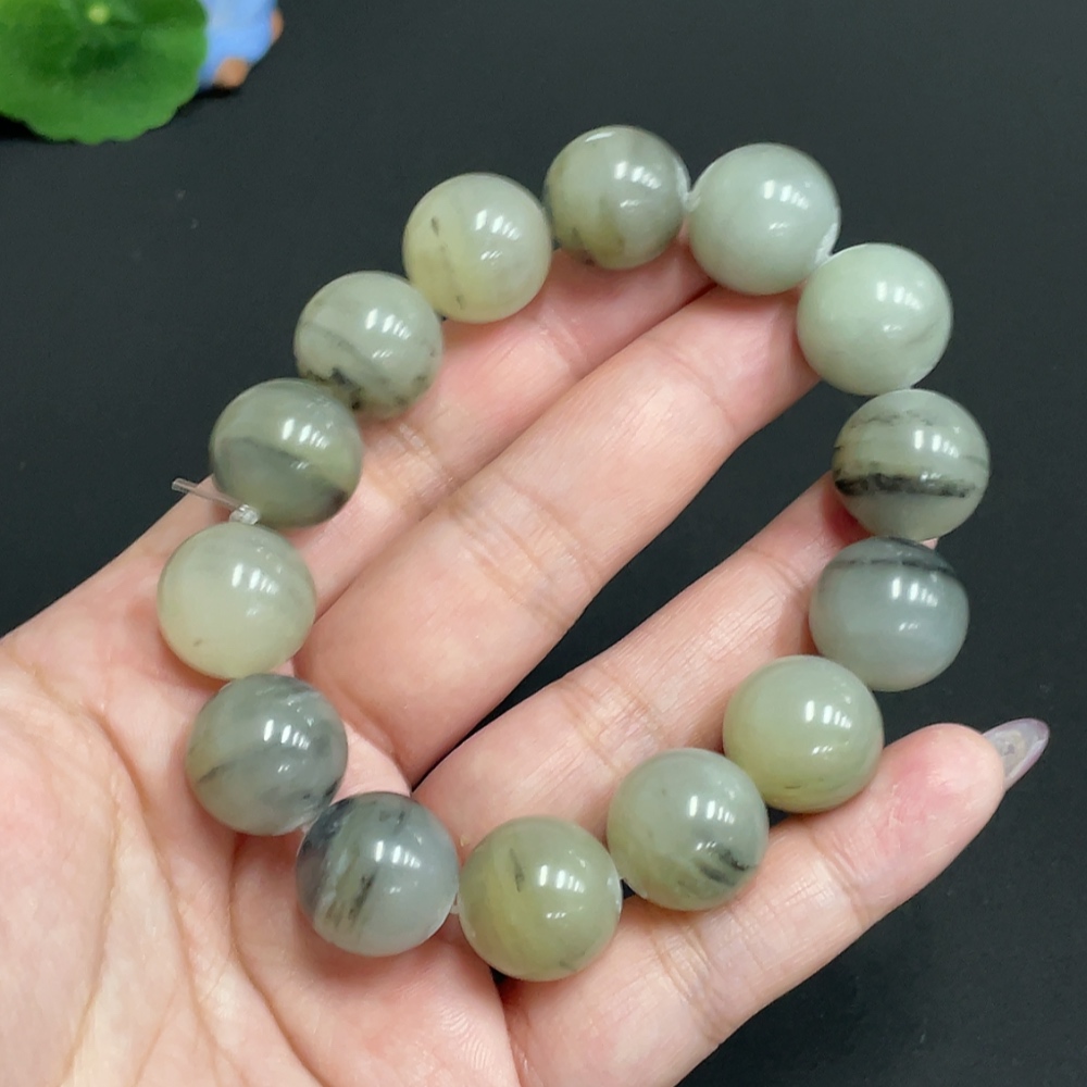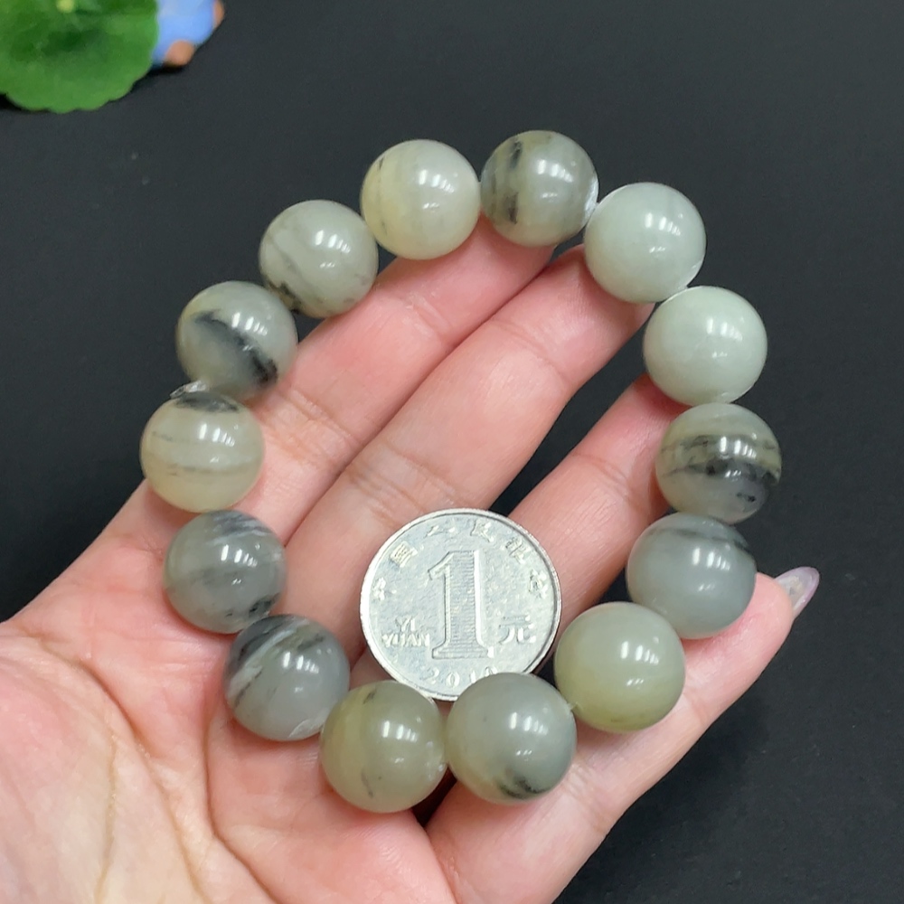 Hetian Jade Bracelet, Approx. 15.4 mm Beads, Total Weight About 82.7g, Containing Other Mineral Components