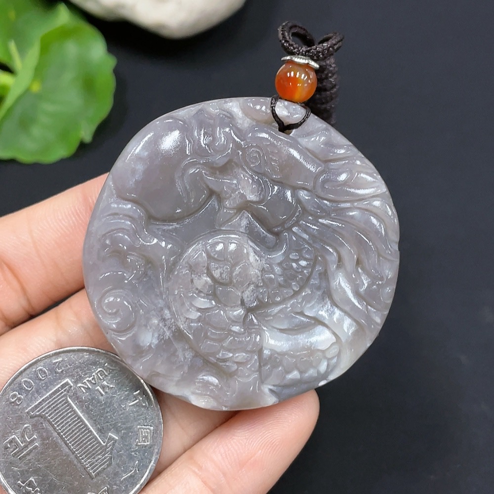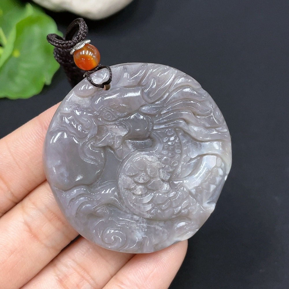 Hetian Jade Dragon Pendant, Total Weight Approx. 47.3g Including Rope, Non-Hetian Stone Accessories