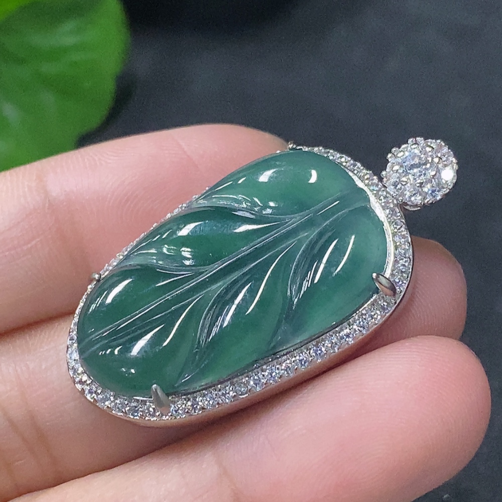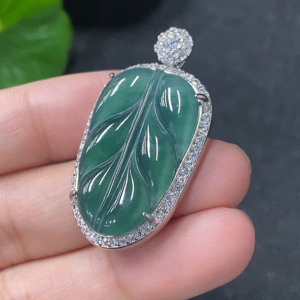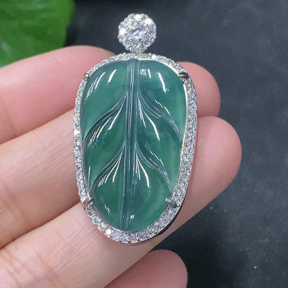Jadeite Leaf Pendant with Inlay Non-Gold Total Weight Approx. 7g