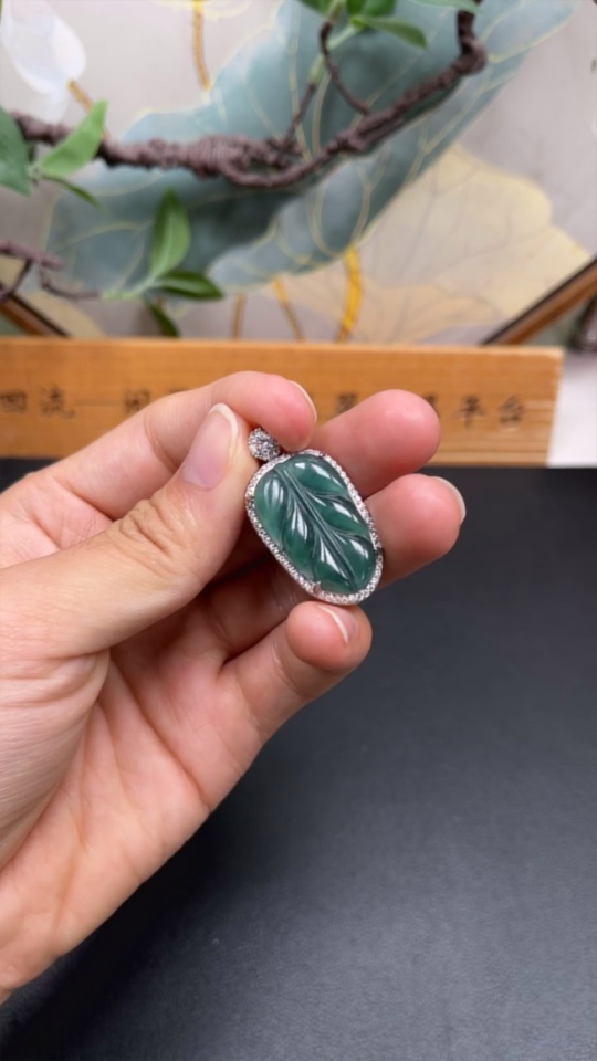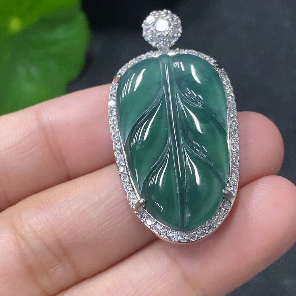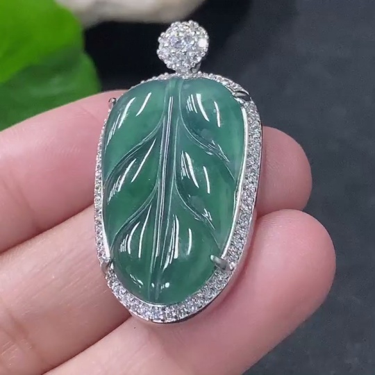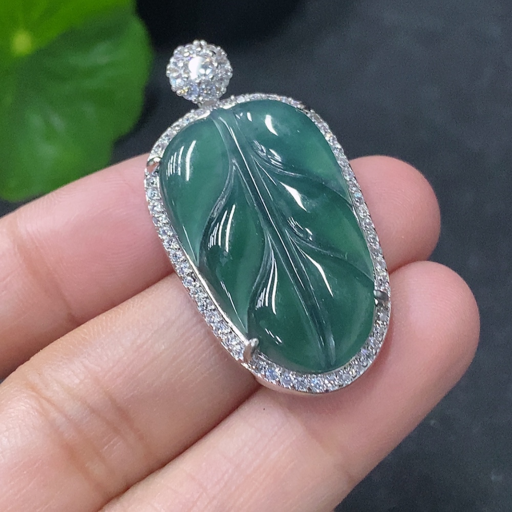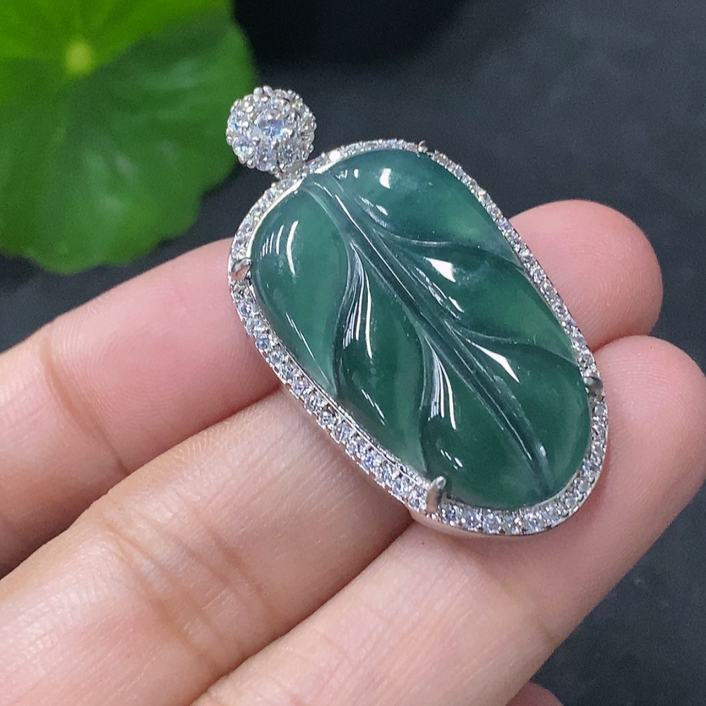 Jadeite Leaf Pendant with Inlay Non-Gold Total Weight Approx. 7g