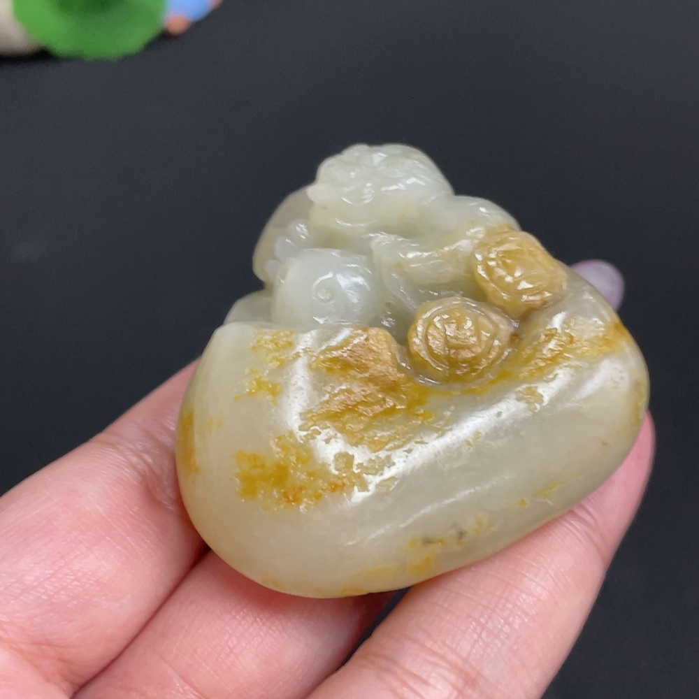 Hetian Jade Pendant, Auspicious Beast, Total Weight Approx. 60.4g, Undetermined Skin Color Origin