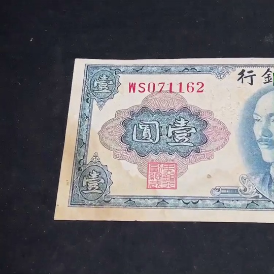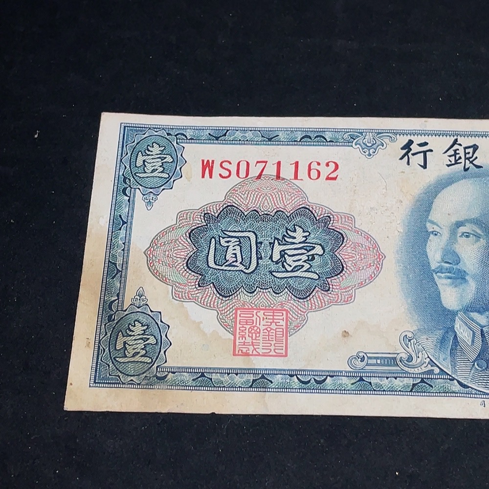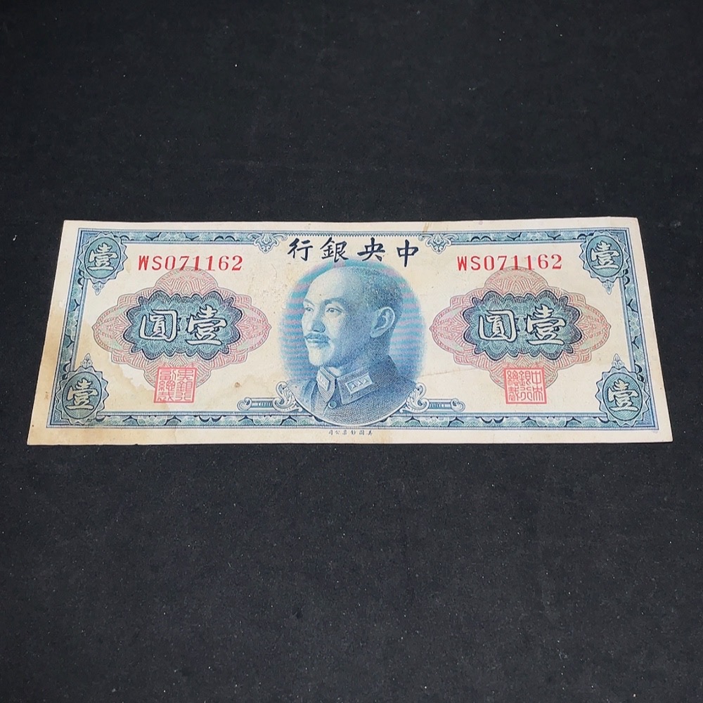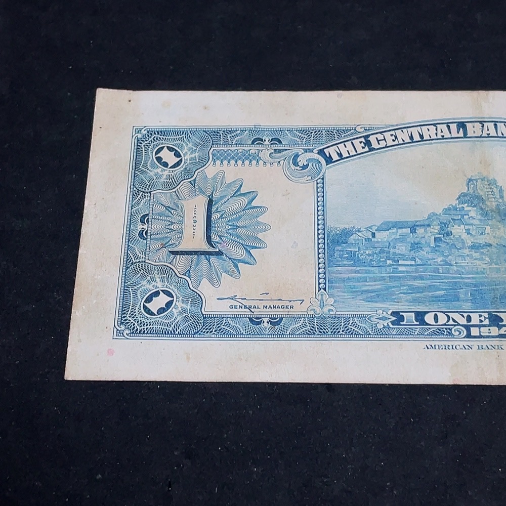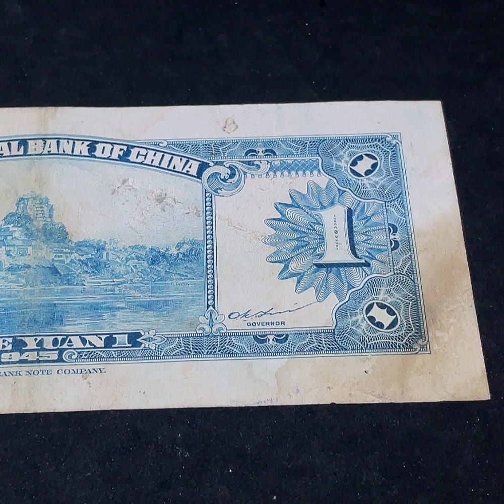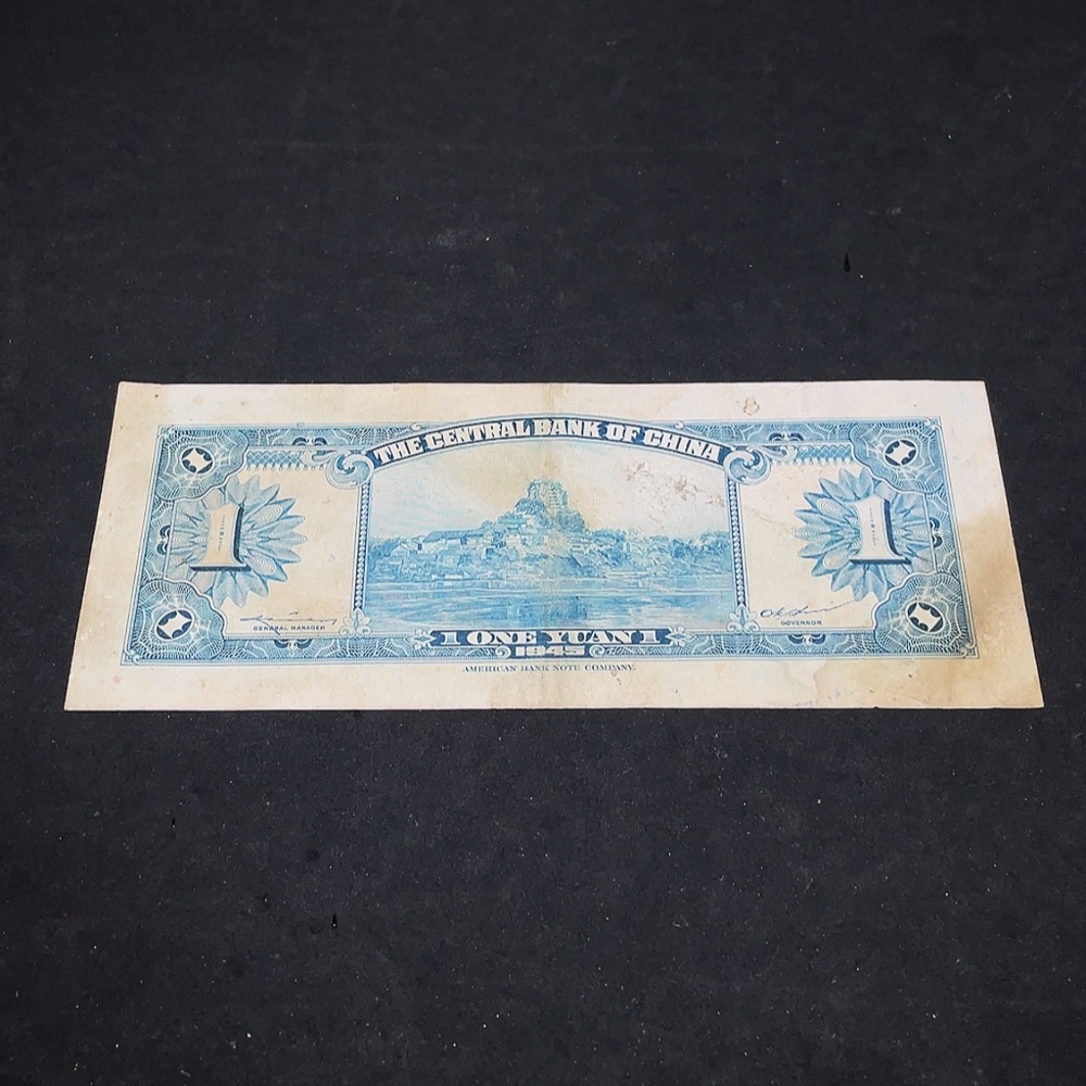 1945 Central Bank of China One Yuan U.S. Banknote Version Republic of China Paper Money