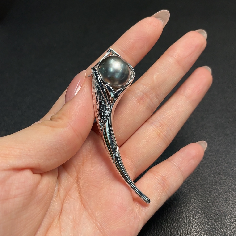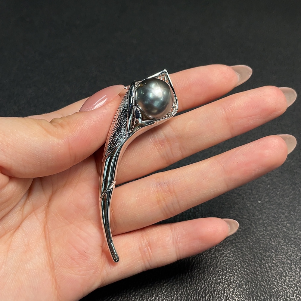 Seawater pearl brooch non-gold total weight about 13.62g carat 14.2mm approx