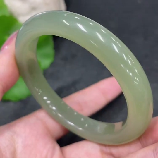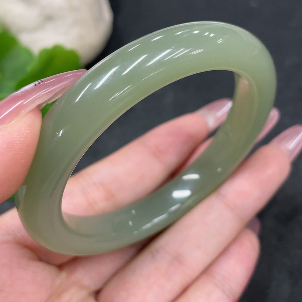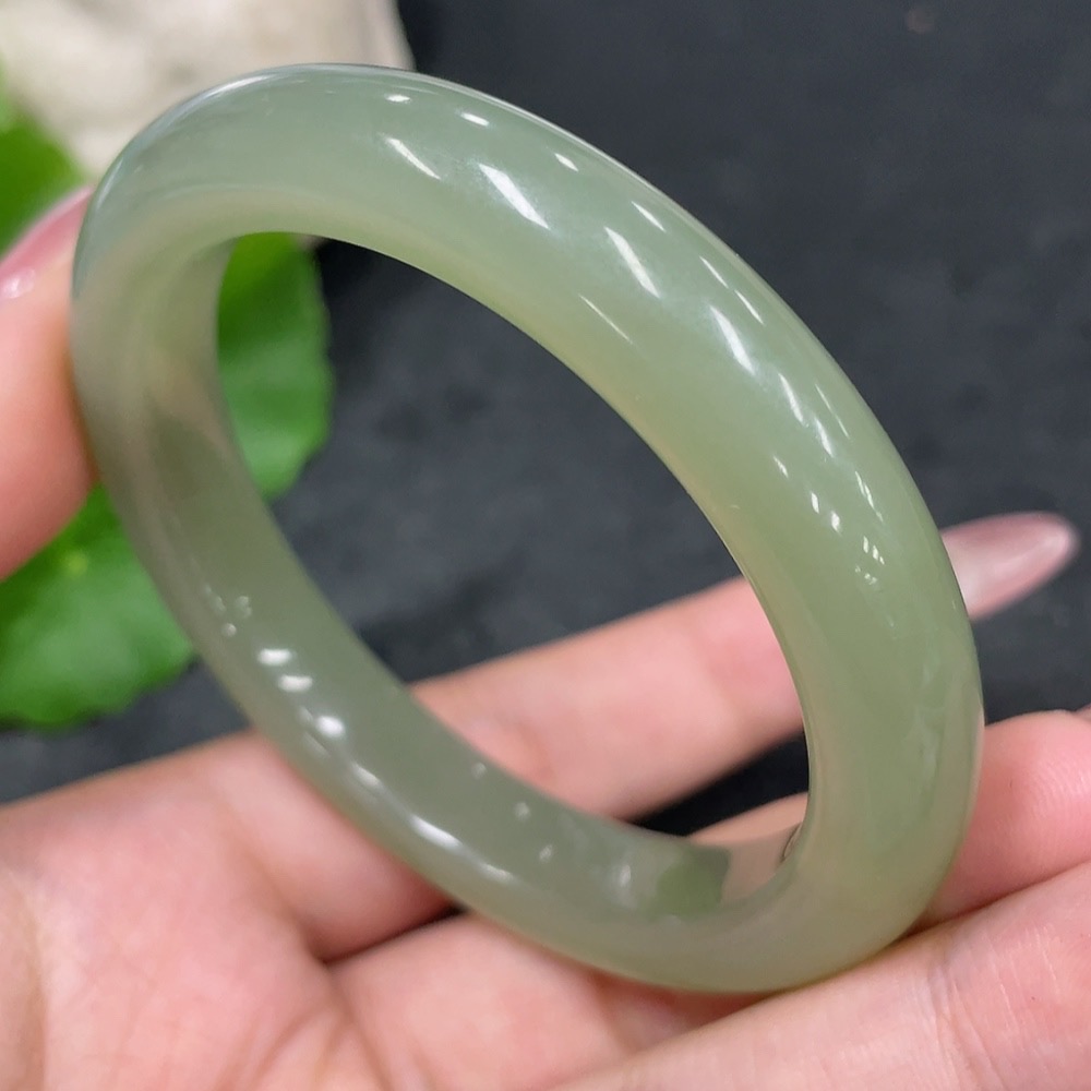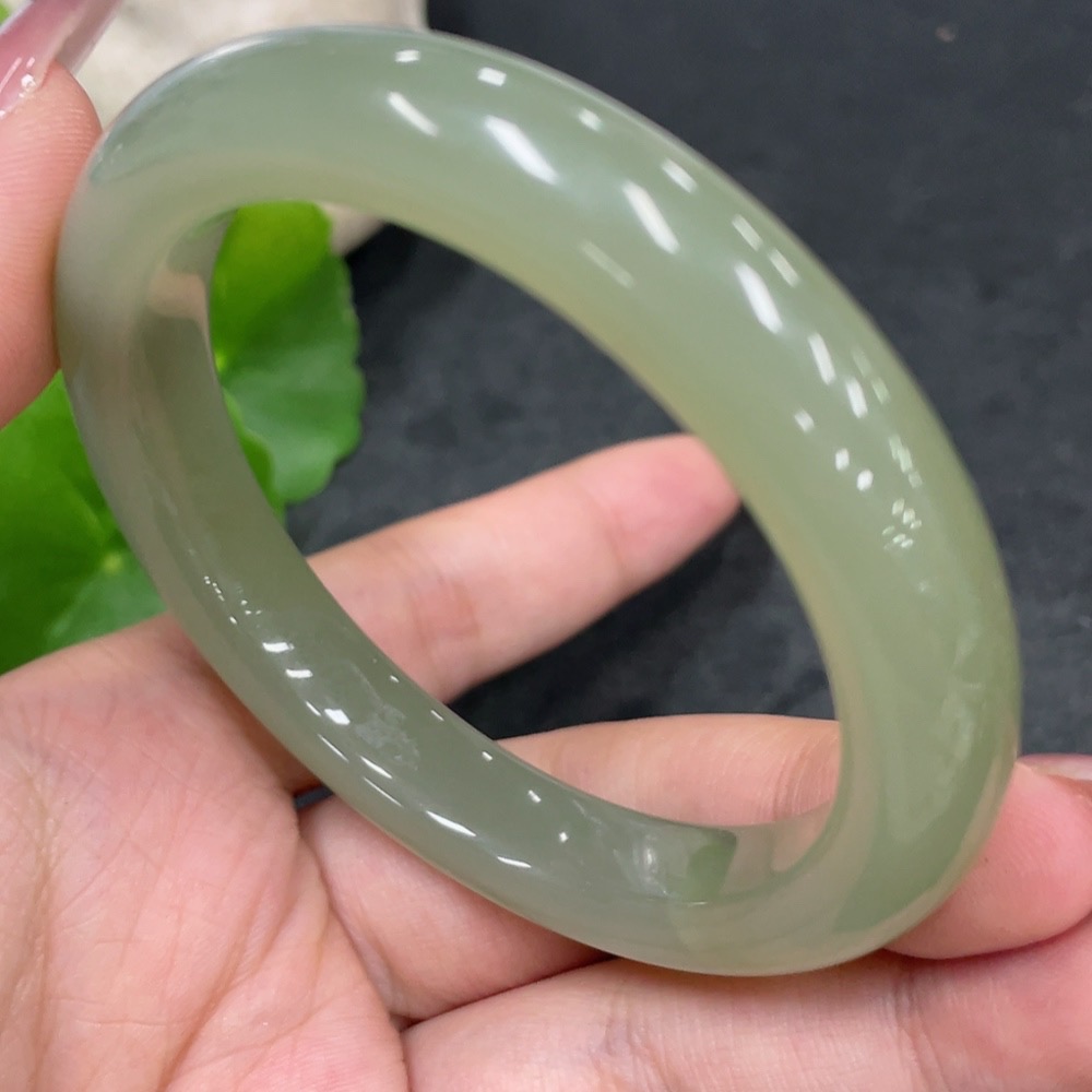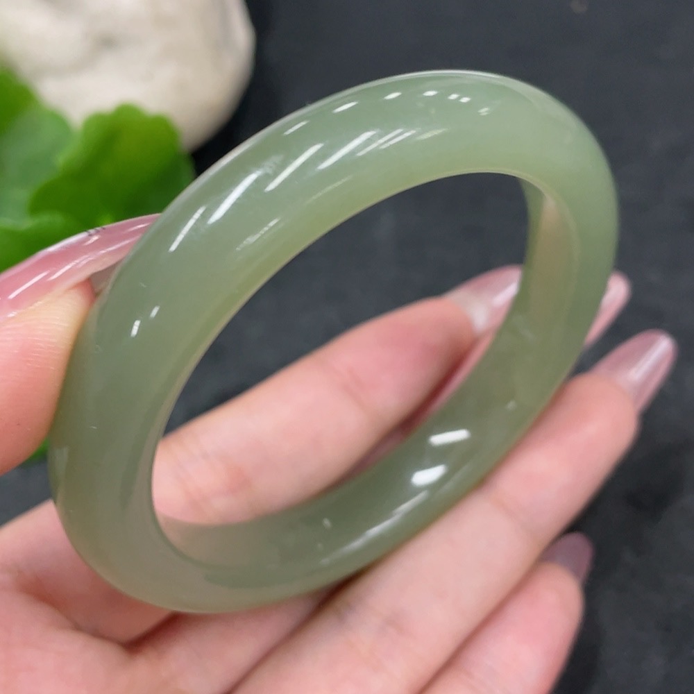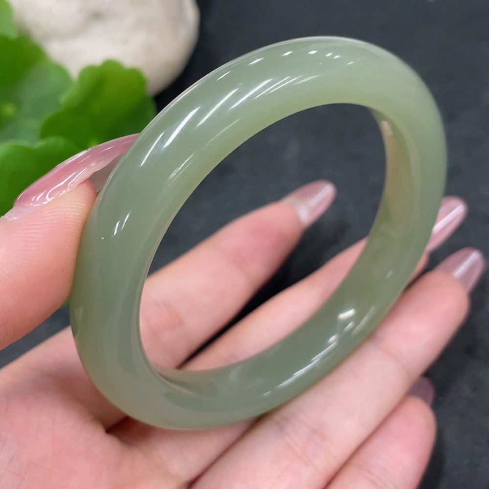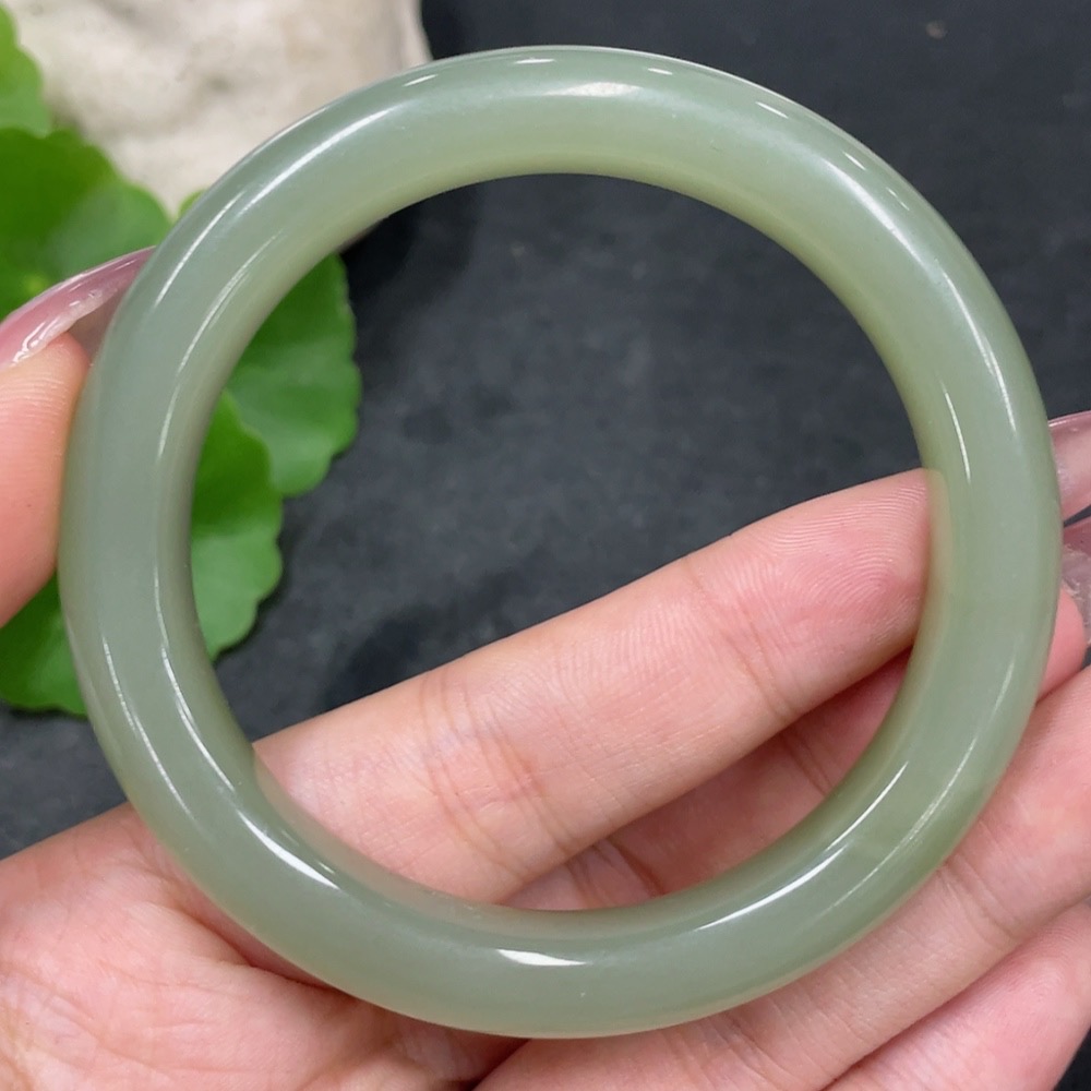 Hetian Jade Round Bracelet Size 53.6 with Crack Total Weight about 43.9g