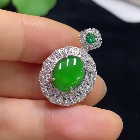 Jadeite Inlaid Pendant Non-Gold Total Weight Approx. 4.85g Companion Beads Non-Grade A