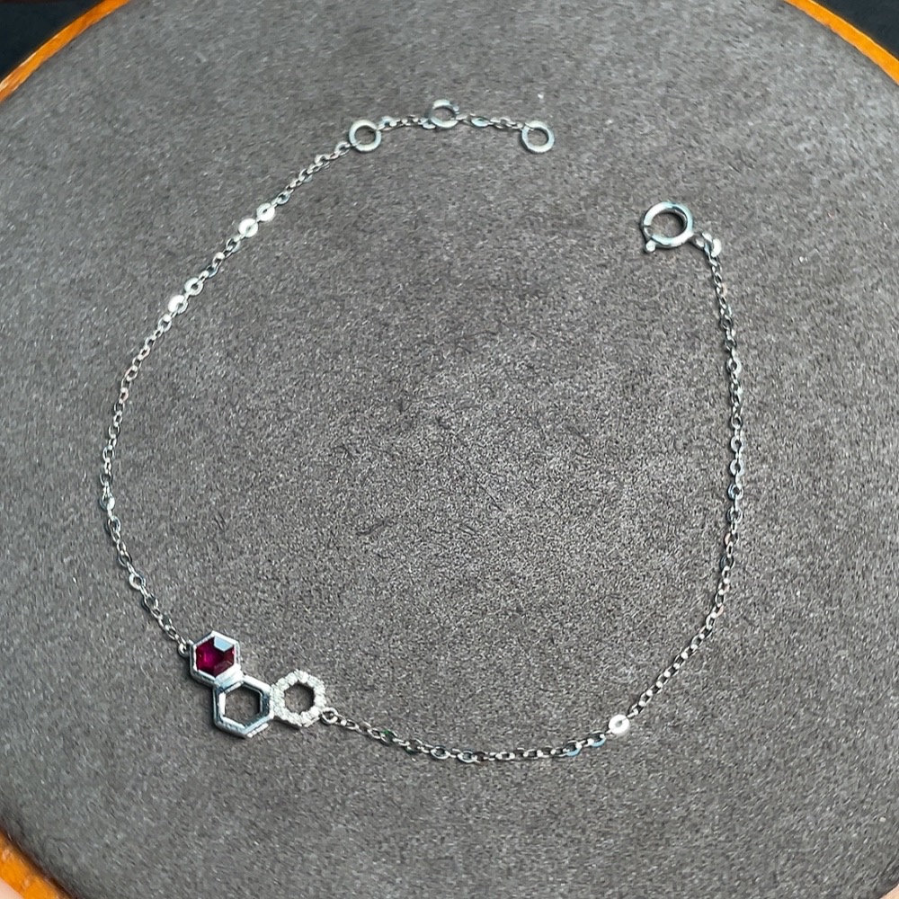 18K Ruby Bracelet with Diamond Accents, Total Weight Approx. 0.92g