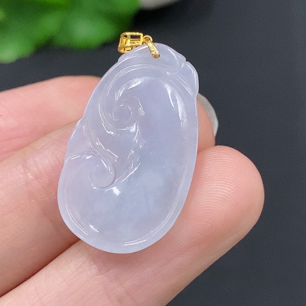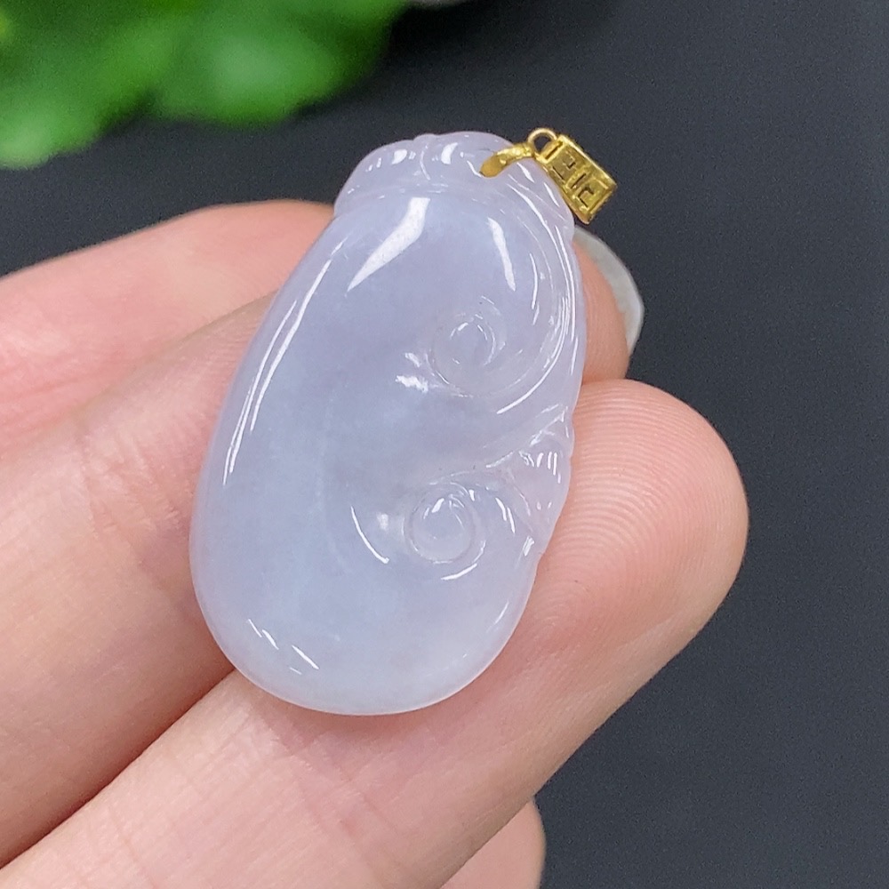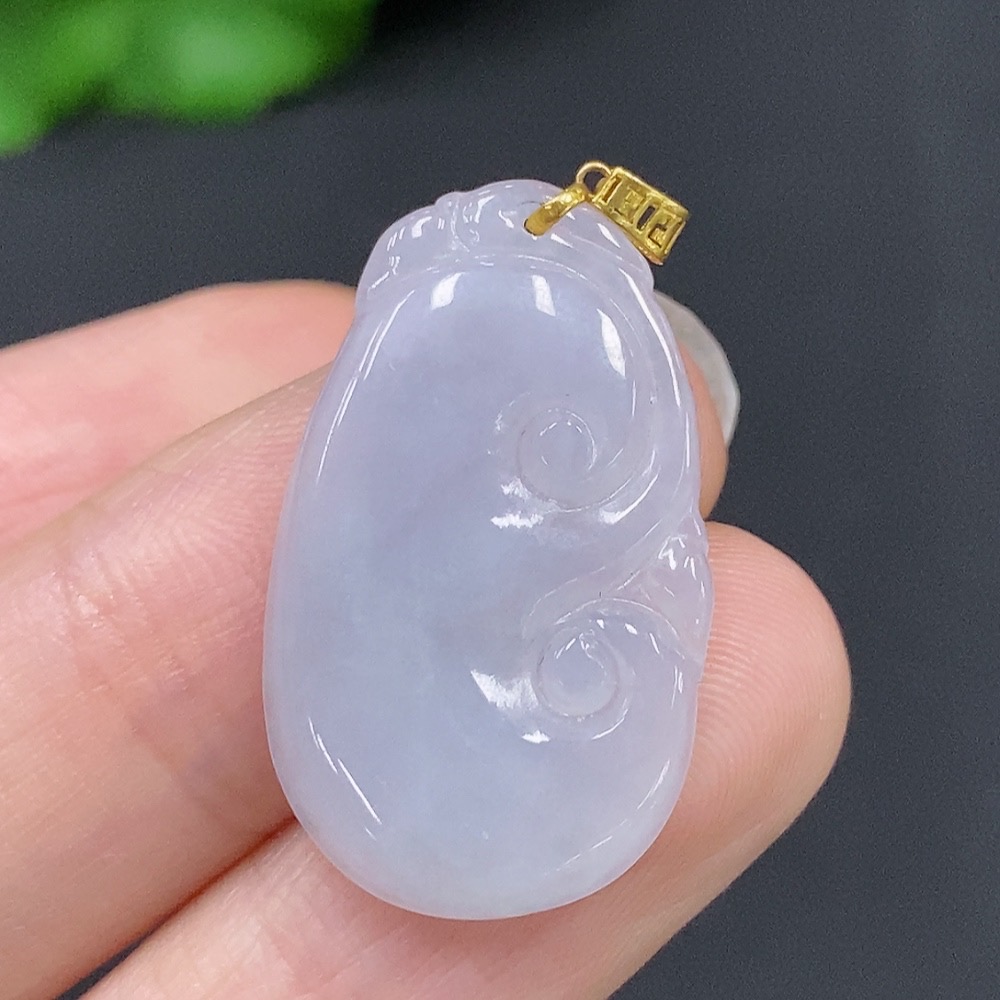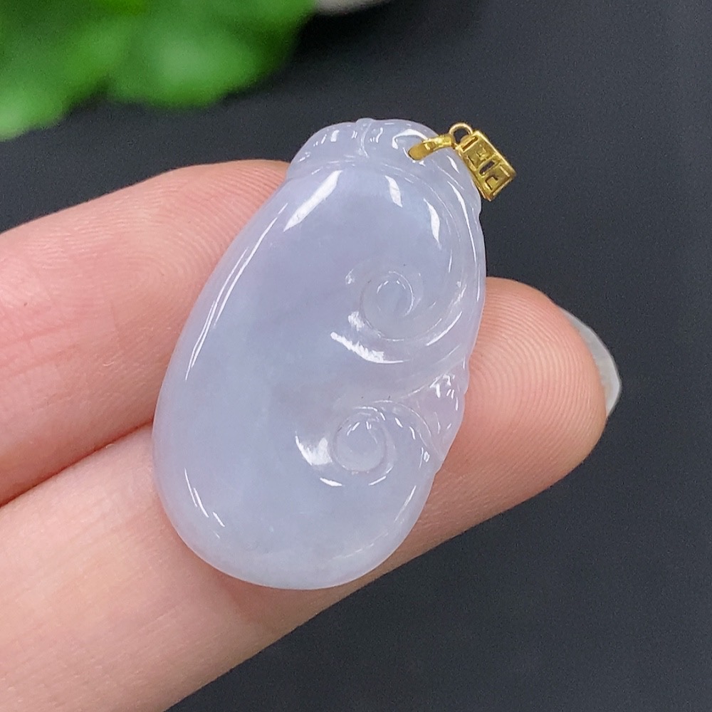 Jadeite Ruyi Pendant with 18K Gold Clasp, Total Weight Approximately 2.5g