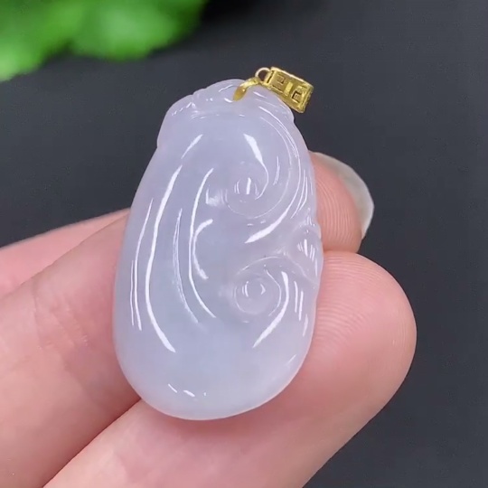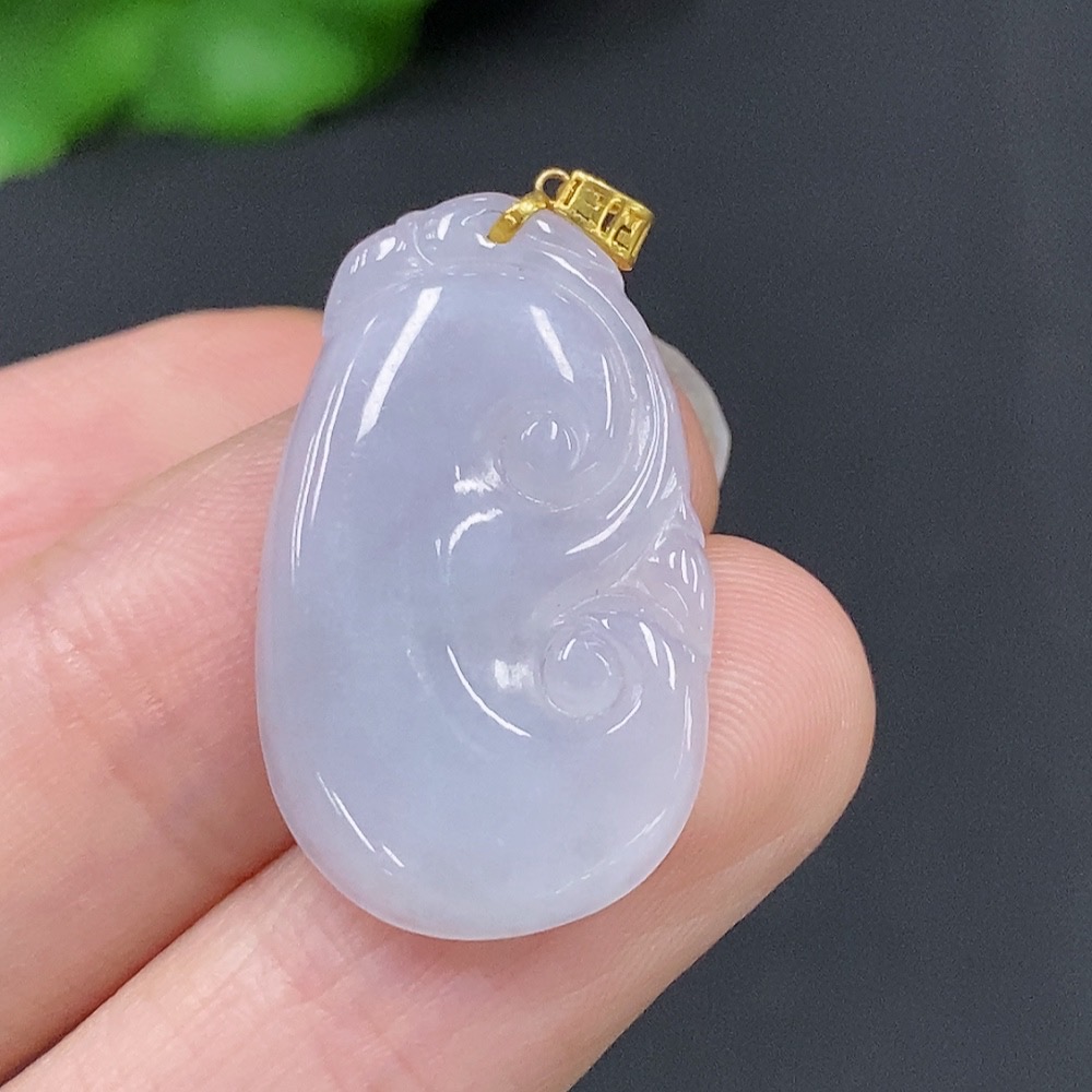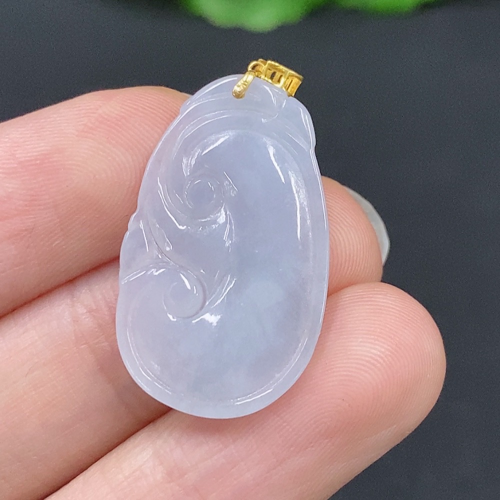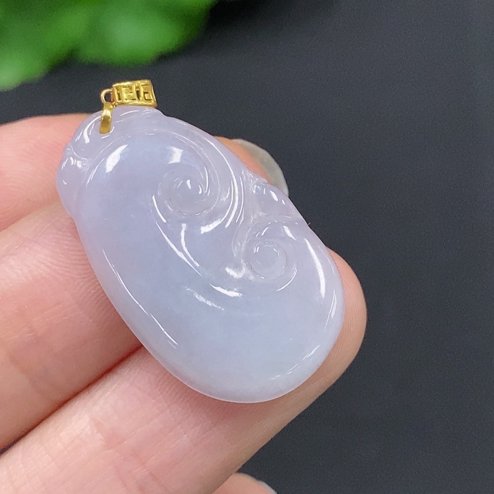 Jadeite Ruyi Pendant with 18K Gold Clasp, Total Weight Approximately 2.5g