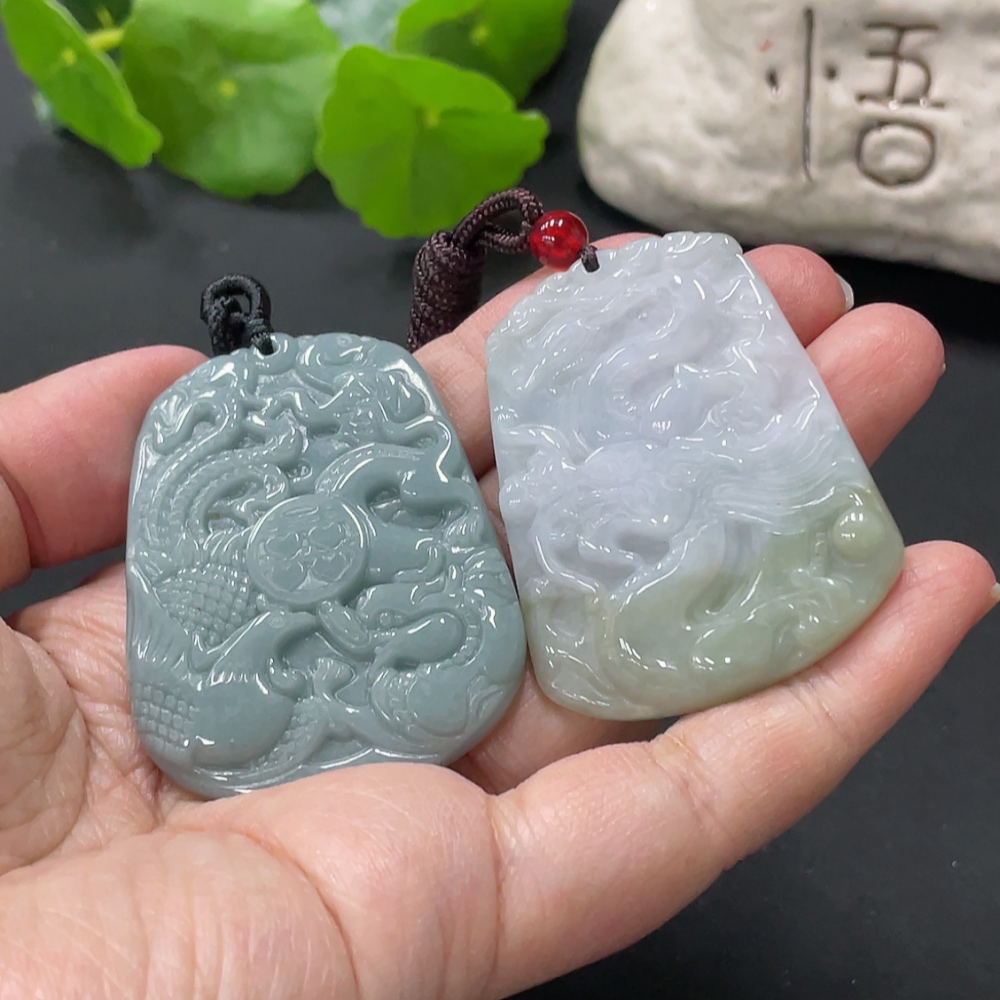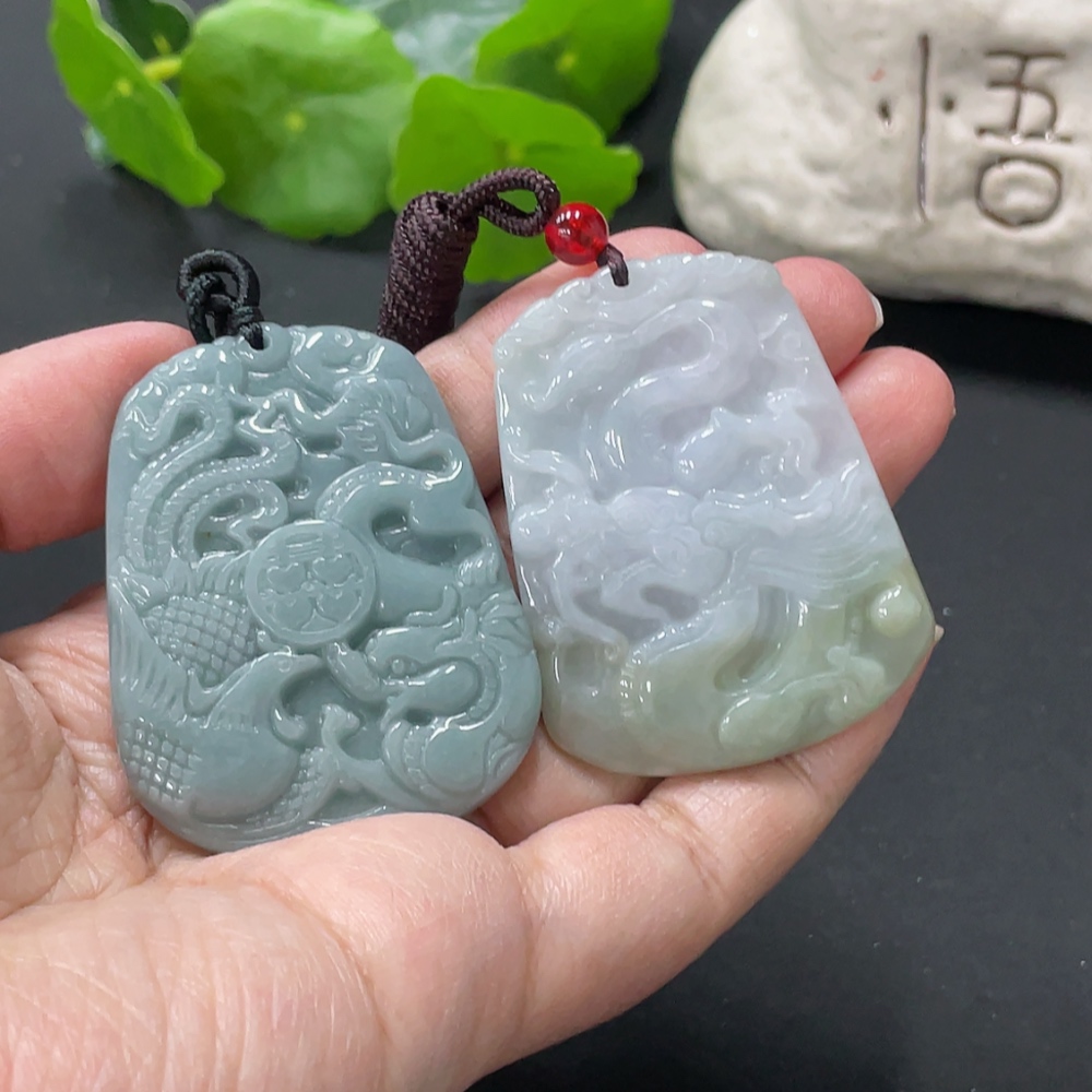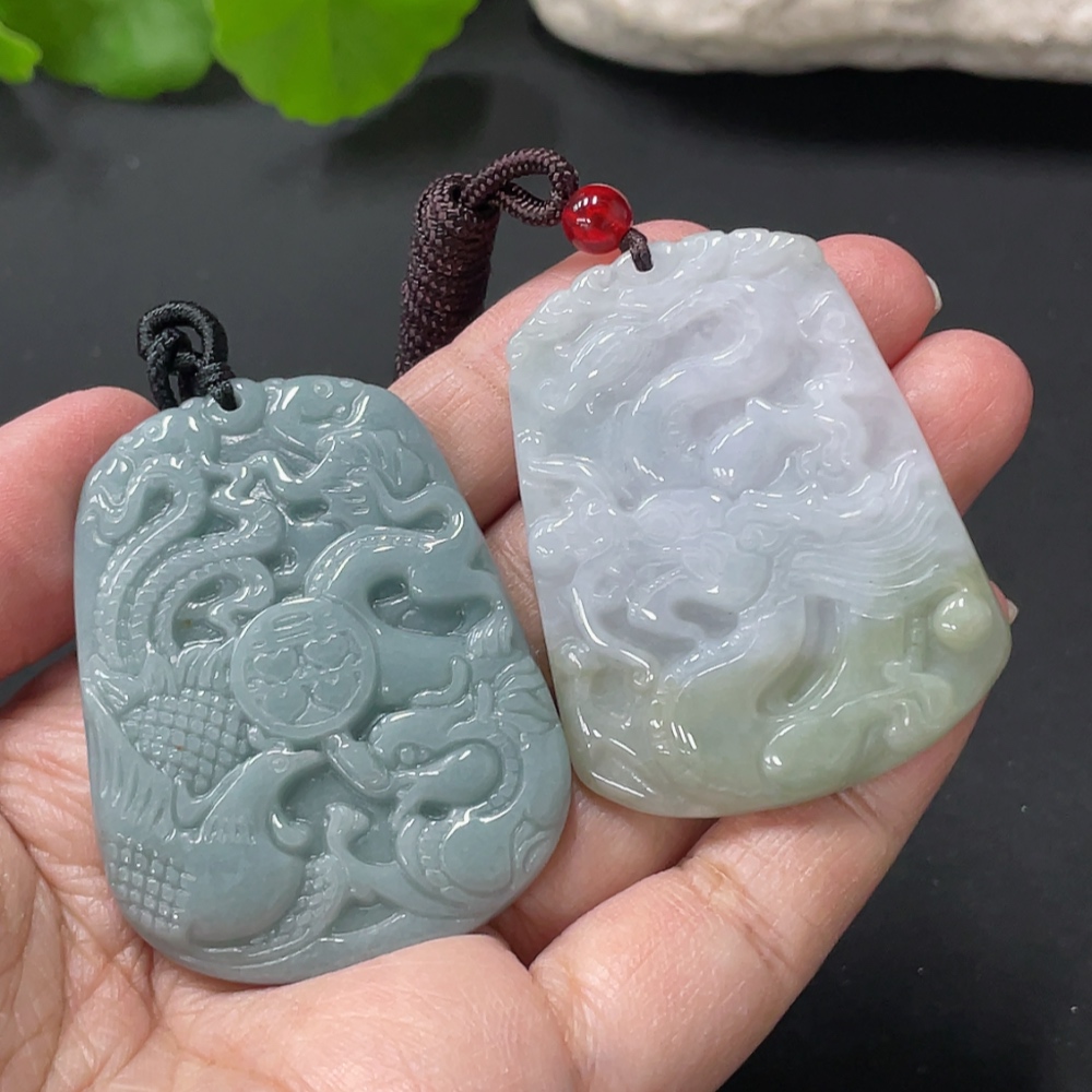 Jadeite Pendant Dragon Phoenix Auspicious Dragon Plaque with Non-A Bead