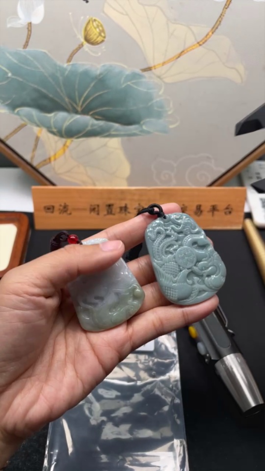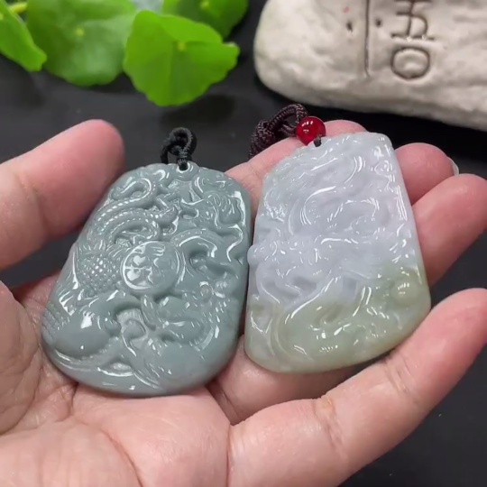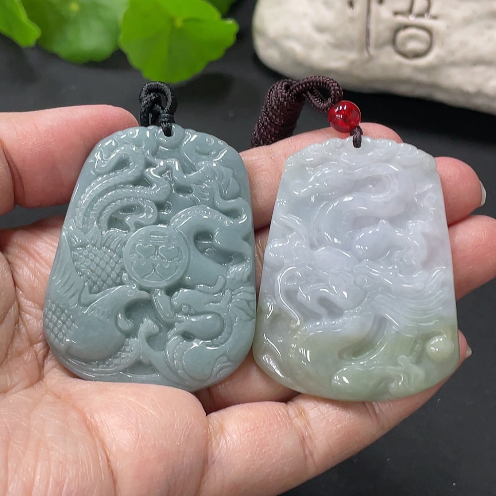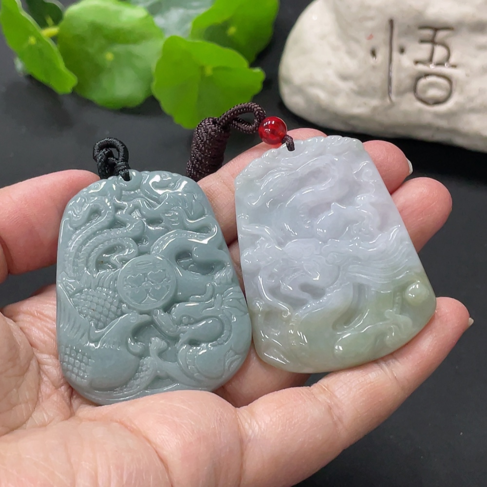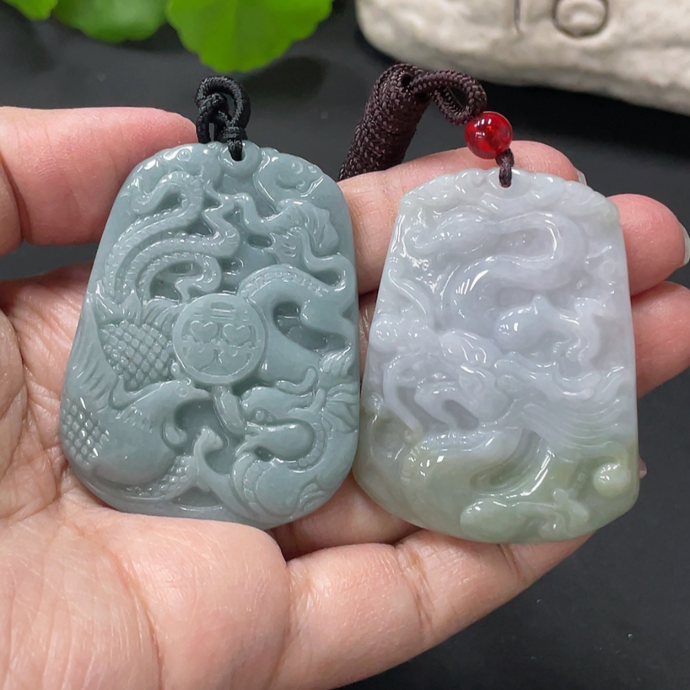 Jadeite Pendant Dragon Phoenix Auspicious Dragon Plaque with Non-A Bead