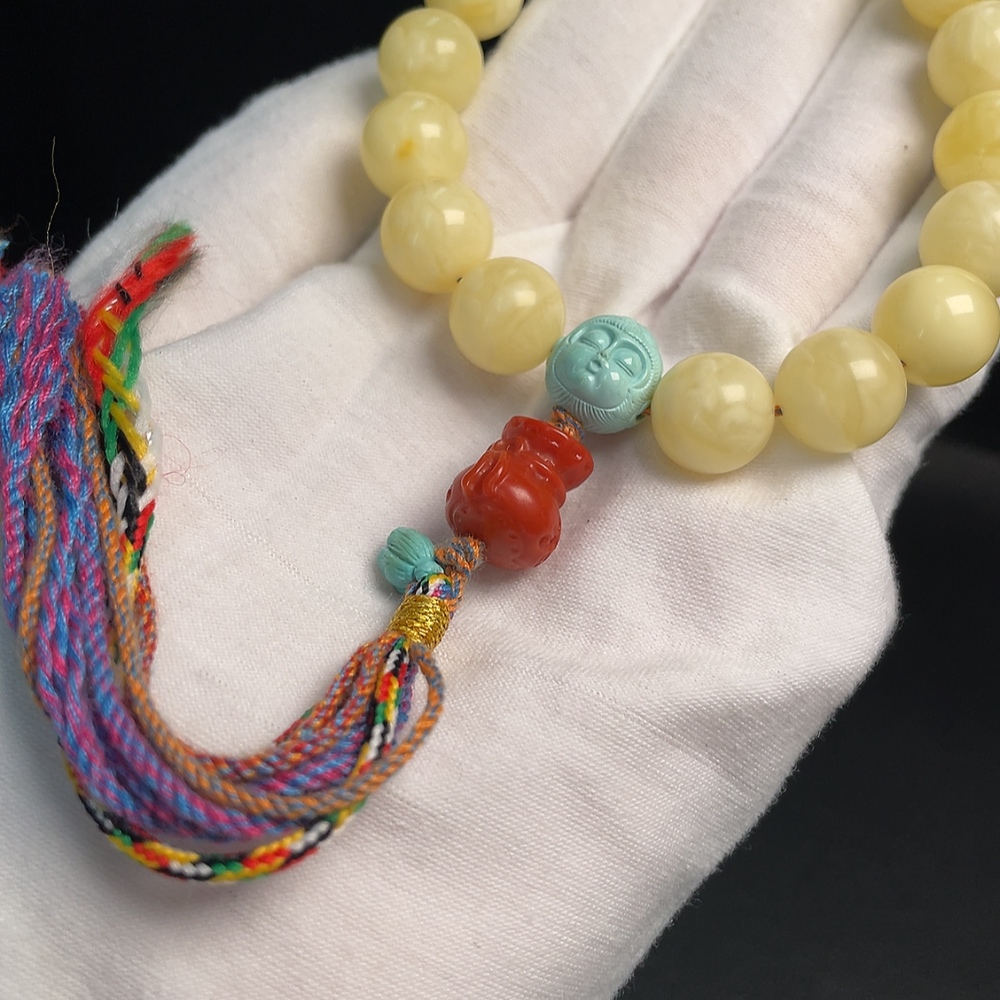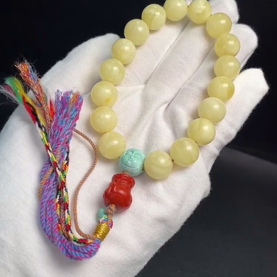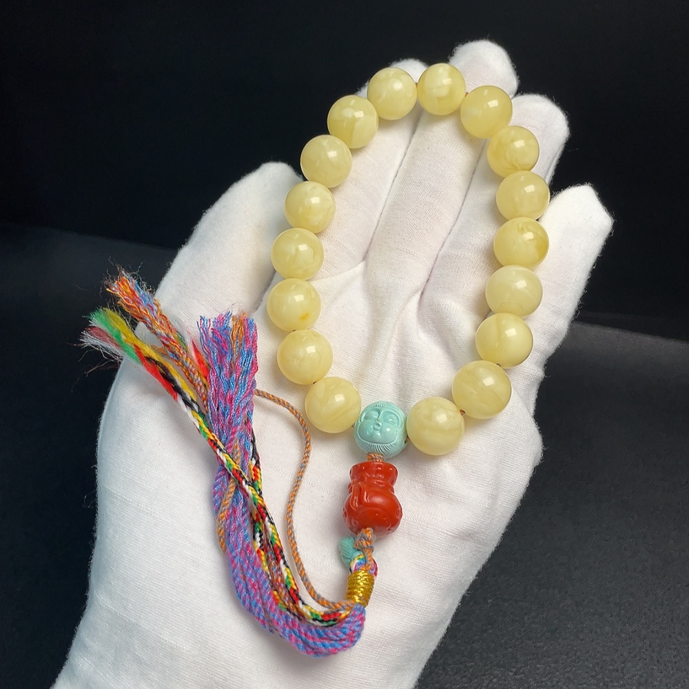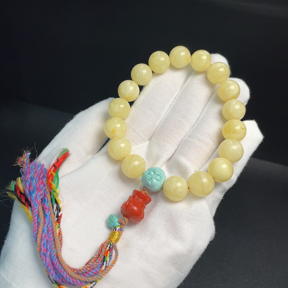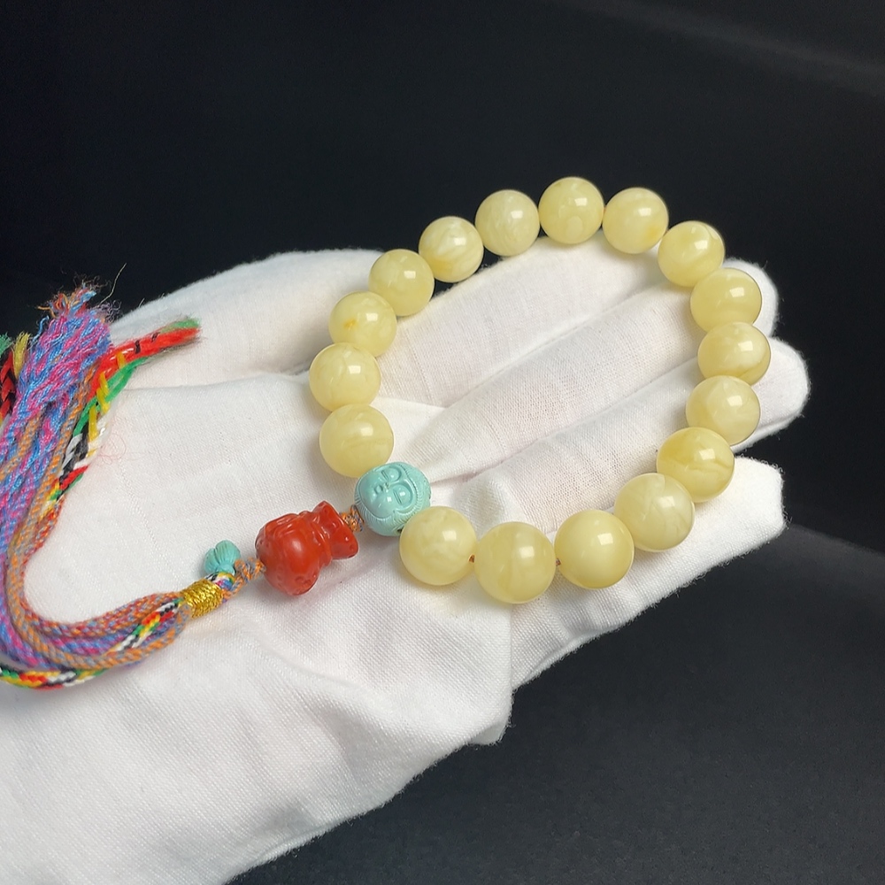 Amber Beeswax Bracelet with Turquoise and Southern Red Agate, Total Weight Approximately 26.84g, Size About 12.5mm