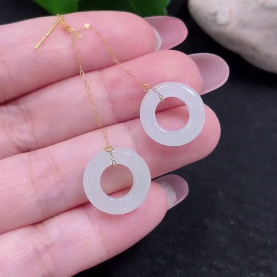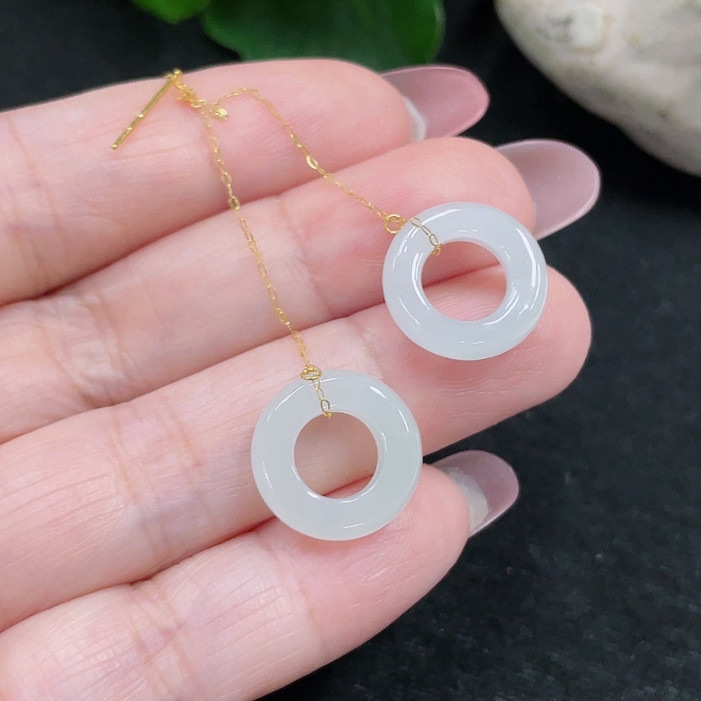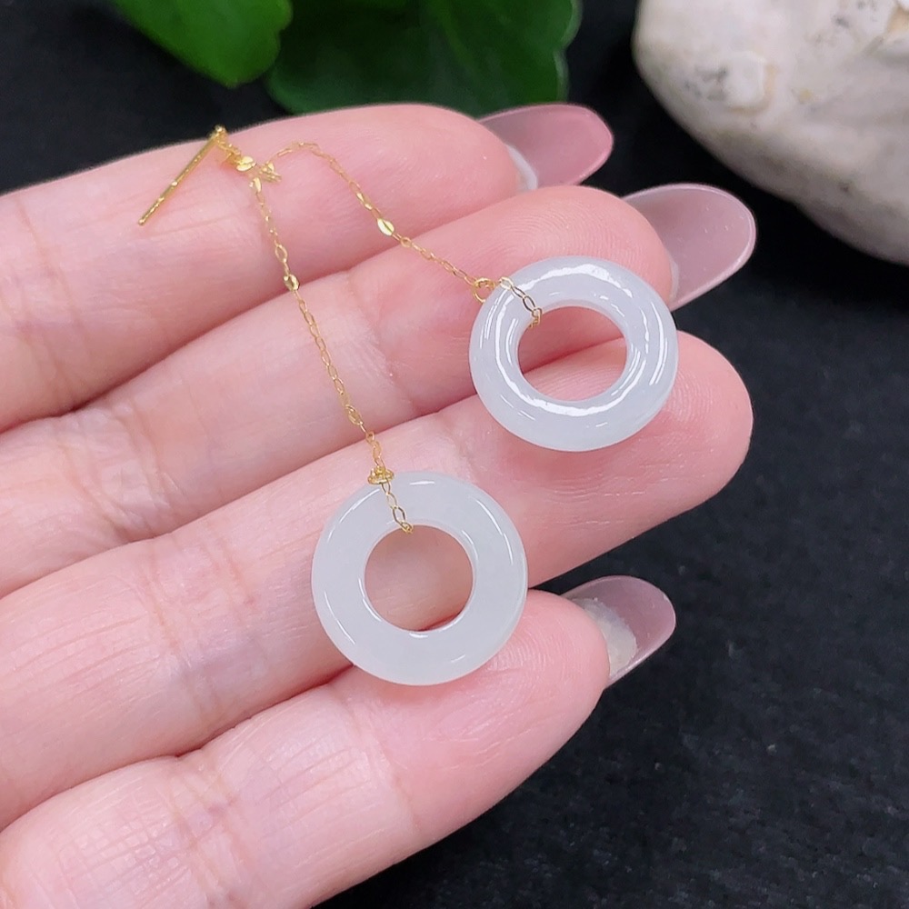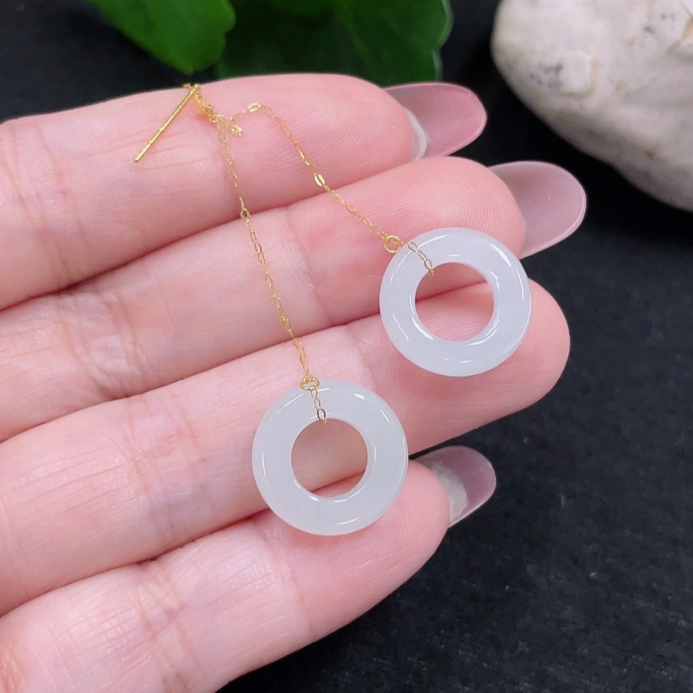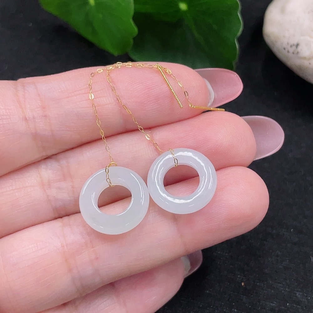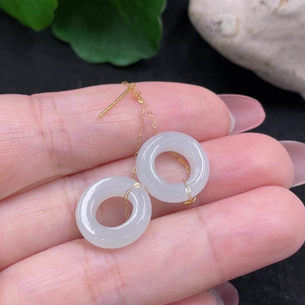 Jadeite earrings pair set in 18K gold, total weight approx. 2.4g