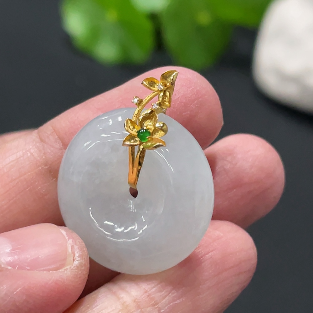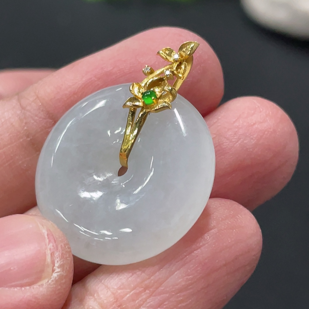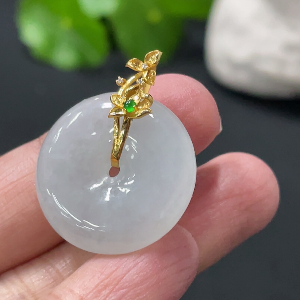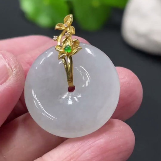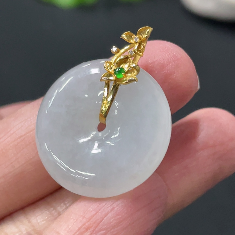 Jadeite Peace Button Pendant with 18K Gold Clasp, Total Weight Approx. 6.26g