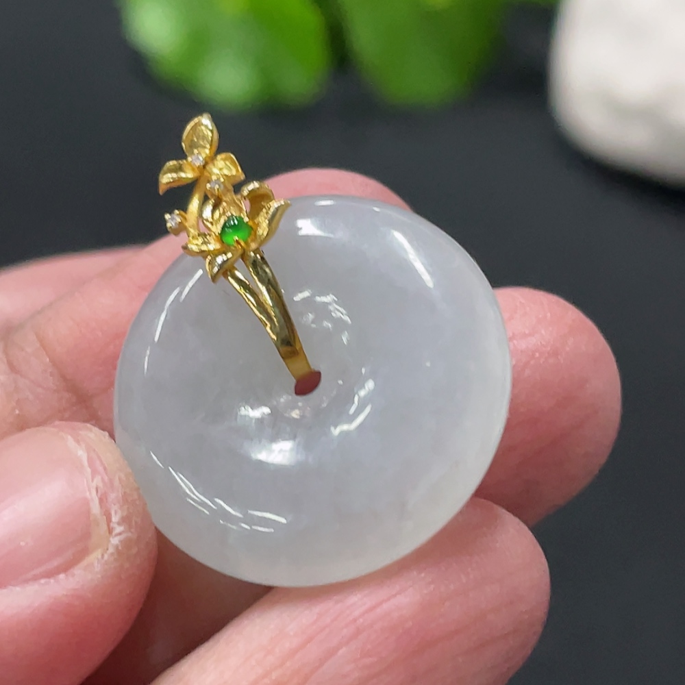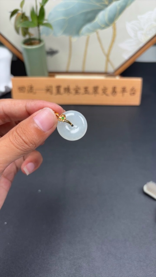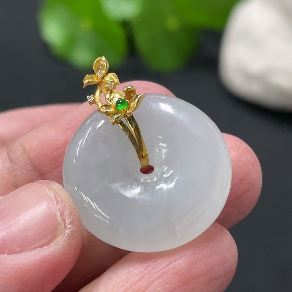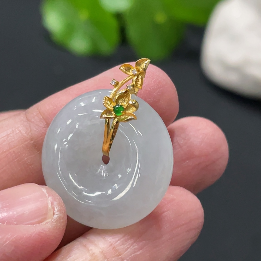Jadeite Peace Button Pendant with 18K Gold Clasp, Total Weight Approx. 6.26g