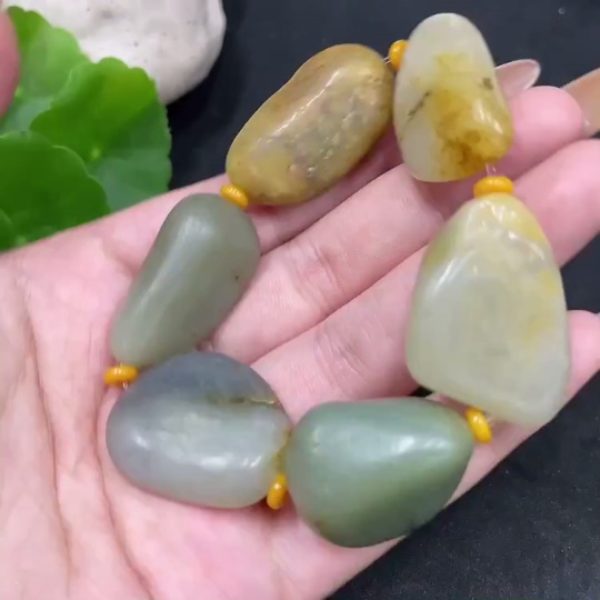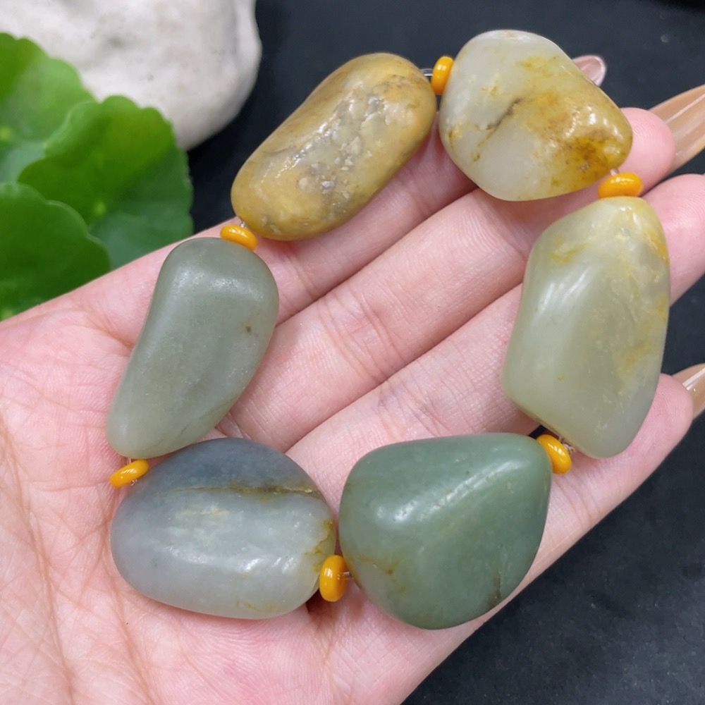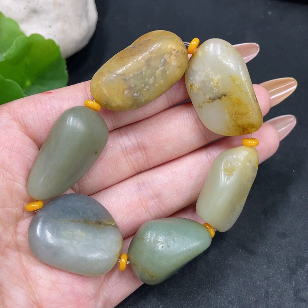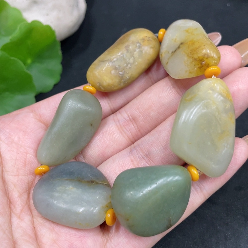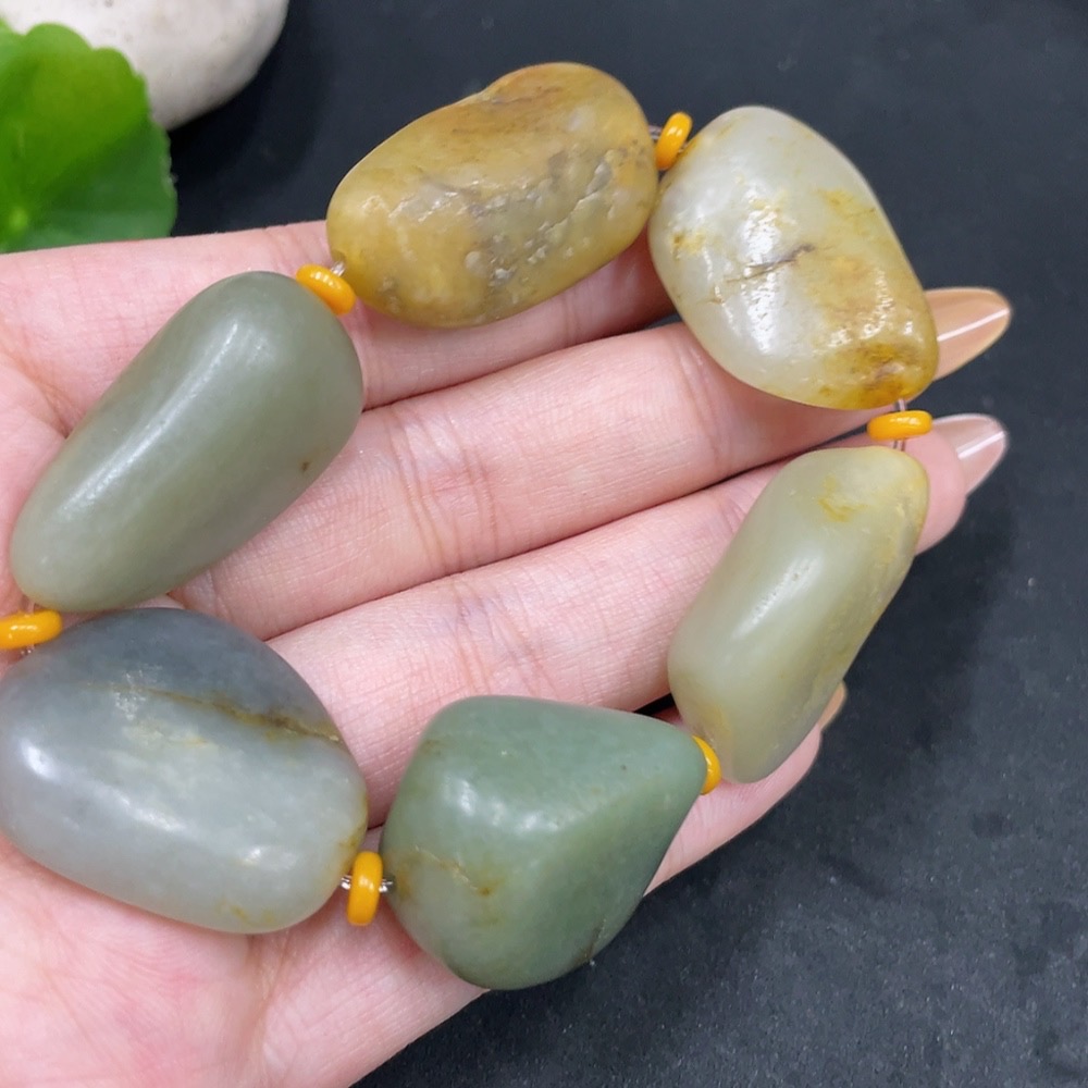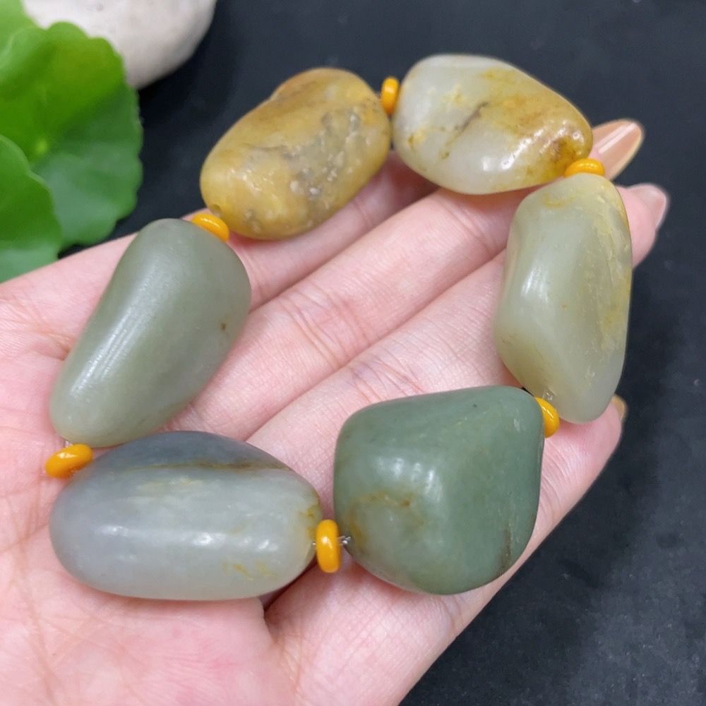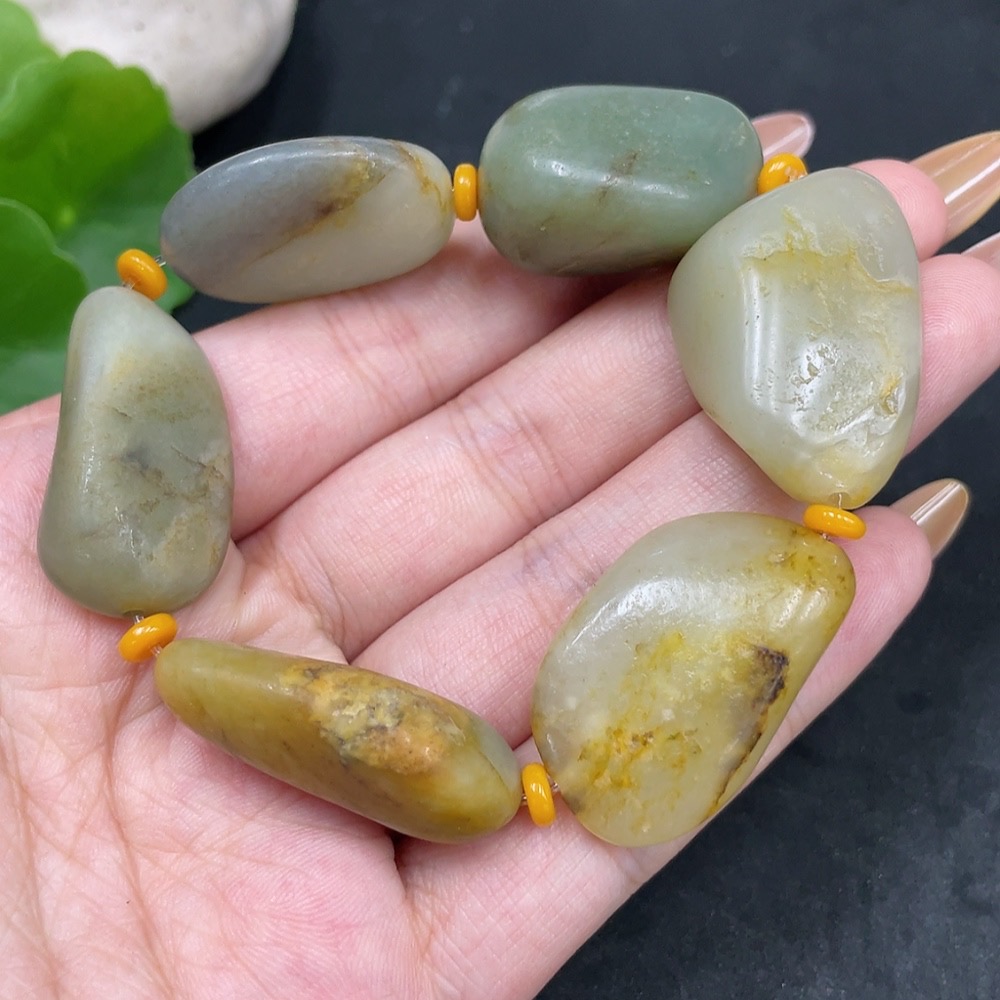 Hetian Jade Bracelet, Undetermined Skin Color Formation, Containing Other Mineral Components, Total Weight Approximately 63.5g, Matching Beads Not Hetian Jade