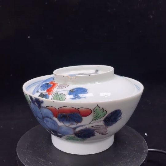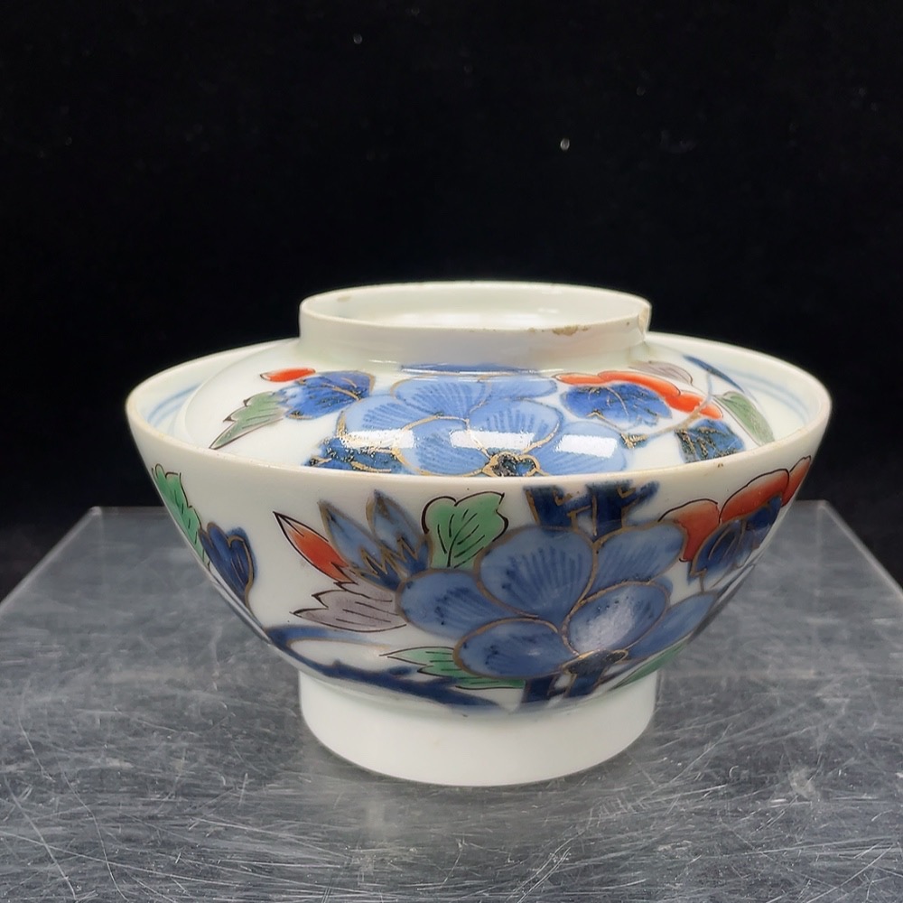 Ceramic 2-piece, painted lidded bowl from the foreign trade era (subject to actual item)