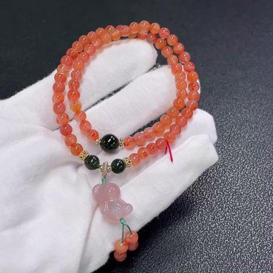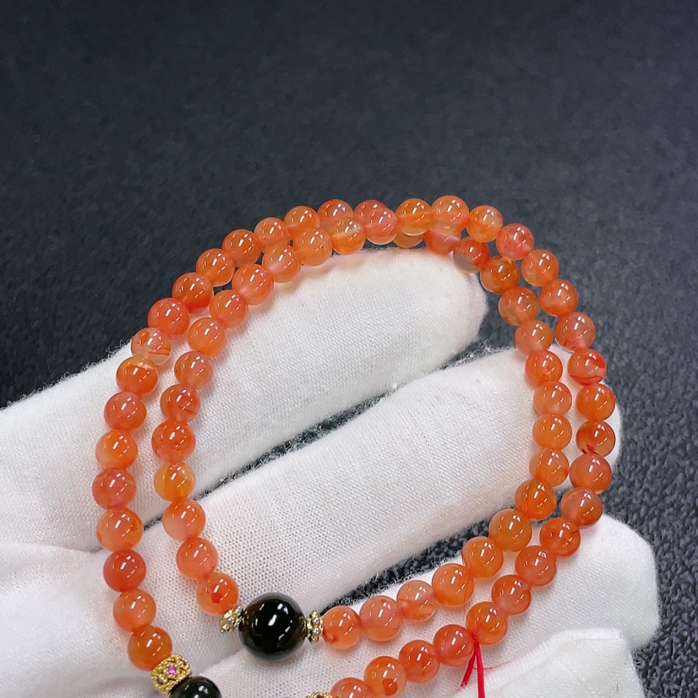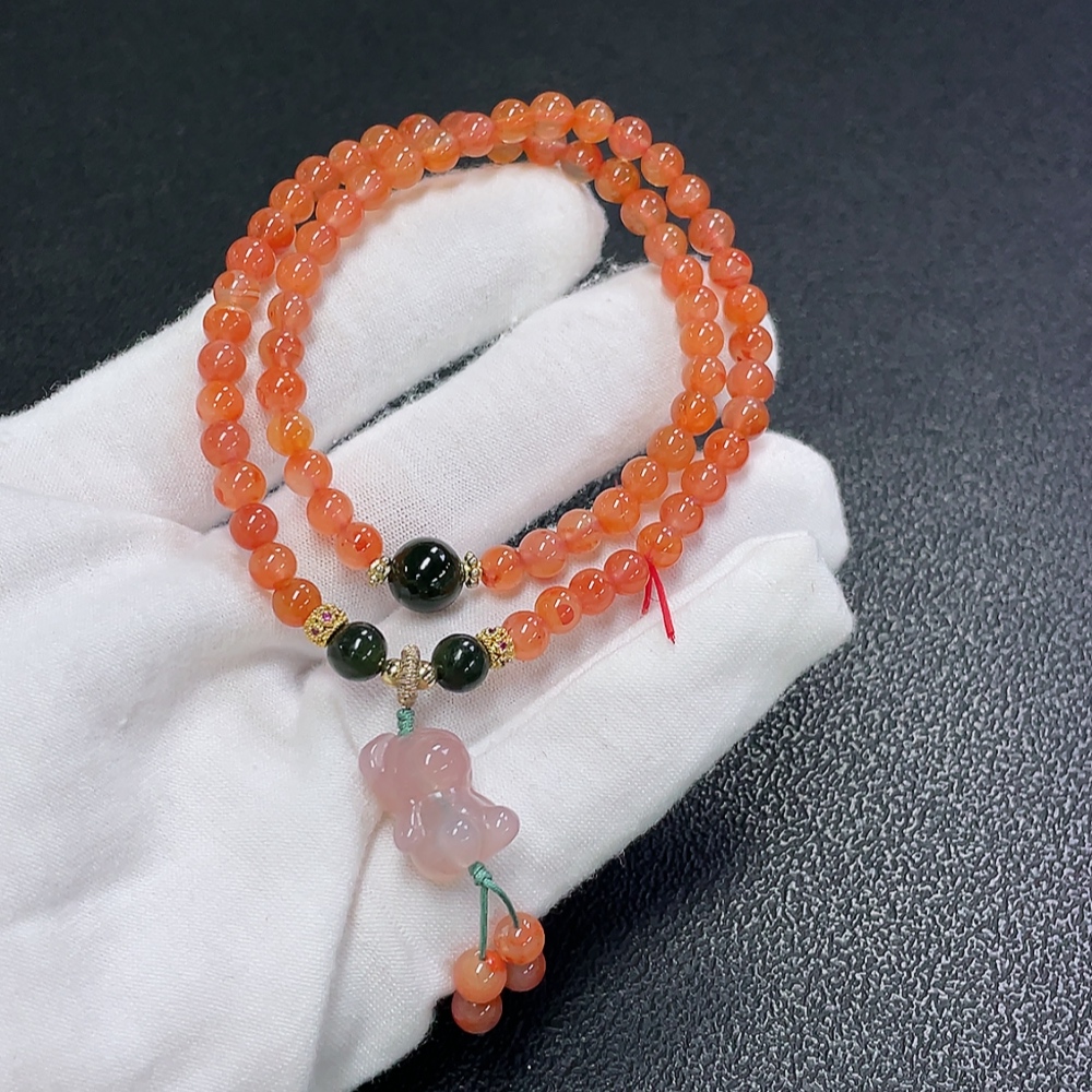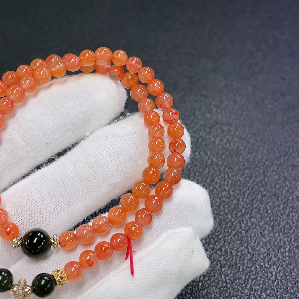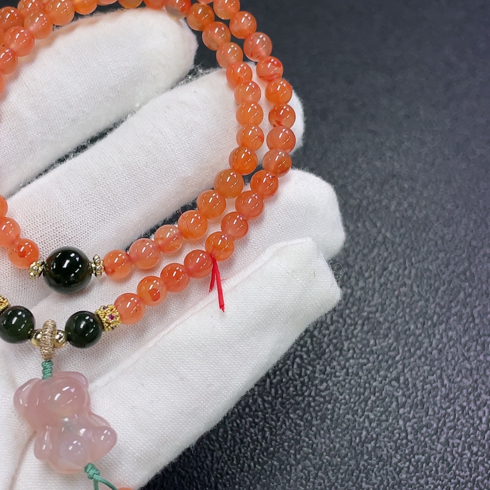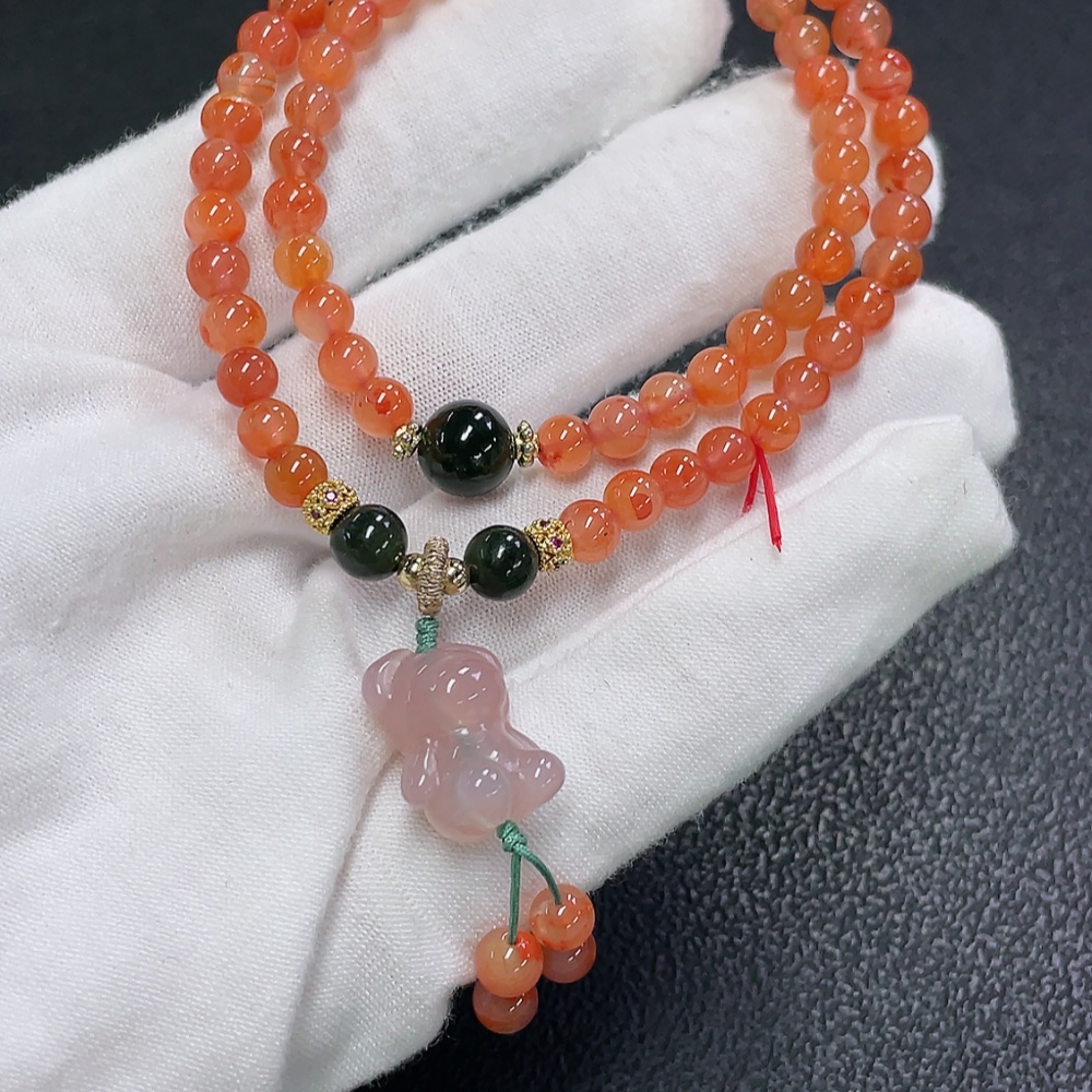 South Red Agate Bead Necklace with Visible Organic Matter, Paired with Hetian Jade and Possible Non-Natural Gemstones, Total Weight Approximately 18.09g, Bead Size Around 5mm