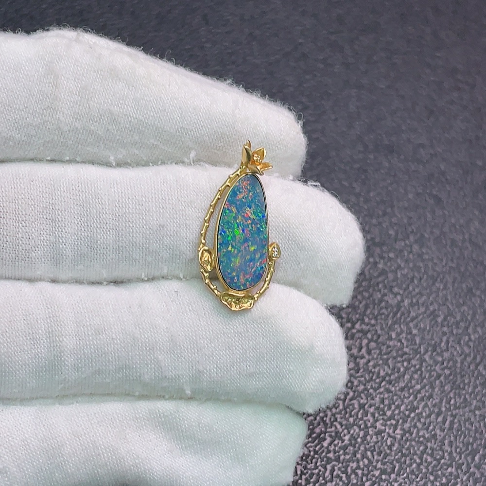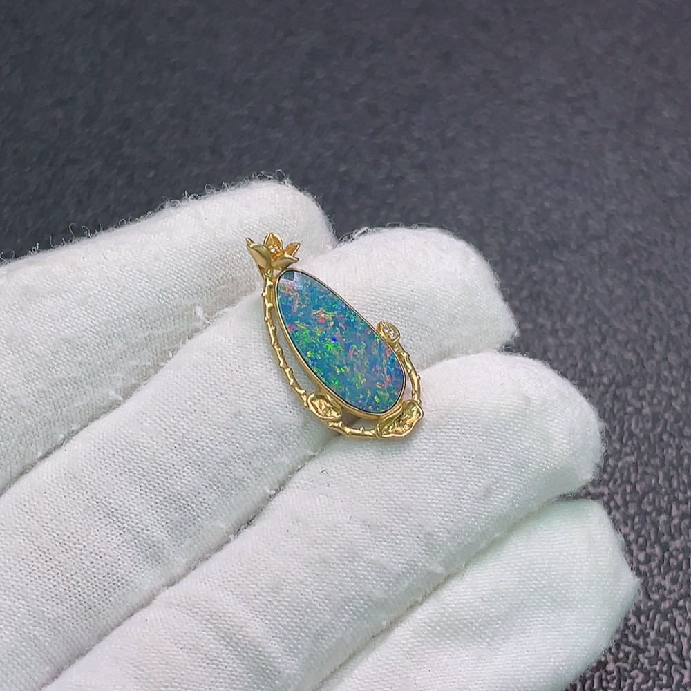 18K Opal Pendant with Non-Natural Base, Total Weight Approx. 2.13g