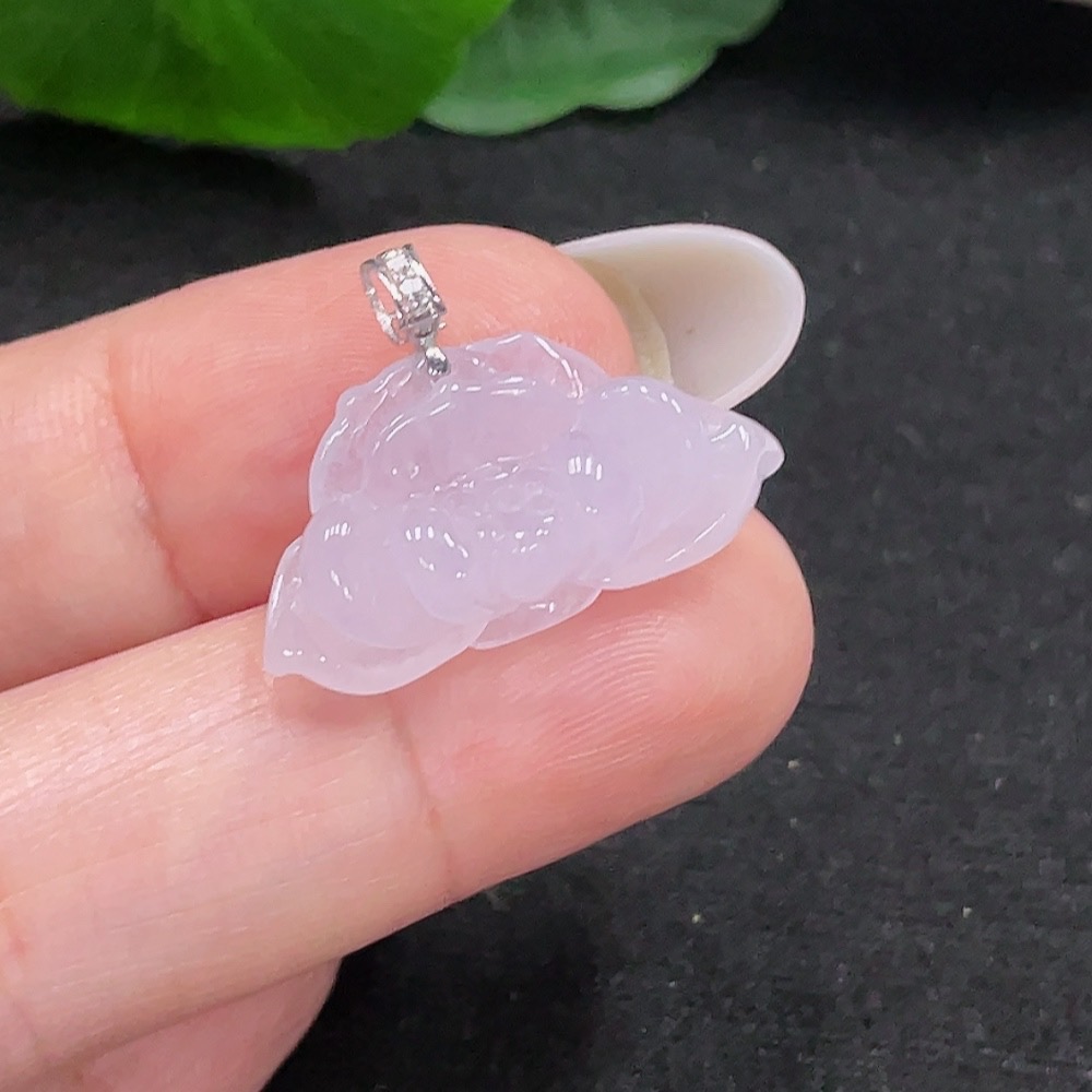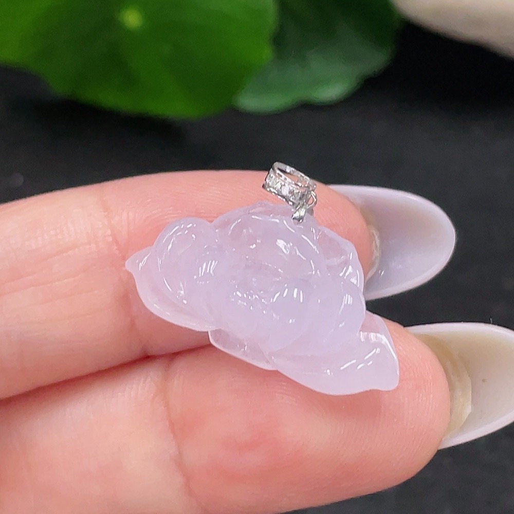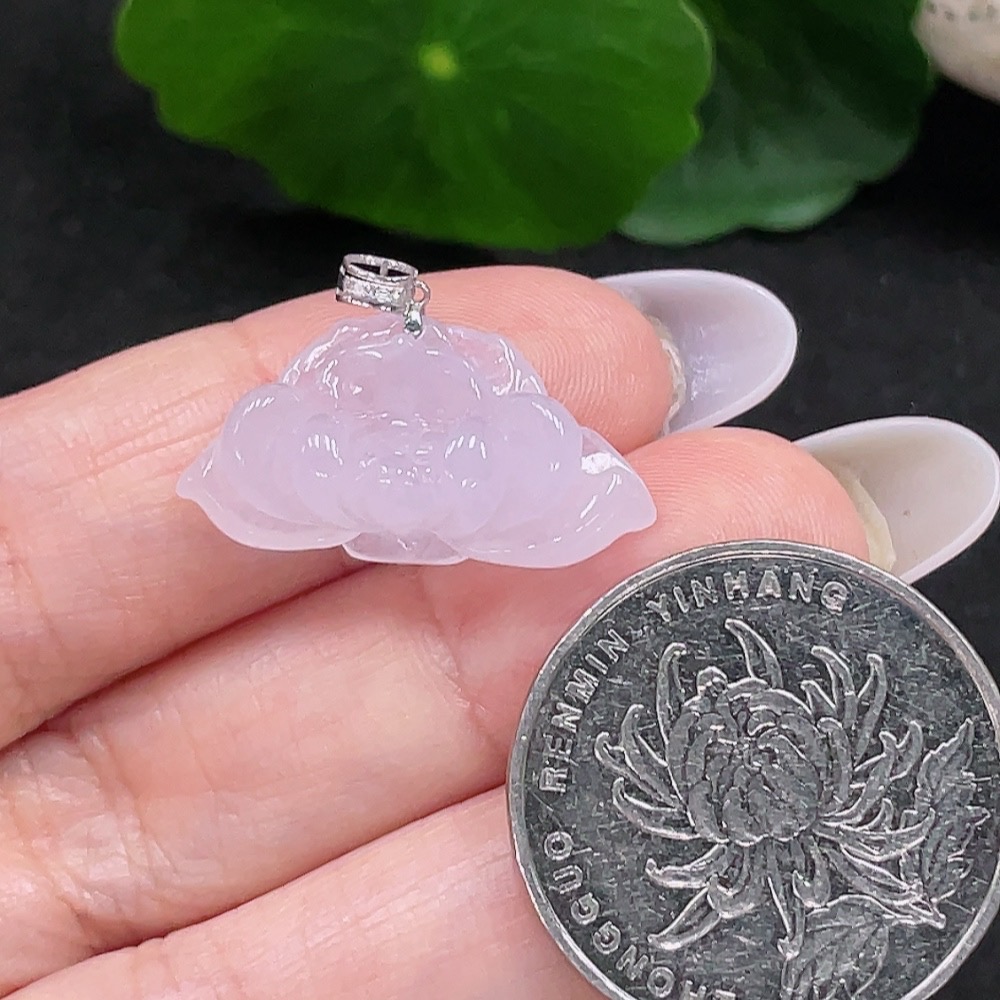 Jadeite Lotus Pendant No Hallmark, Surface Gold Content 75% Total Weight Approx. 2.67g