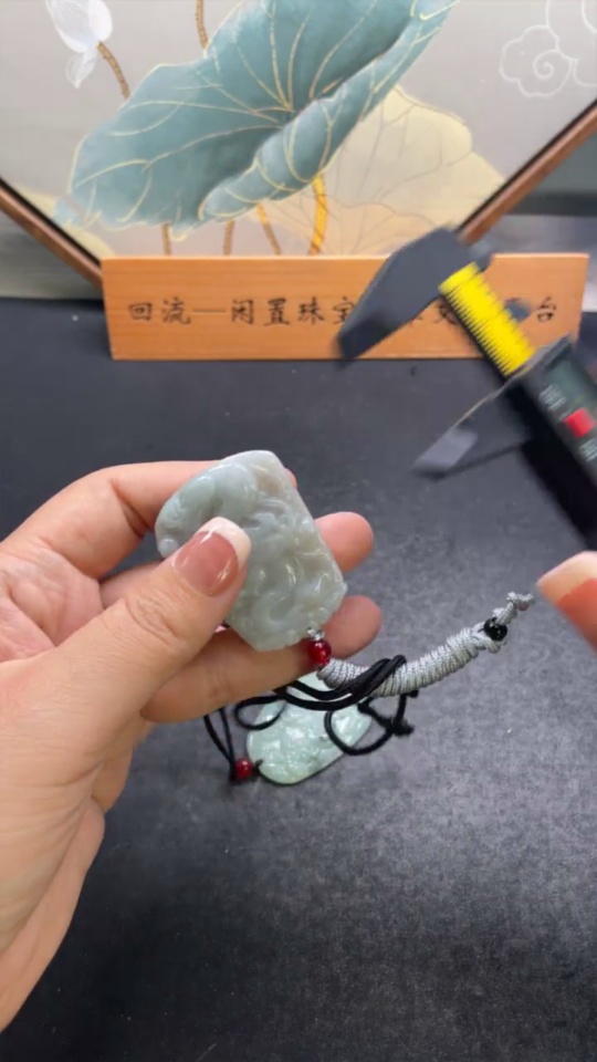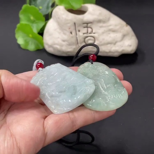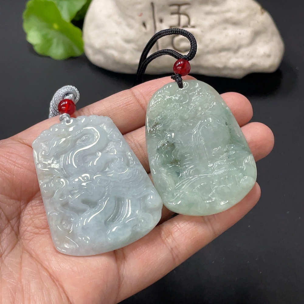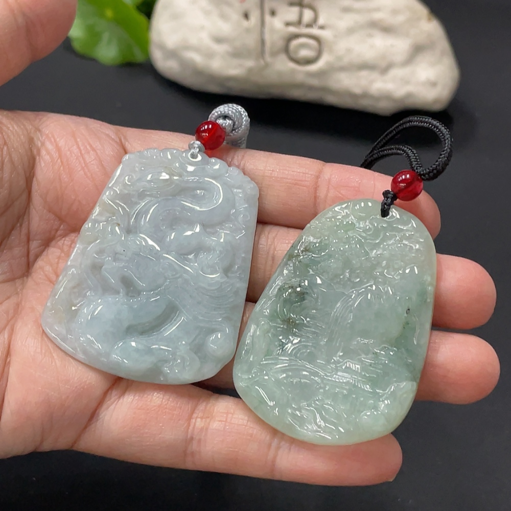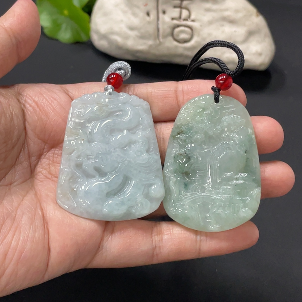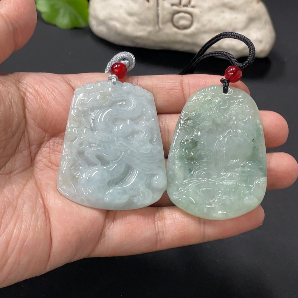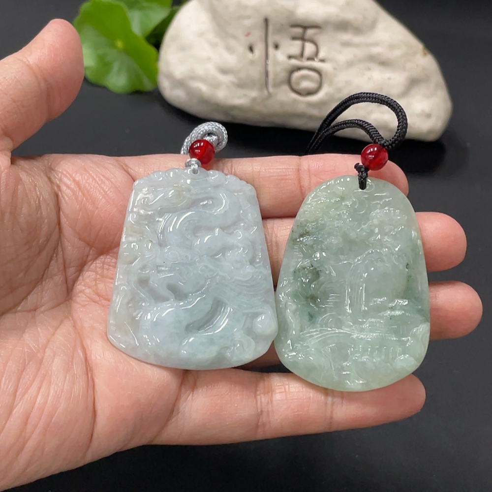 Jadeite Pendant Dragon Plaque Landscape Plaque with Non-A Beads