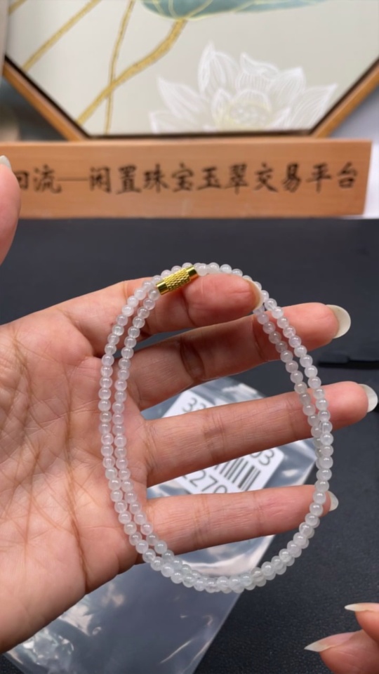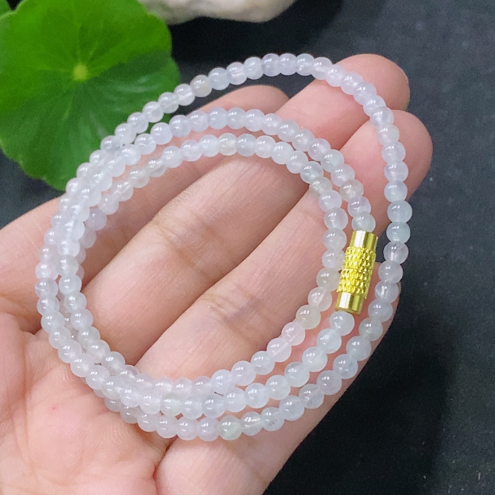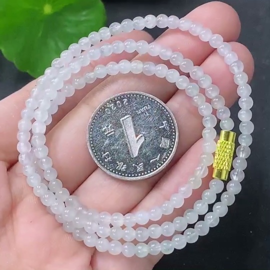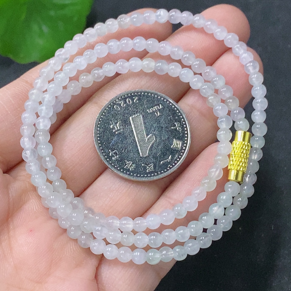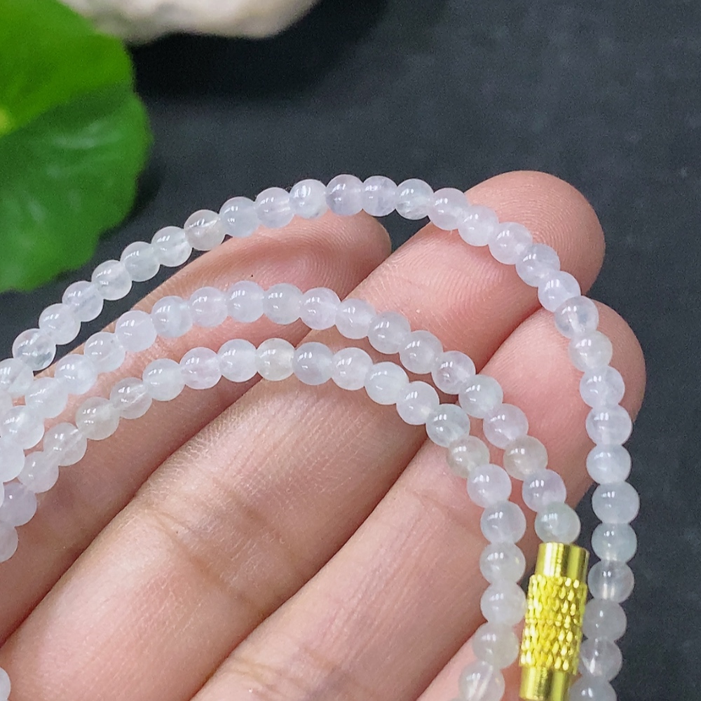 Jadeite Bead Necklace Approx. 3.5mm Non-gold Total Weight Approx. 9.58g