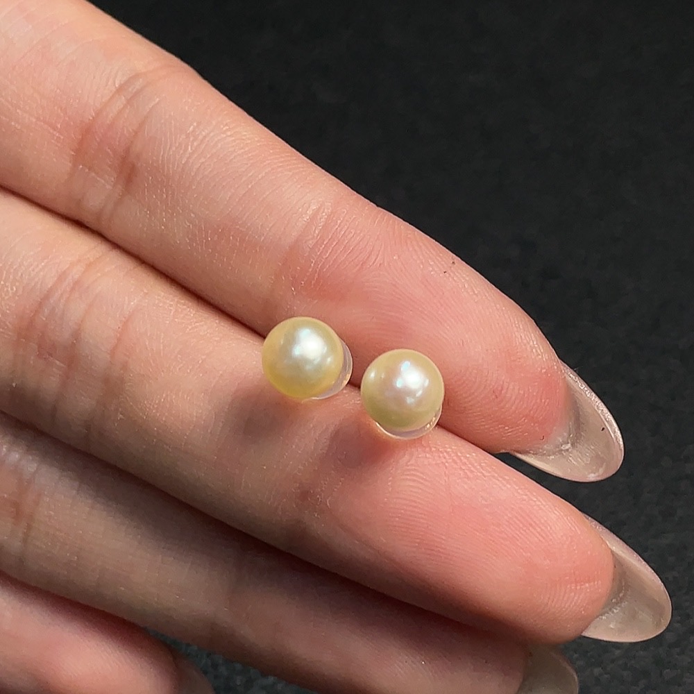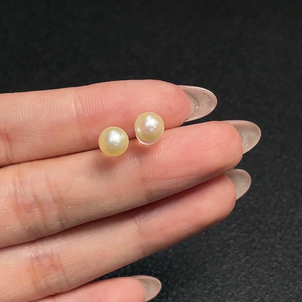Seawater pearl earrings, color origin undetermined, 18k gold, total weight approx. 0.7g, size approx. 6.2mm